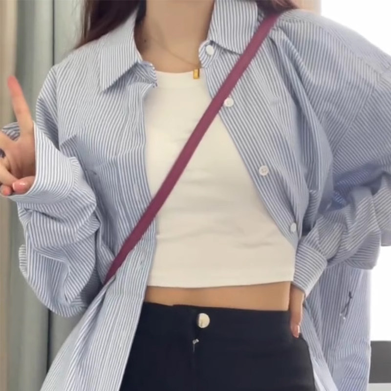 Синяя тонкая рубашка, осенняя куртка для отдыха, элитный лонгслив, оверсайз