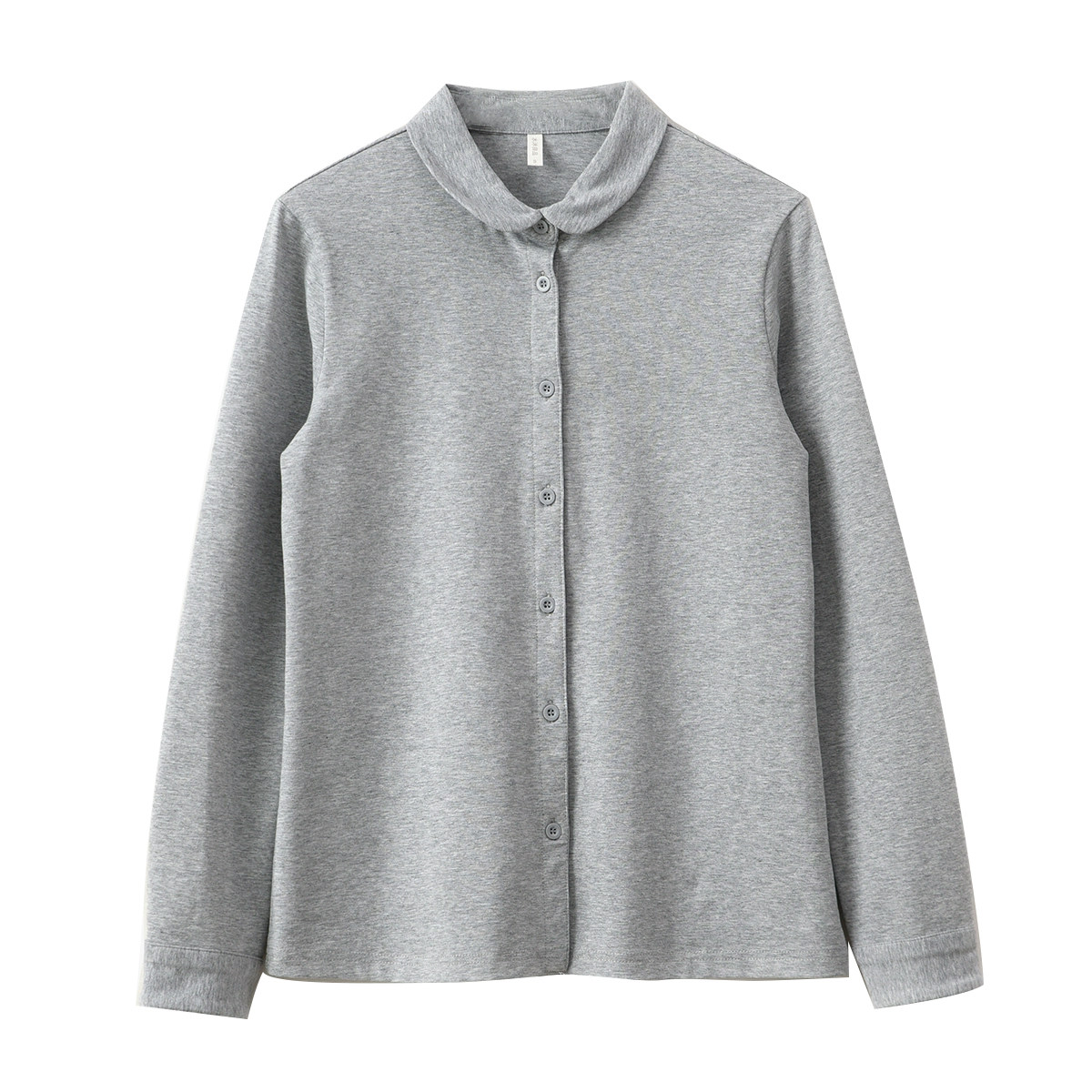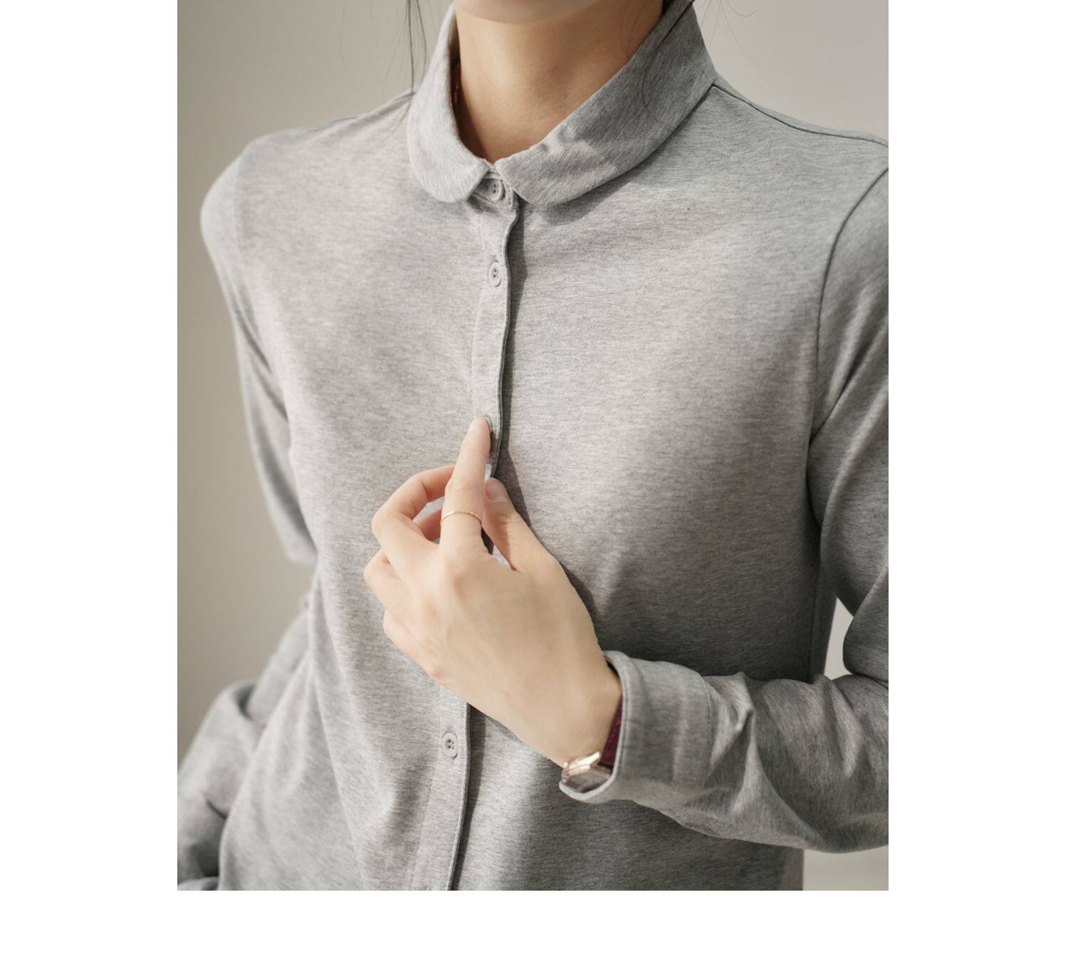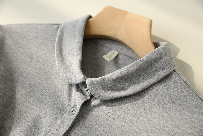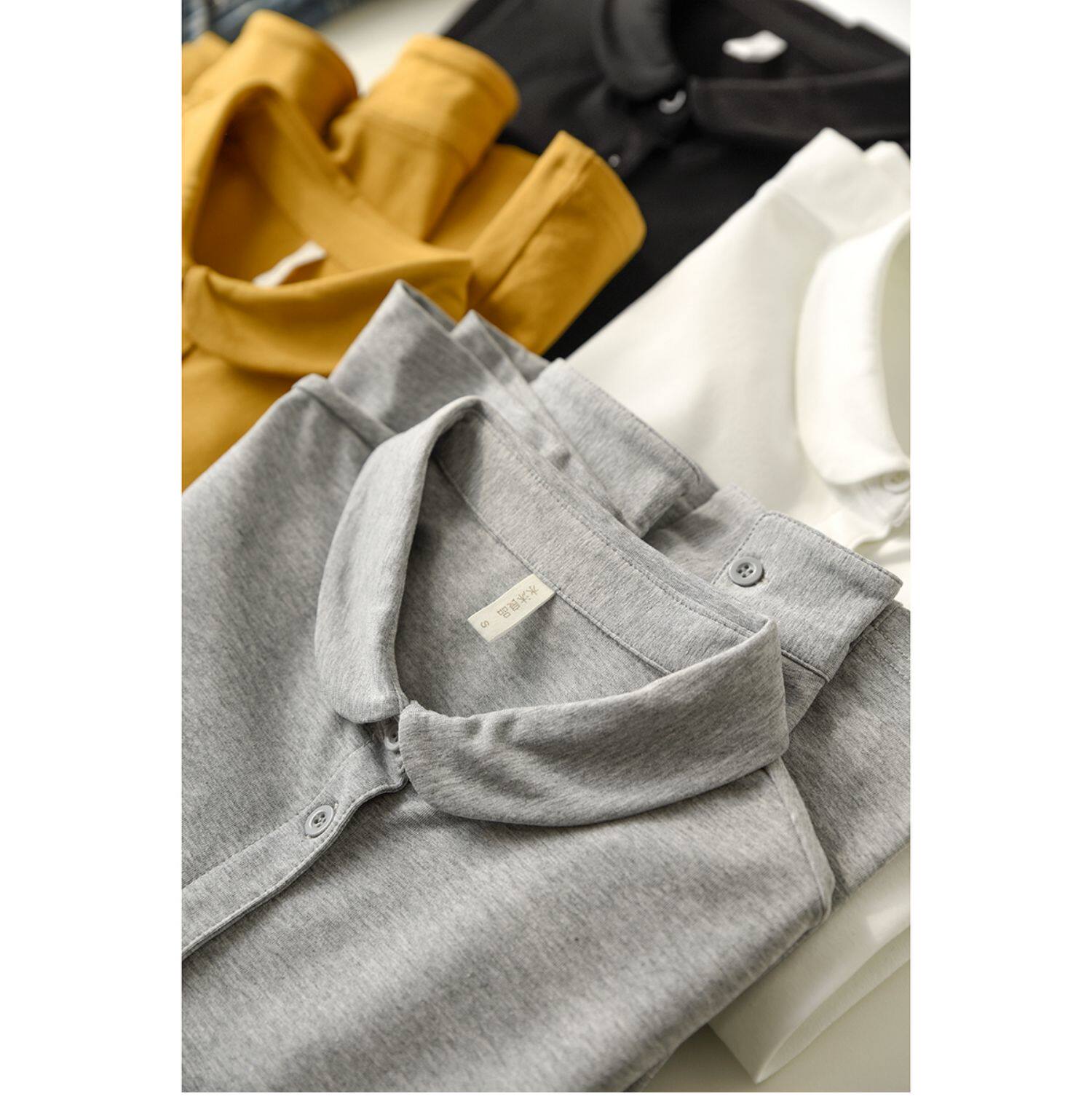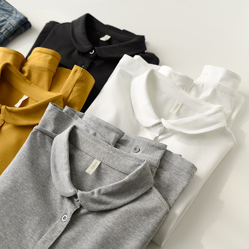 Трикотажная эластичная хлопковая рубашка с круглым воротником, лонгслив, воротник поло