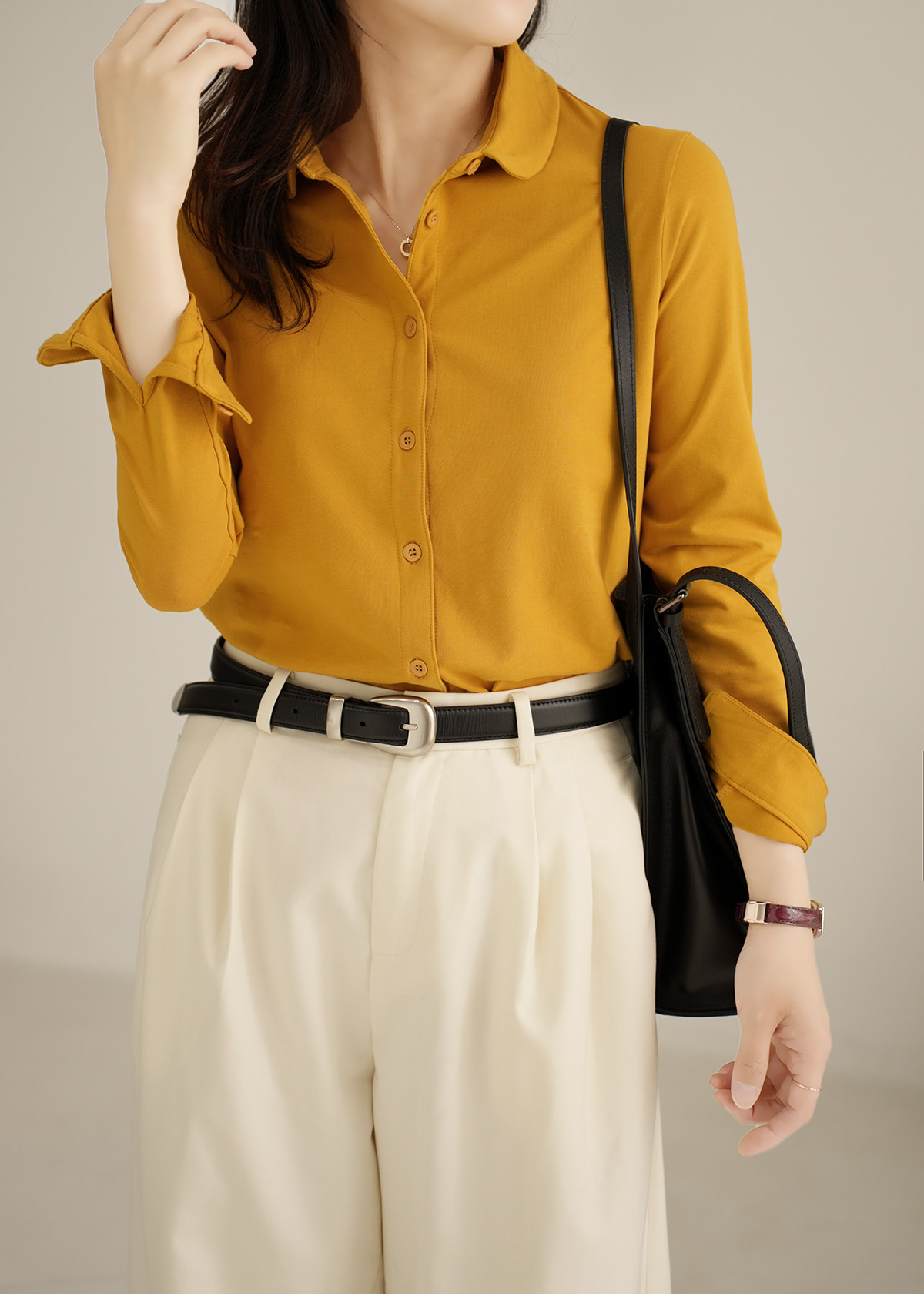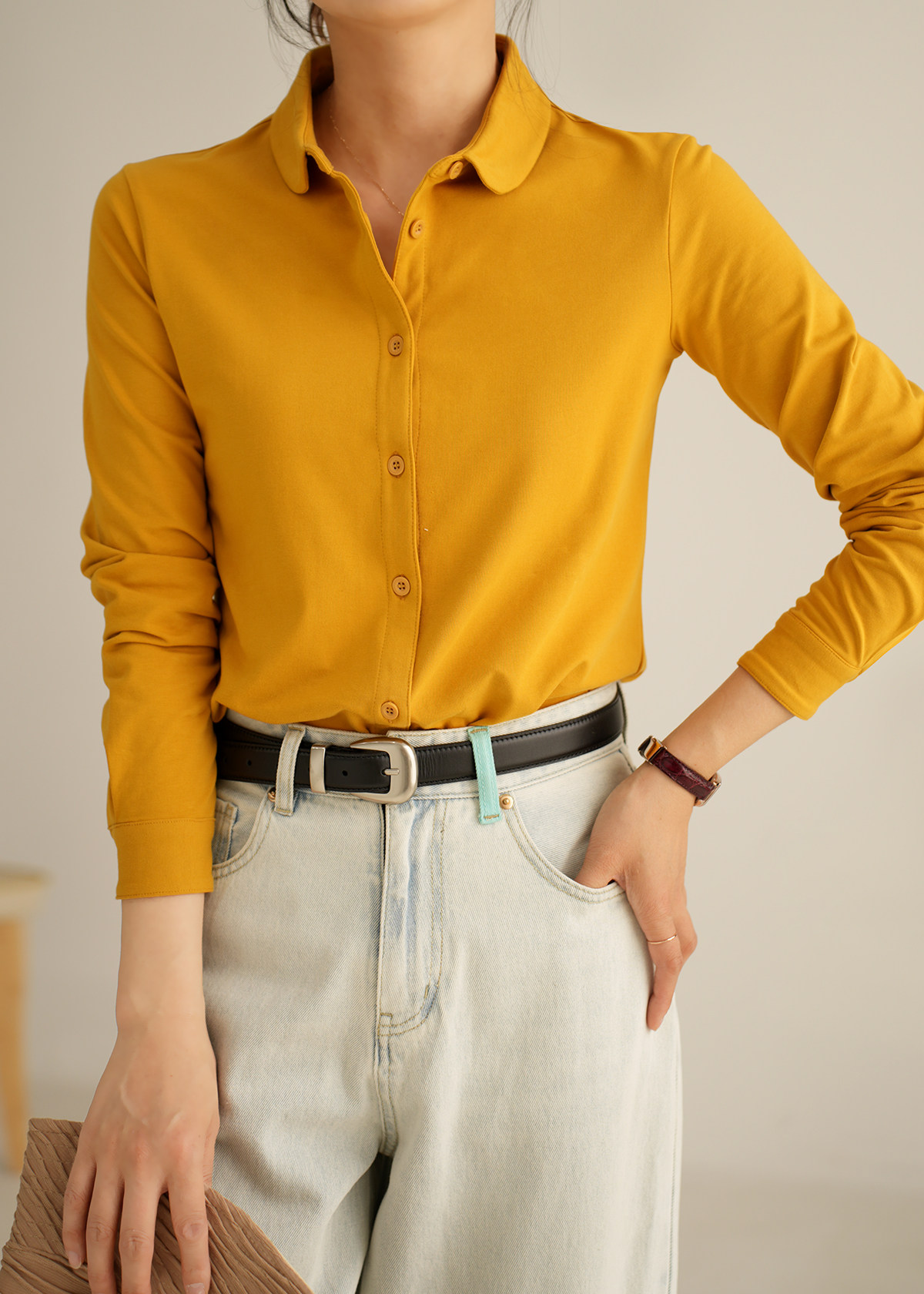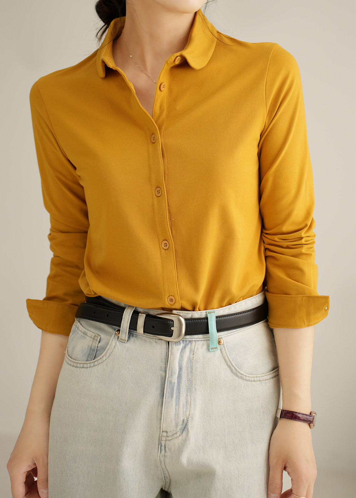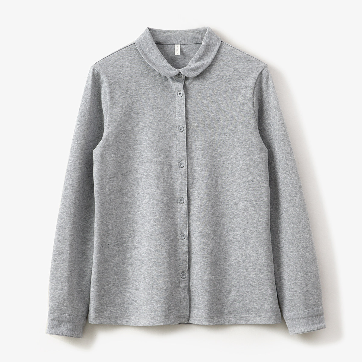 Трикотажная эластичная хлопковая рубашка с круглым воротником, лонгслив, воротник поло