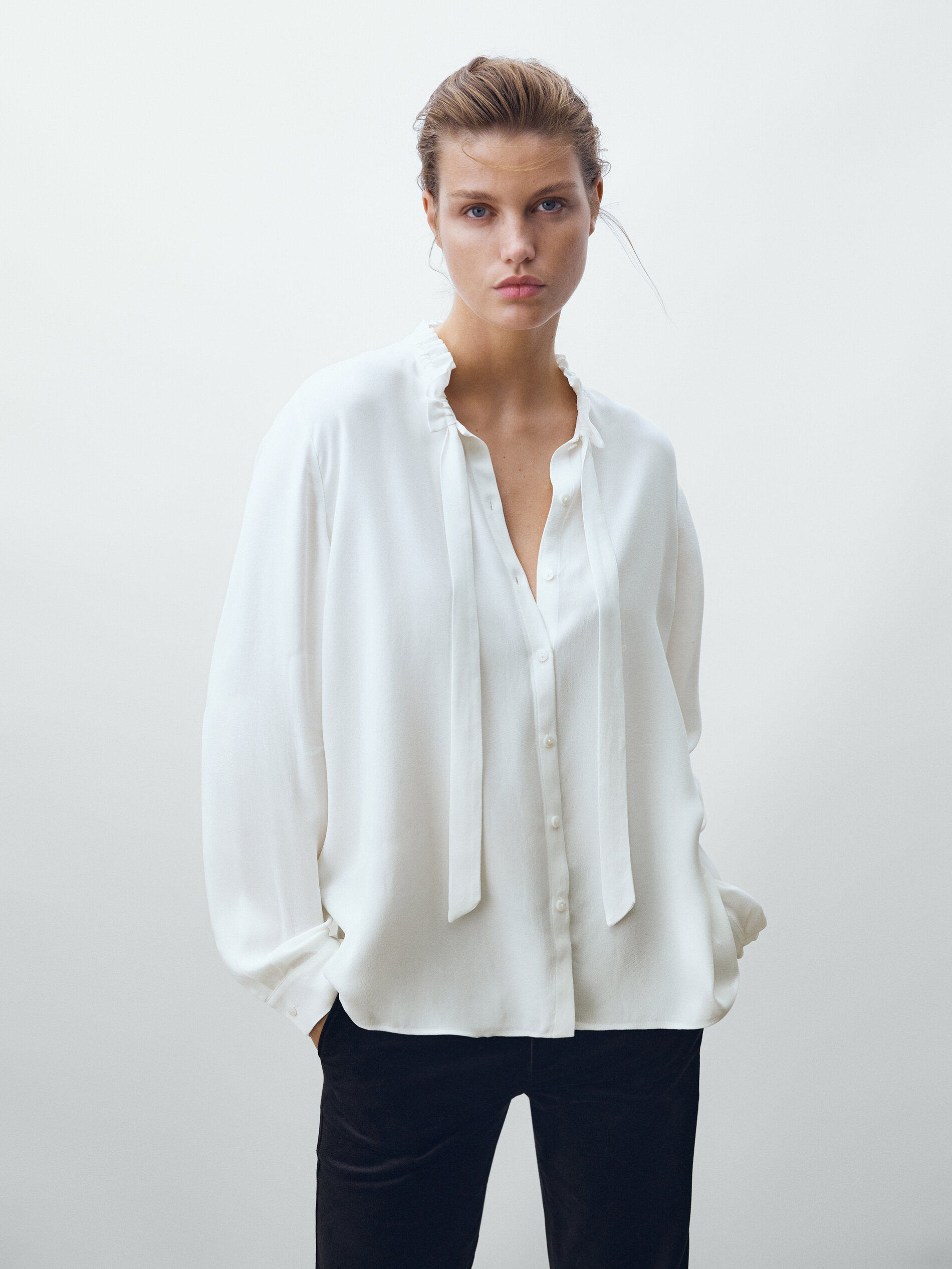 Лонгслив, рубашка с бантиком, Испания, свободный крой