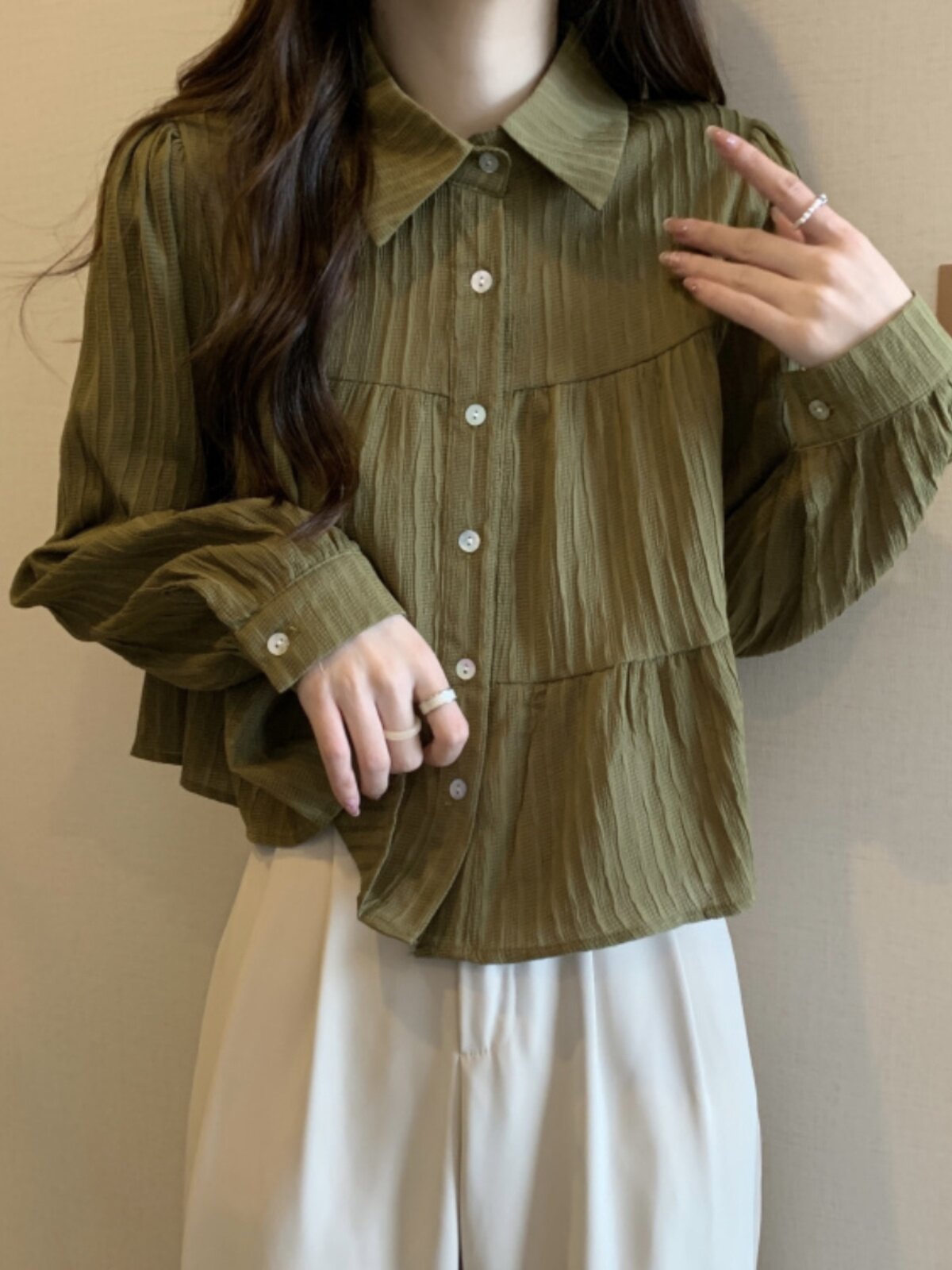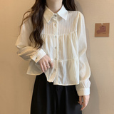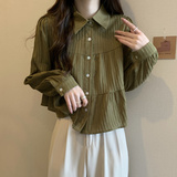 Шифоновая осенняя короткая рубашка, большой размер, французский стиль, воротник поло