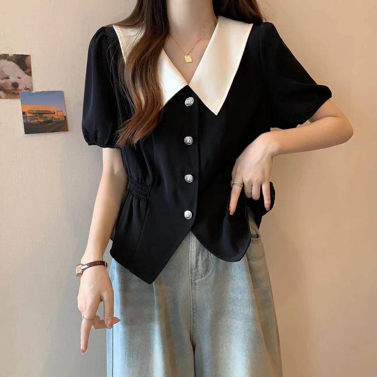 | Цвет: | Черная [жирная рубашка для живота, скрытое мясо/маленький человек/безразличие уникально и уникально/взрывоопасные/европейские товары/американская ретро/талия/мягкость/популярная красивая топ в этом году]] |
