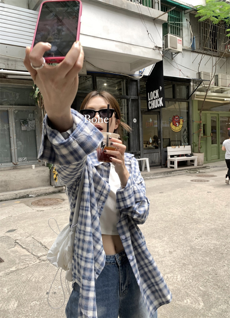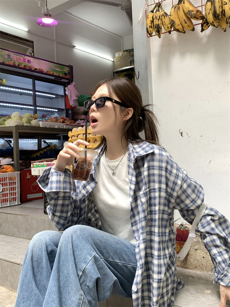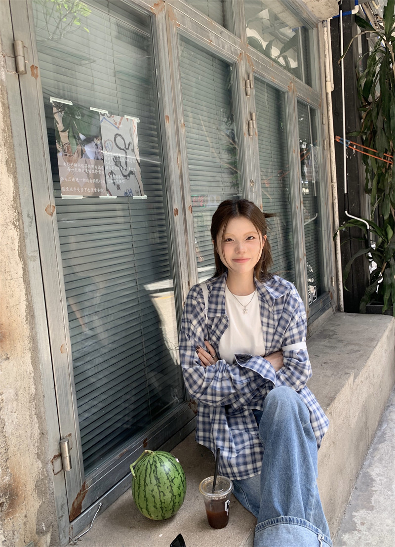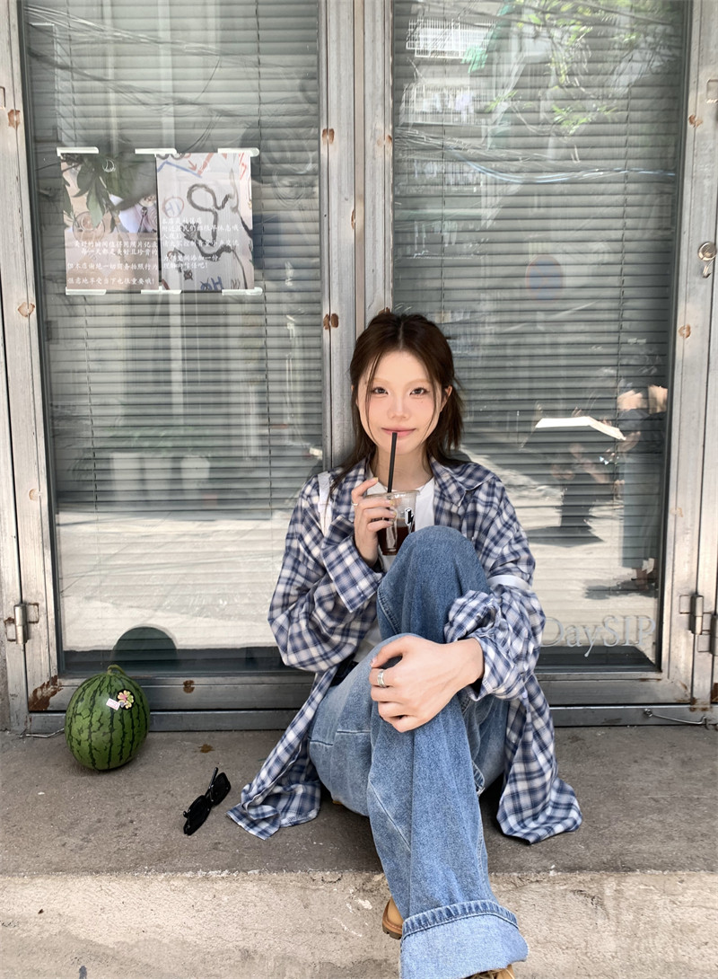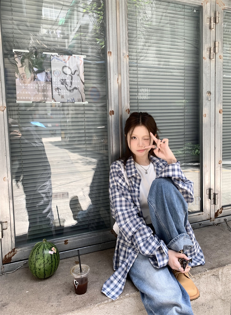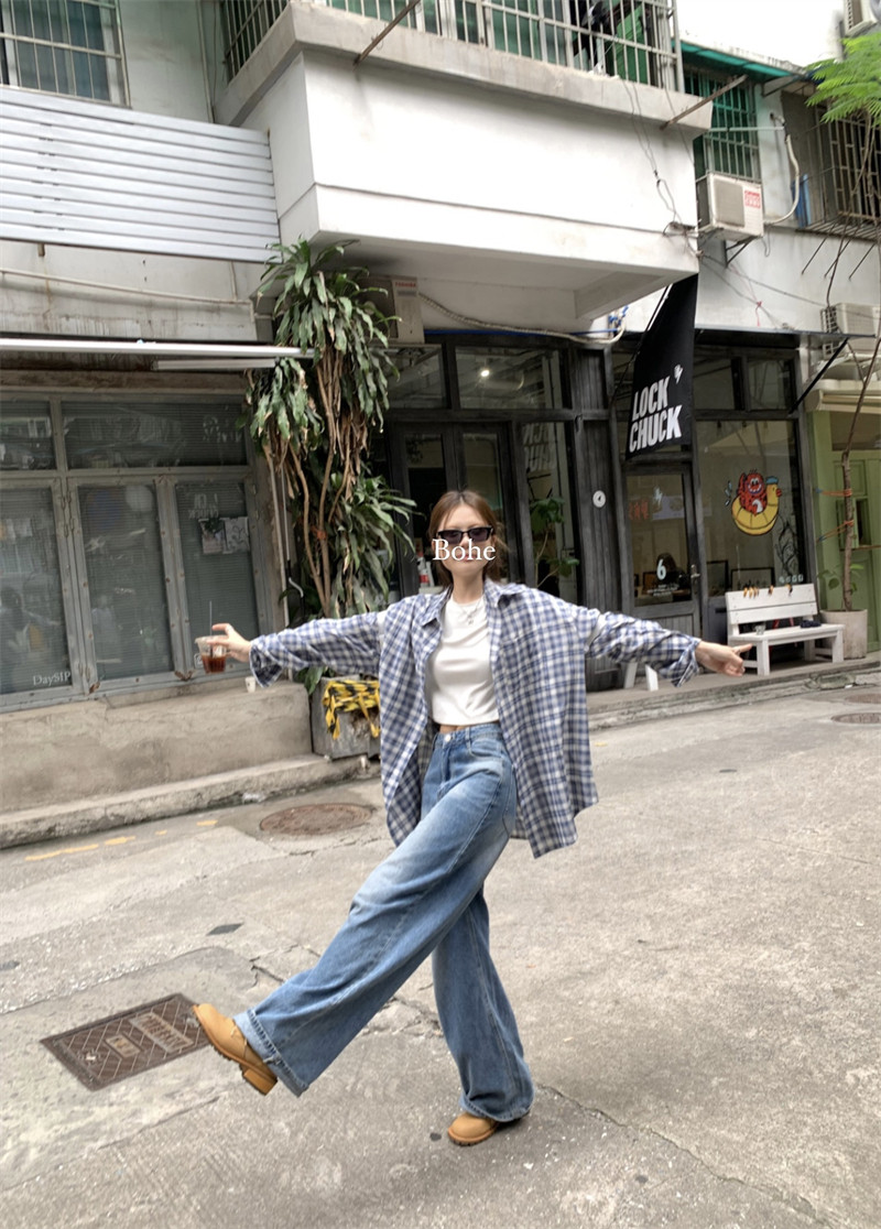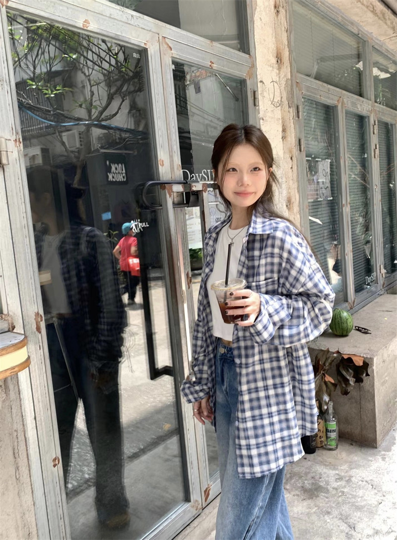 Японская классическая осенняя рубашка, лонгслив, оверсайз