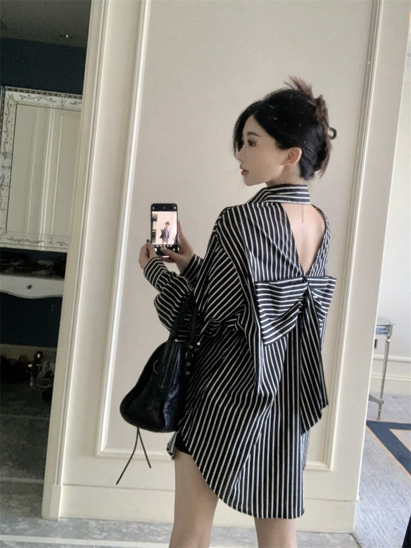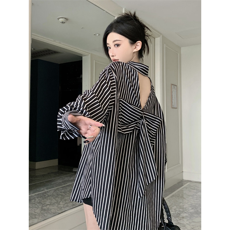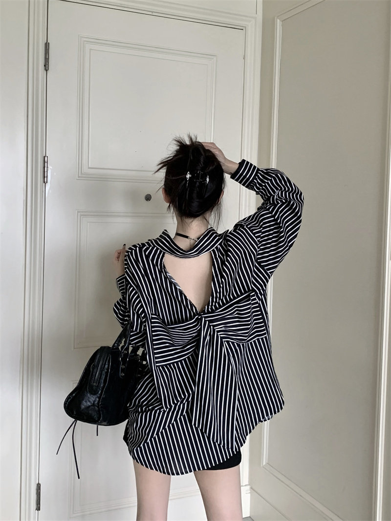 Осенняя сексуальная рубашка с бантиком, коллекция 2023, с открытой спиной
