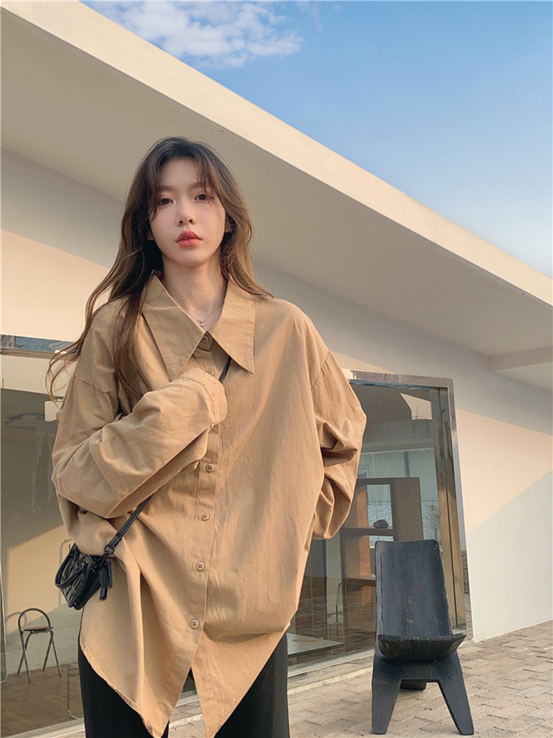 Демисезонная осенняя рубашка, большой размер, изысканный стиль, свободный крой, в западном стиле