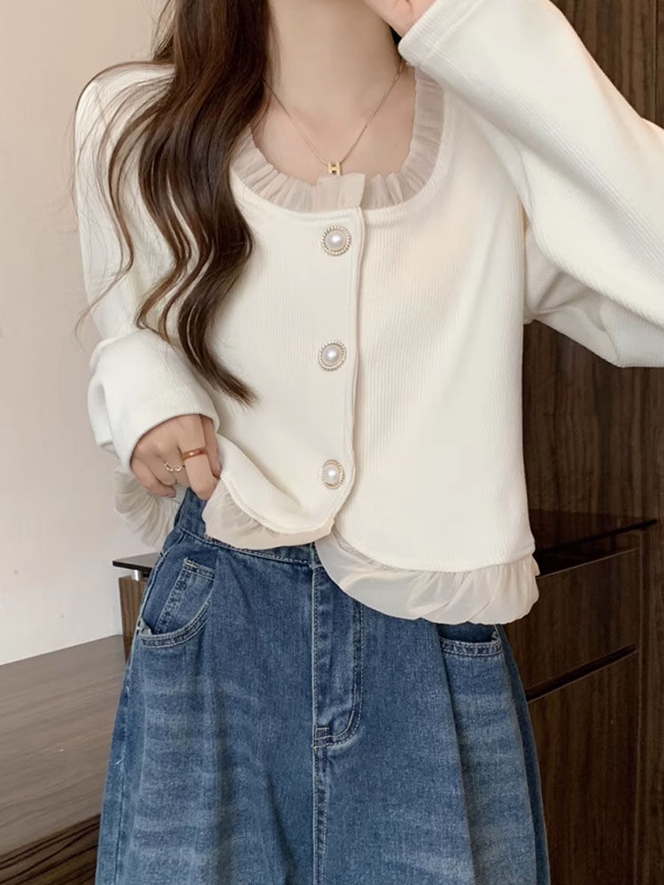 Рубашка, осенняя демисезонная куртка, шифоновый лонгслив, французский стиль