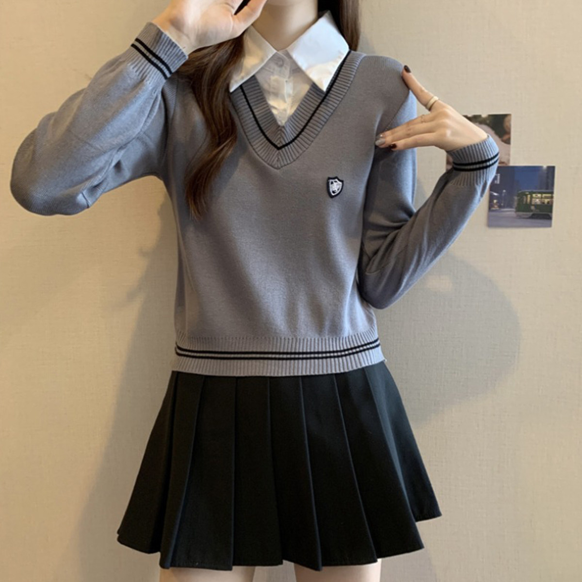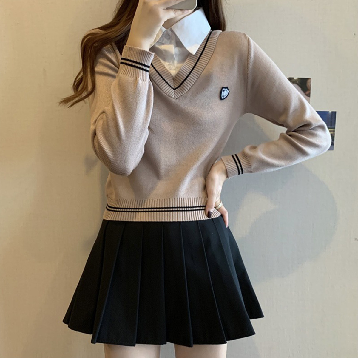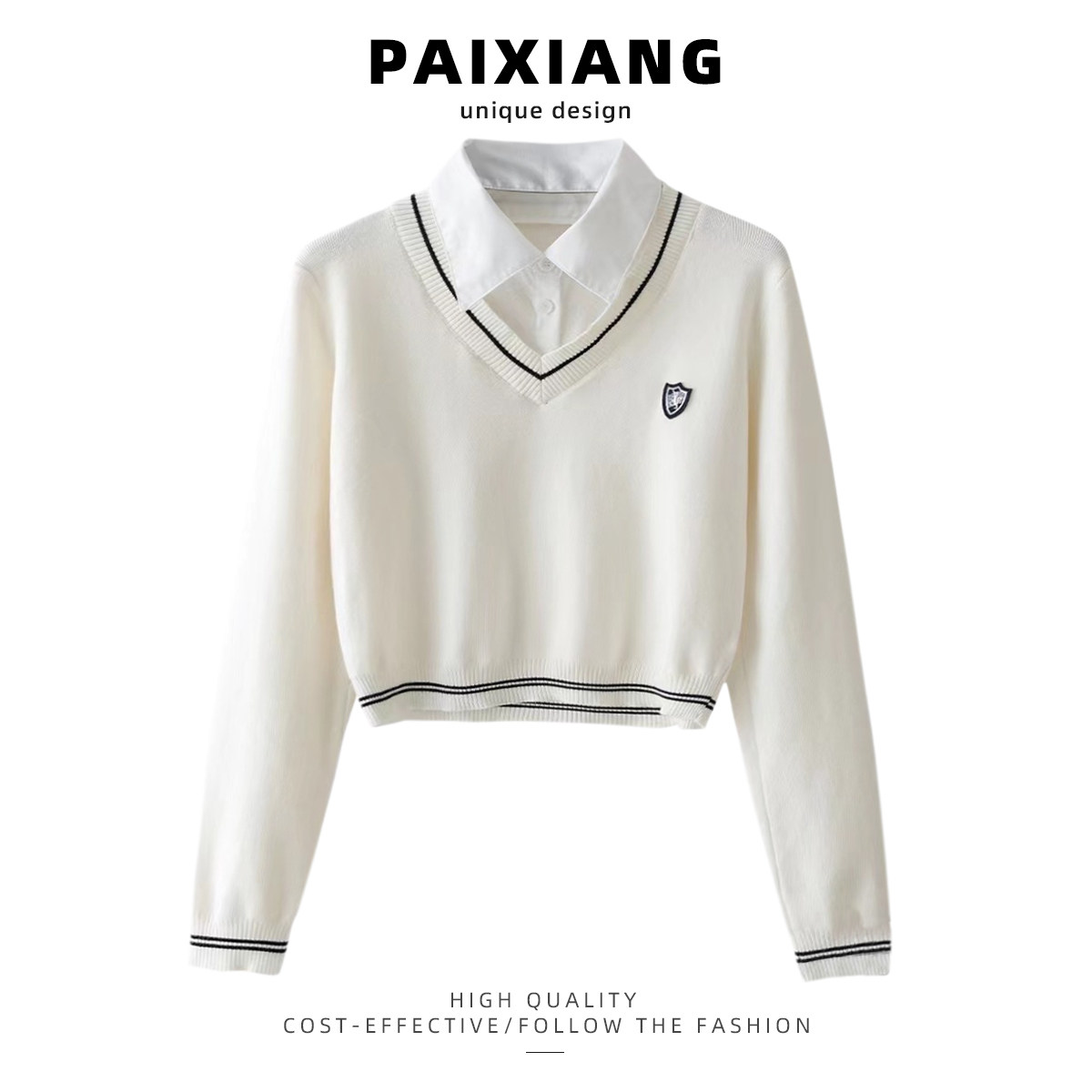 PAIXIANG Трикотажная рубашка, осенний свитер, комплект, воротник поло, облегающий крой