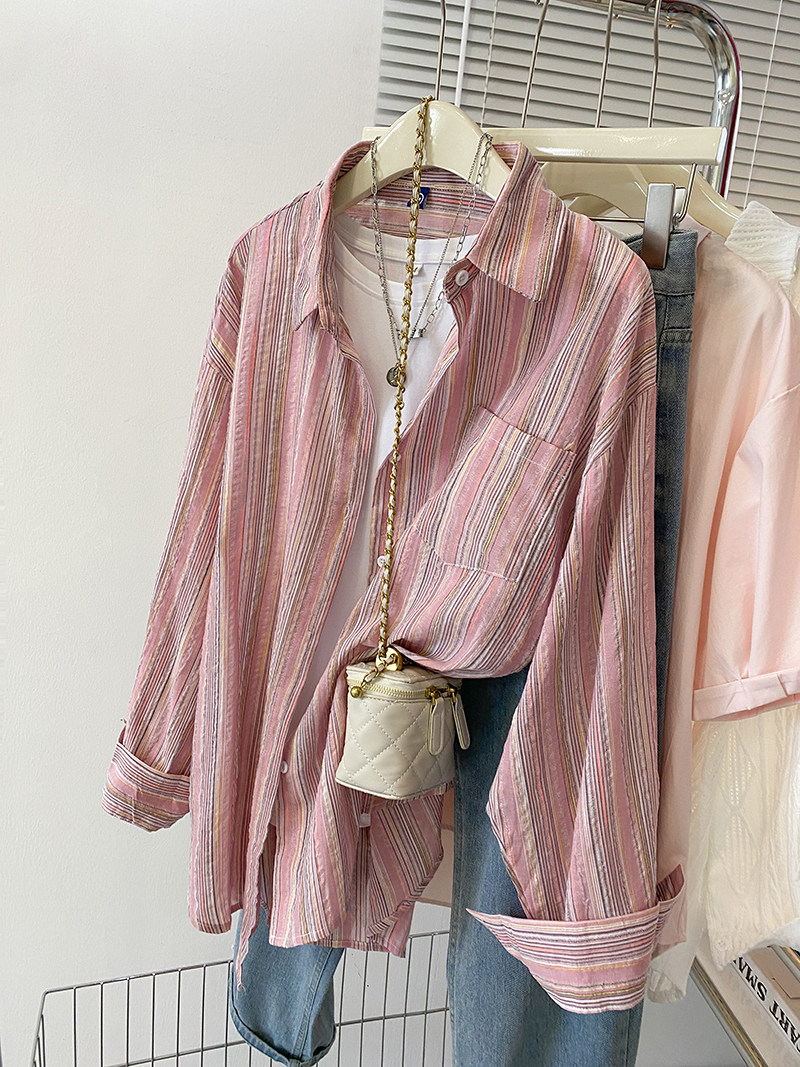 Розовая осенняя дизайнерская рубашка, цветной длинный кардиган, тренд сезона