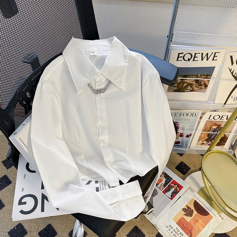 Короткий весенний лонгслив, весенняя рубашка, дизайнерская цепь, тренд сезона