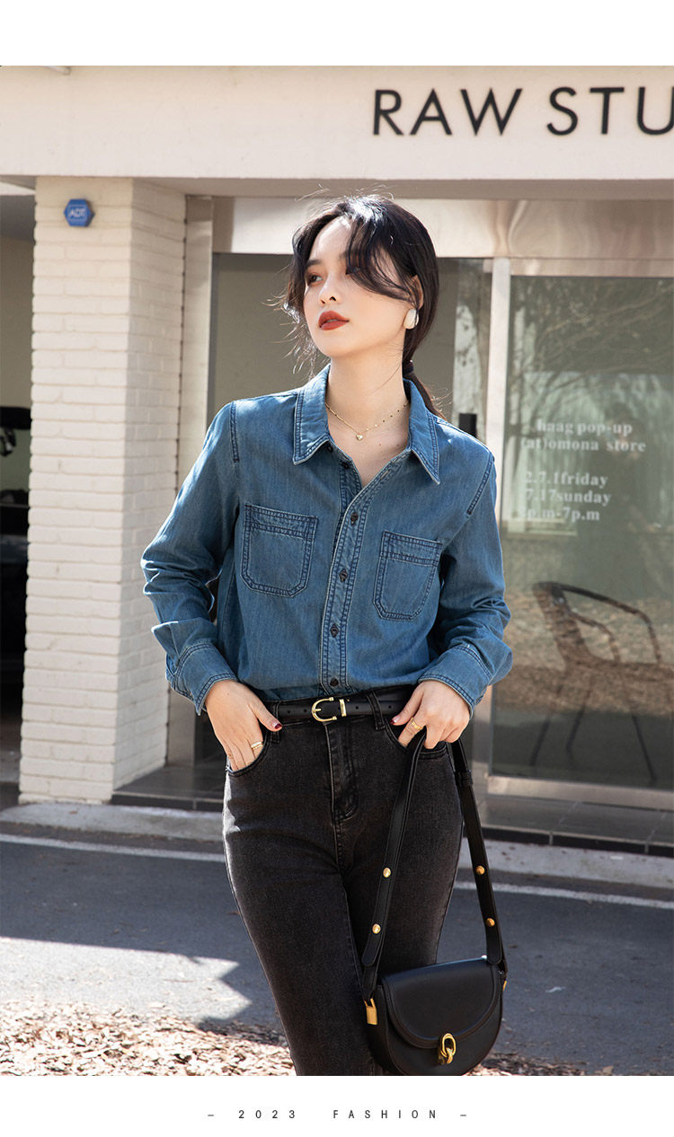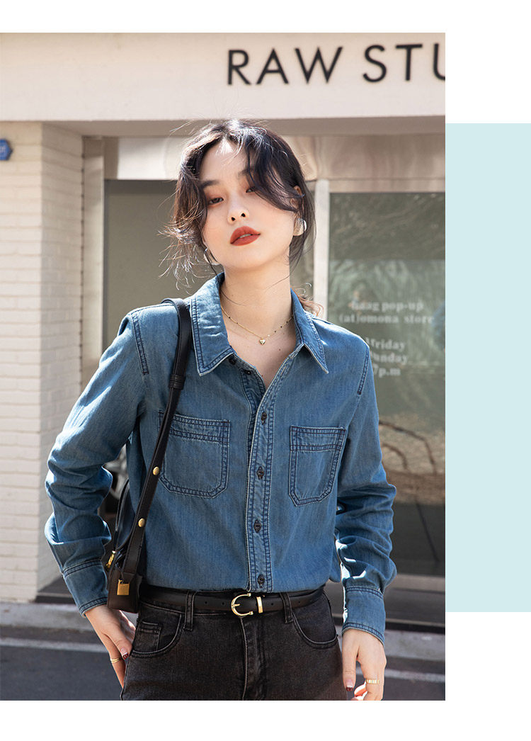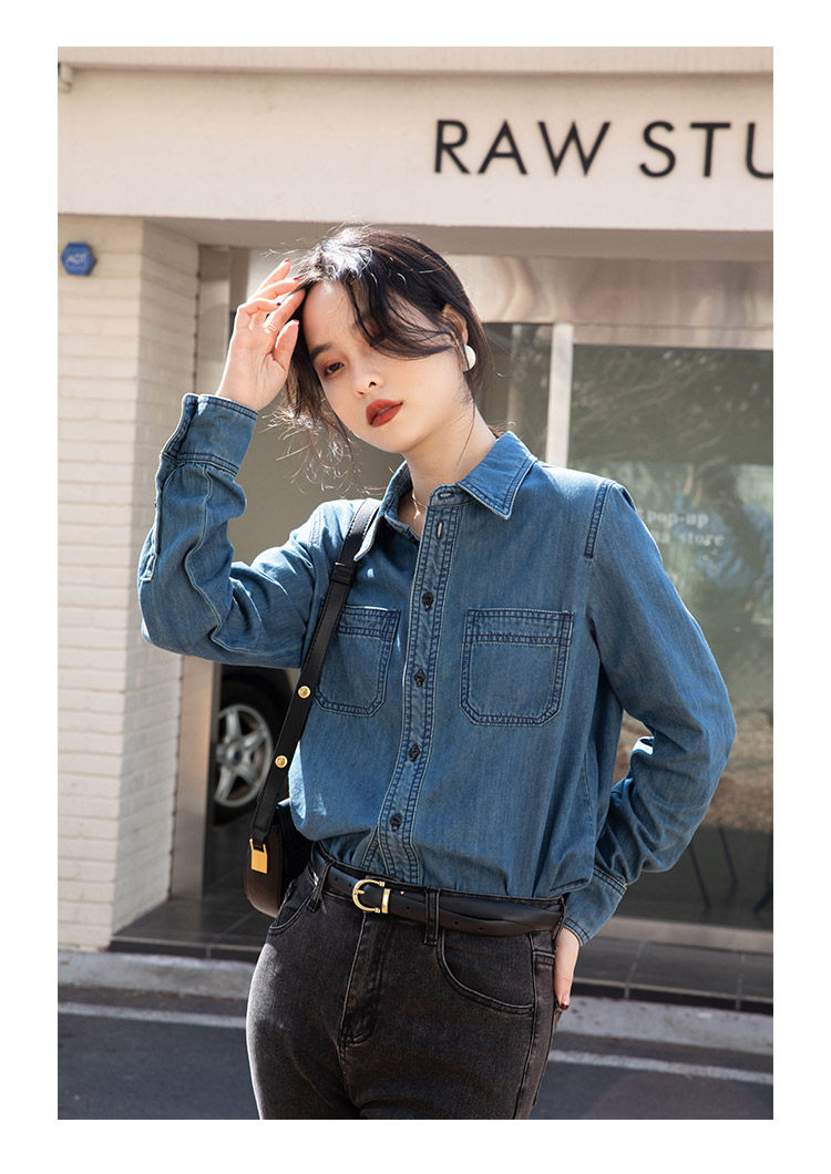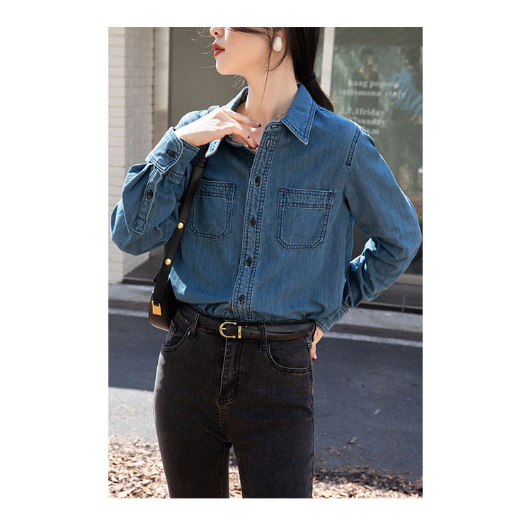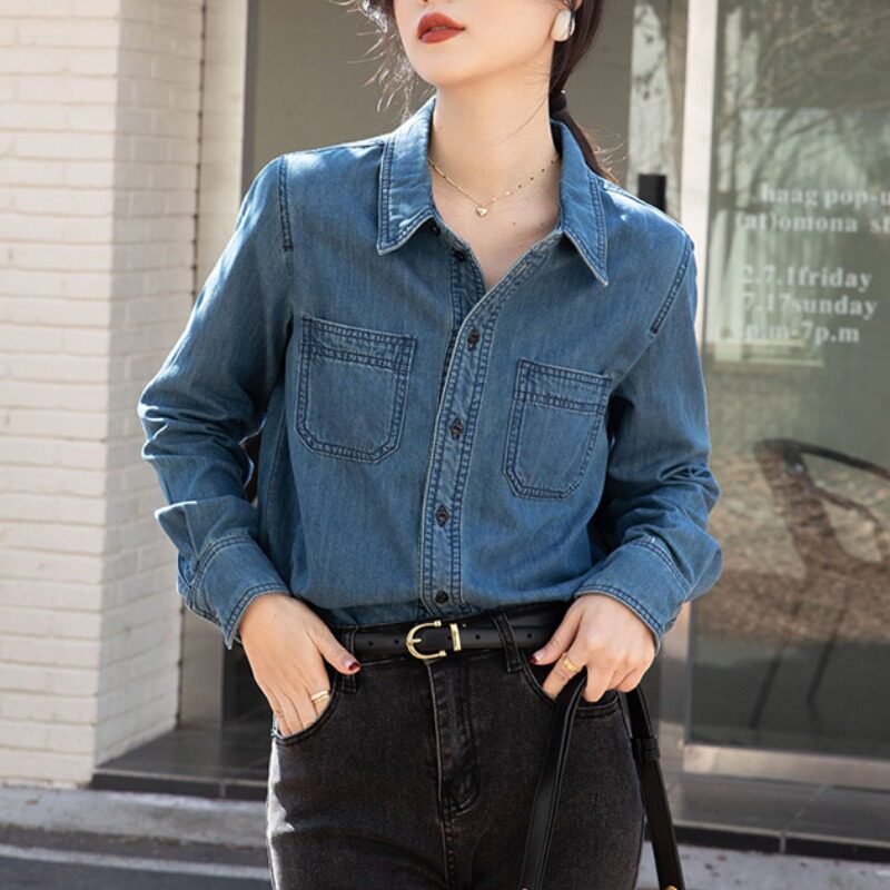 Ретро синяя рубашка, осенний дизайнерский джинсовый лонгслив, тренд сезона, подходит для подростков