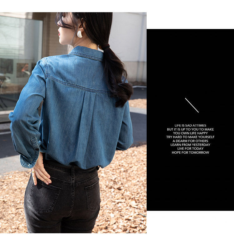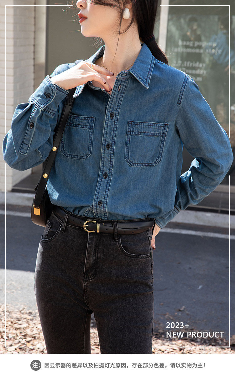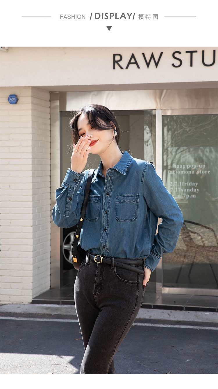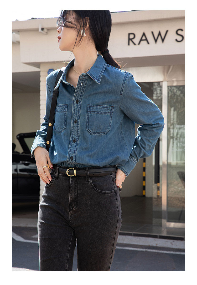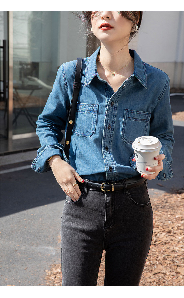 Ретро синяя рубашка, осенний дизайнерский джинсовый лонгслив, тренд сезона, подходит для подростков