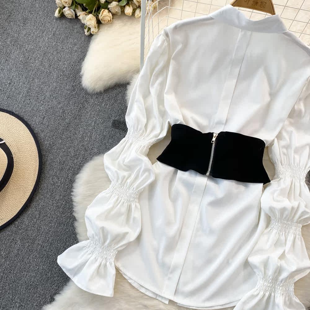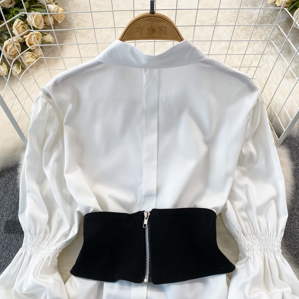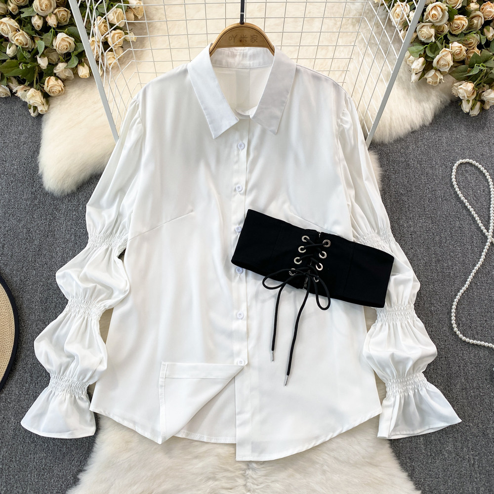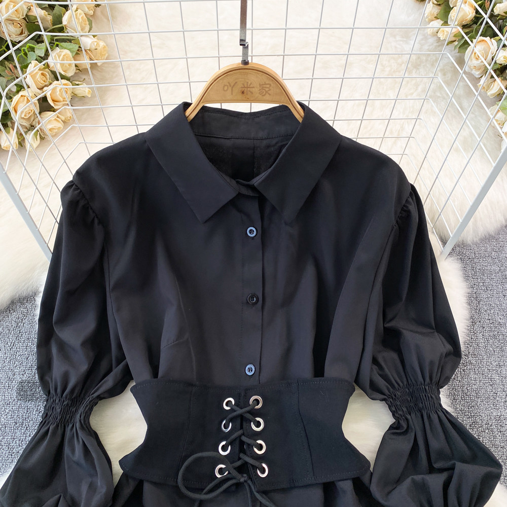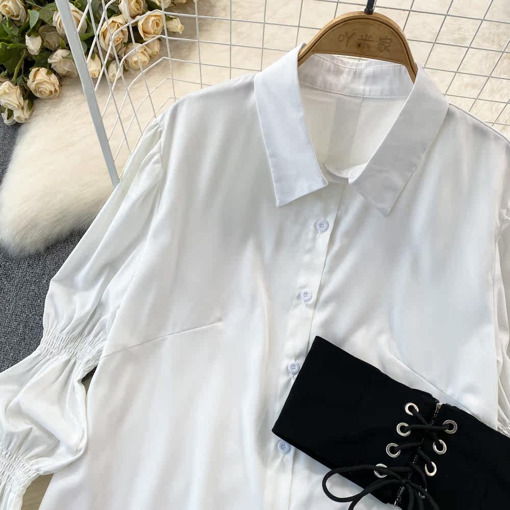 Демисезонный фонарь, лонгслив, длинный корсет, рубашка, в корейском стиле, средней длины