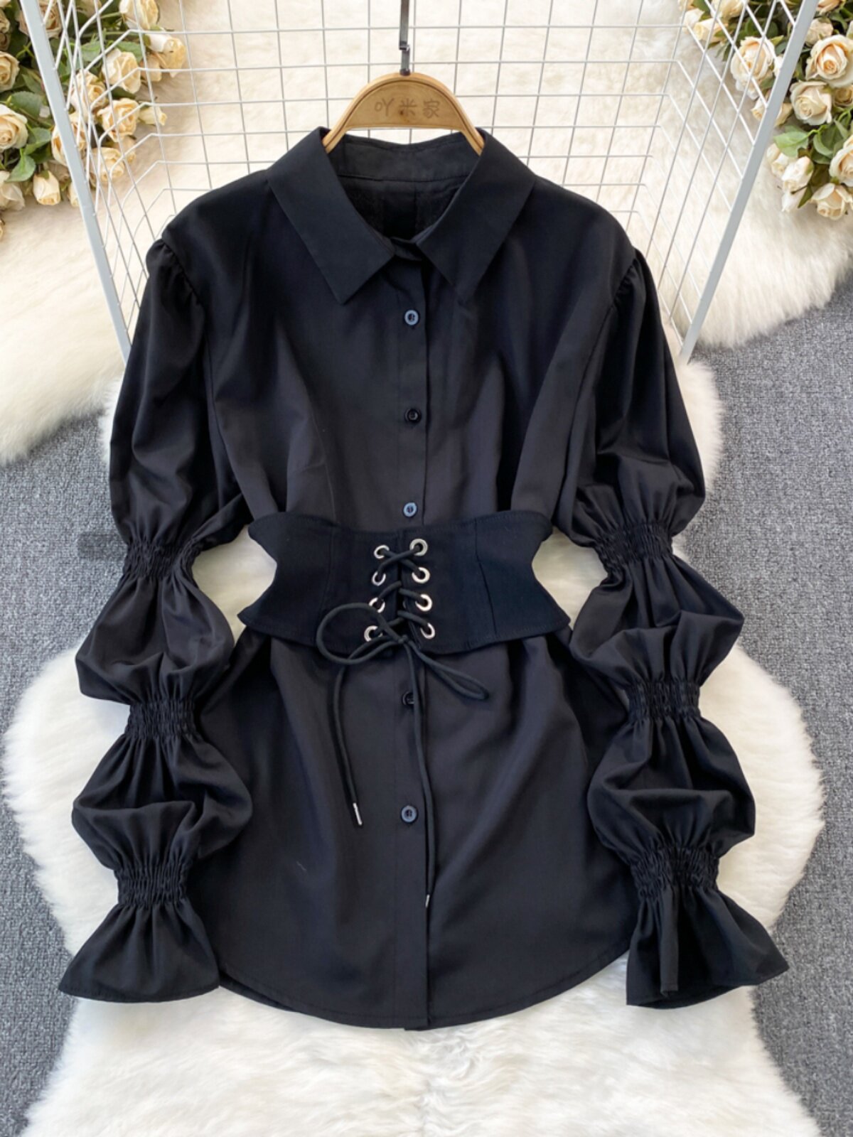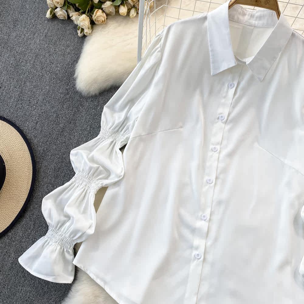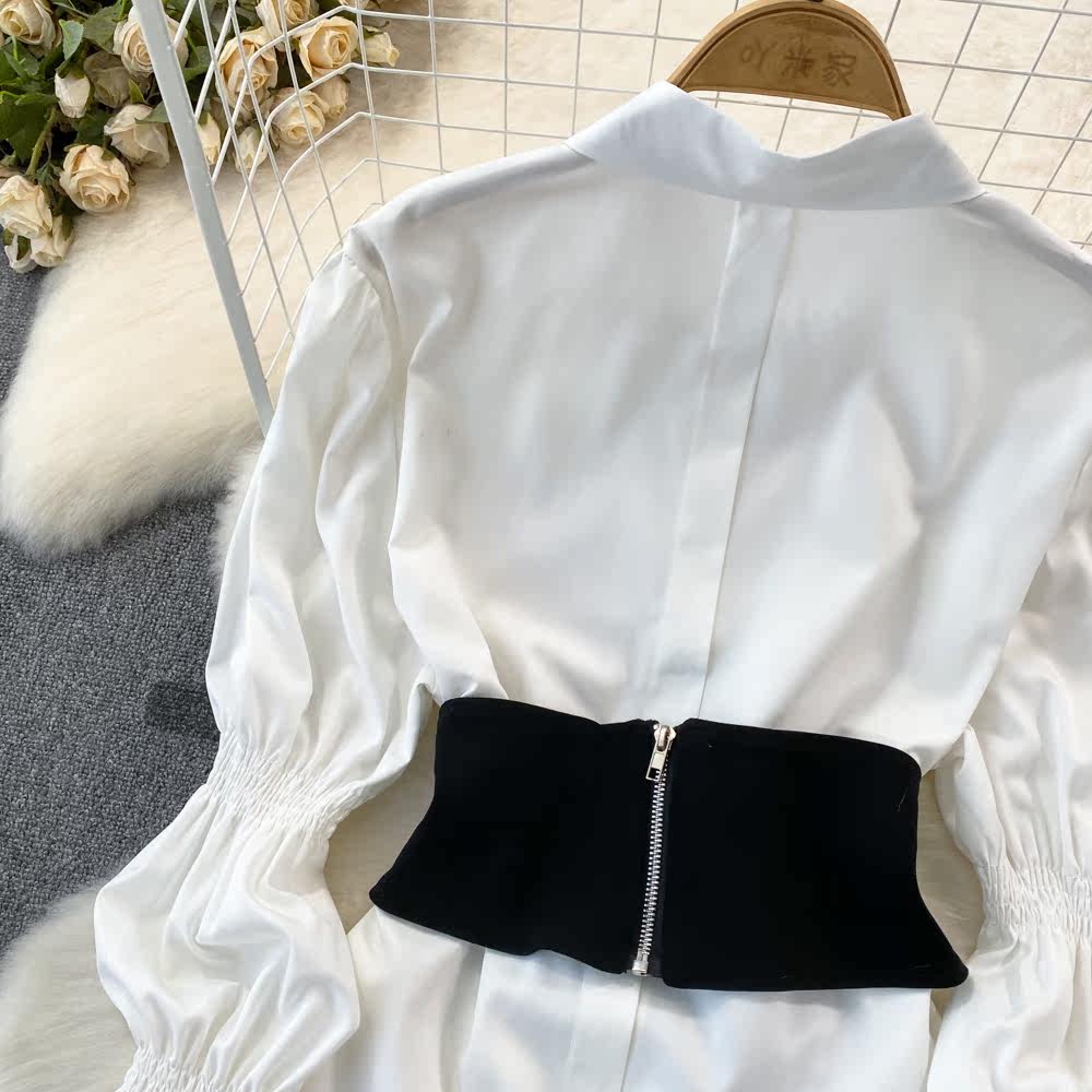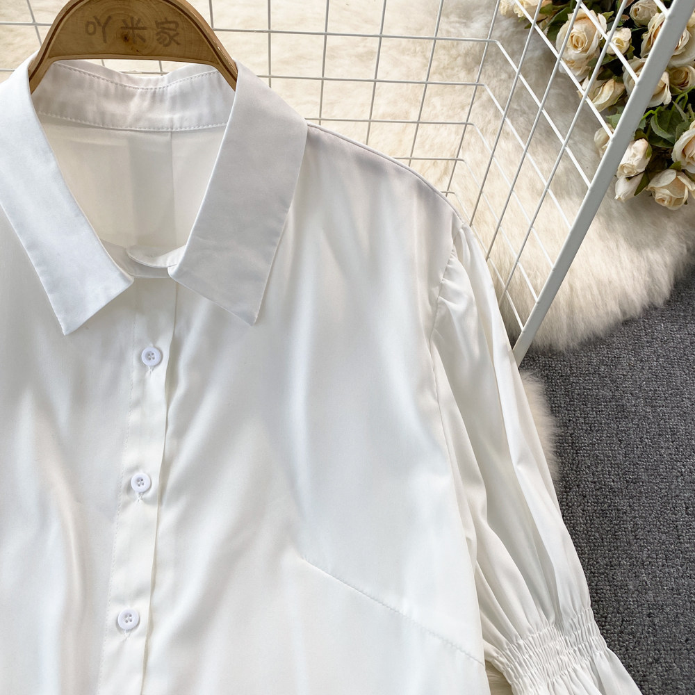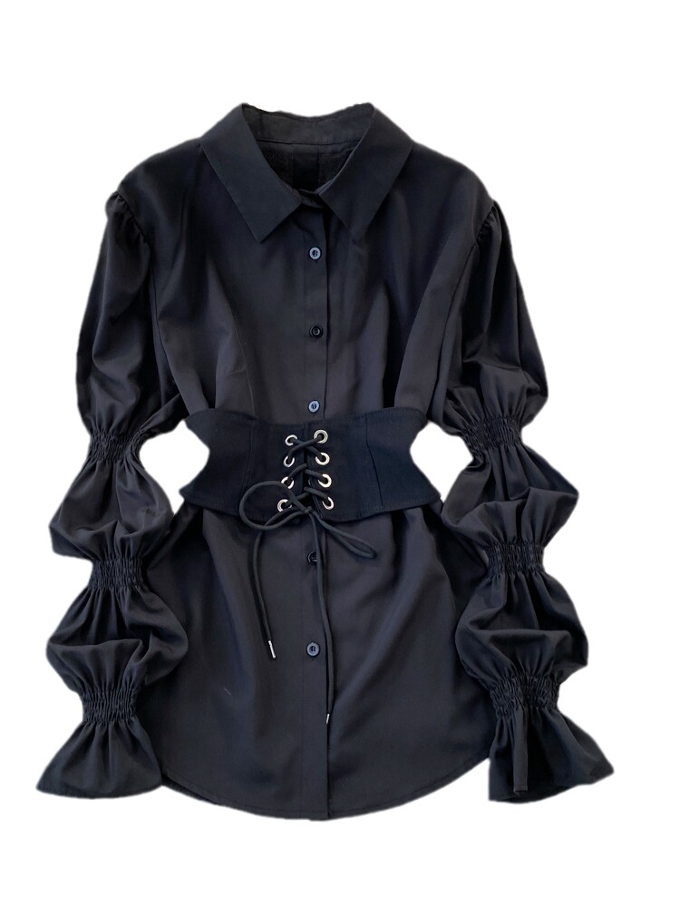 Демисезонный фонарь, лонгслив, длинный корсет, рубашка, в корейском стиле, средней длины