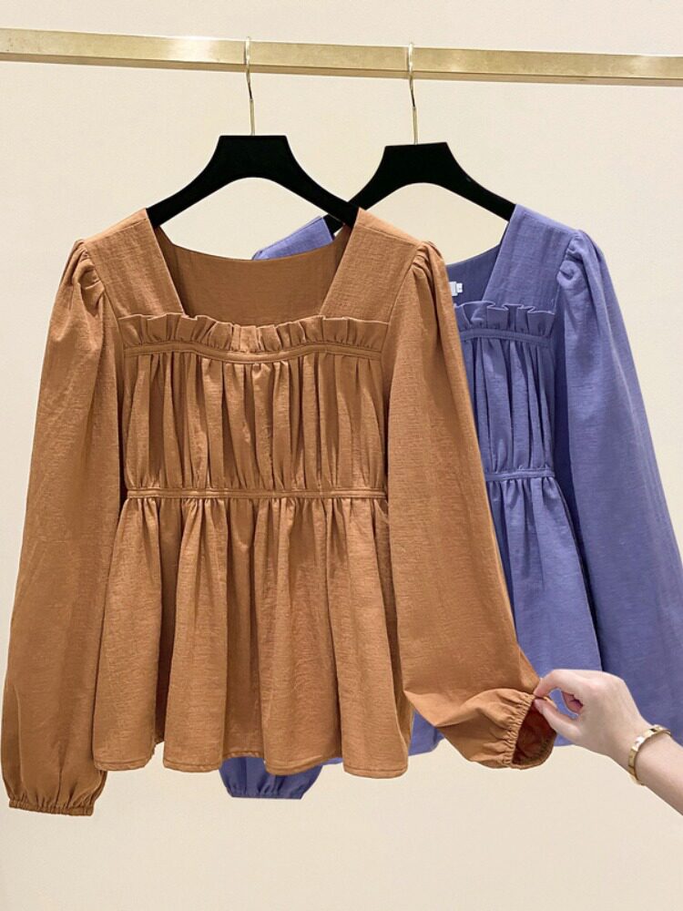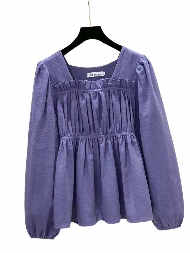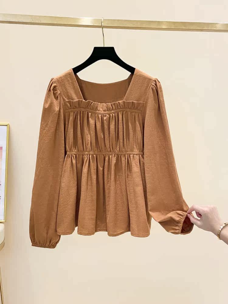Шифоновый осенний дизайнерский лонгслив, большой размер, квадратный вырез, оверсайз, свободный крой