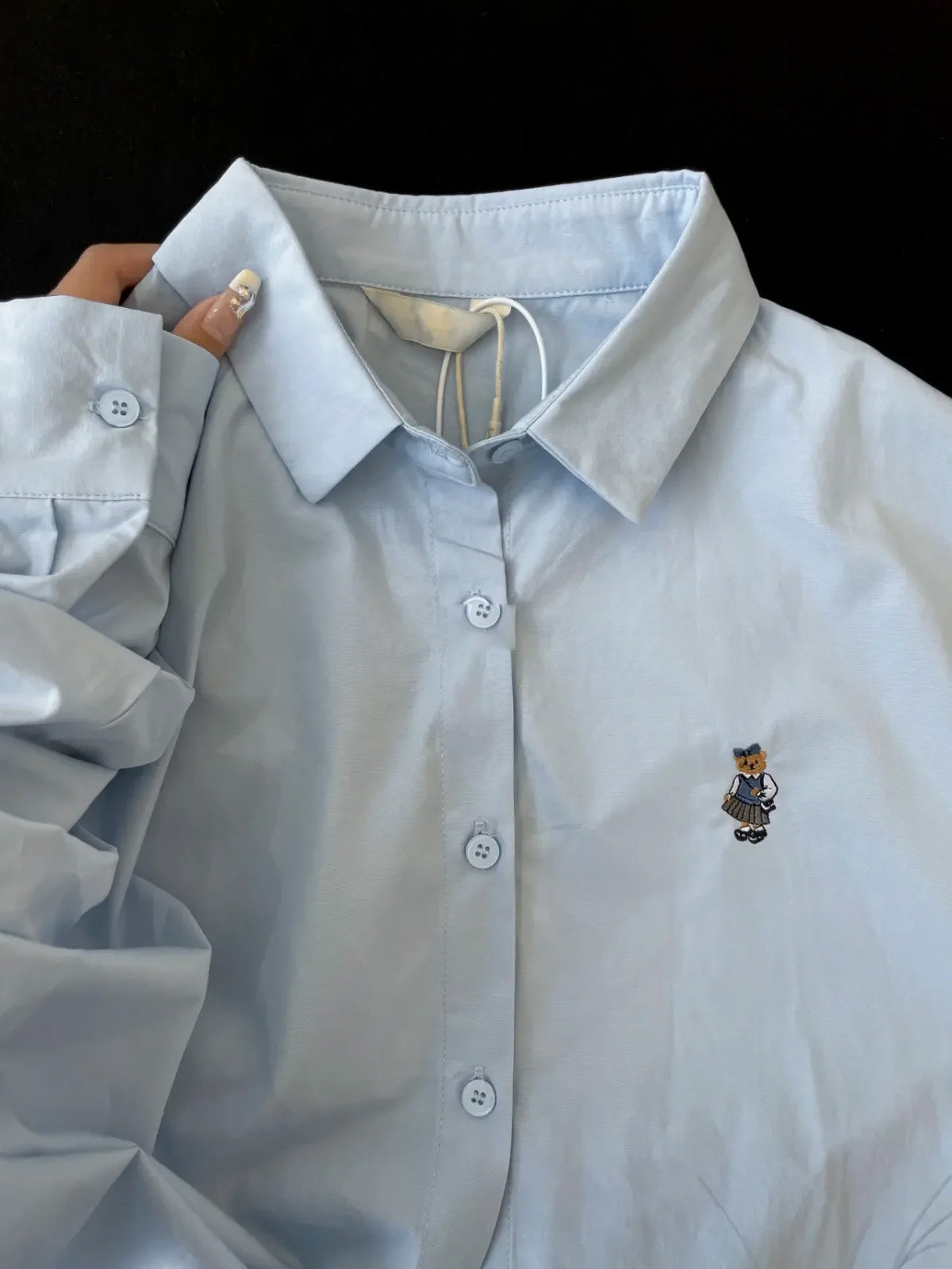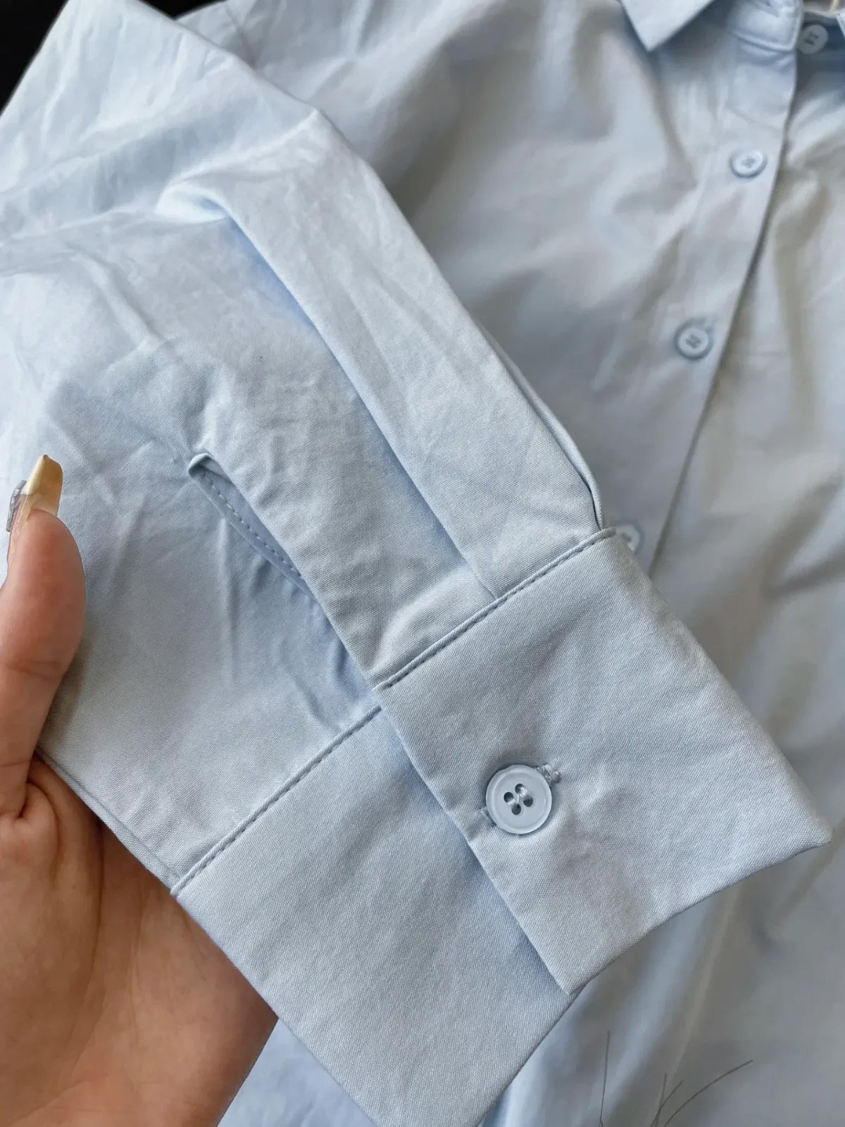 Синяя хлопковая осенняя рубашка, куртка, с вышивкой, свободный крой