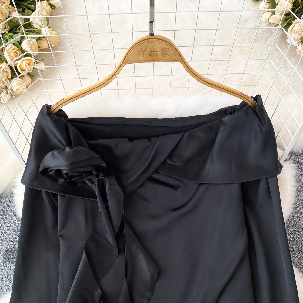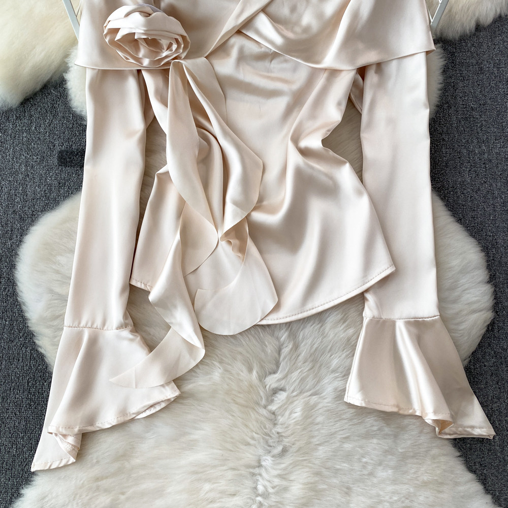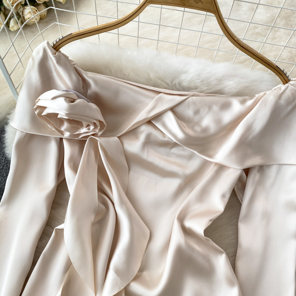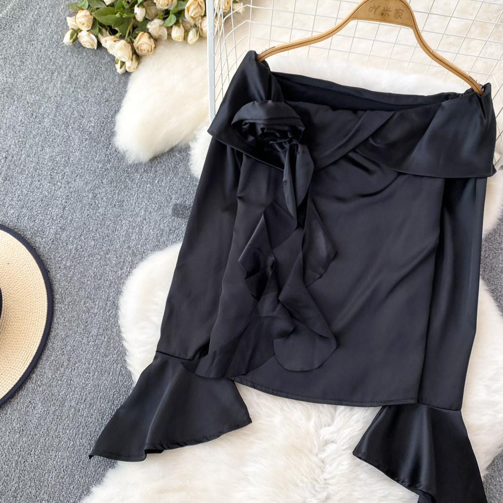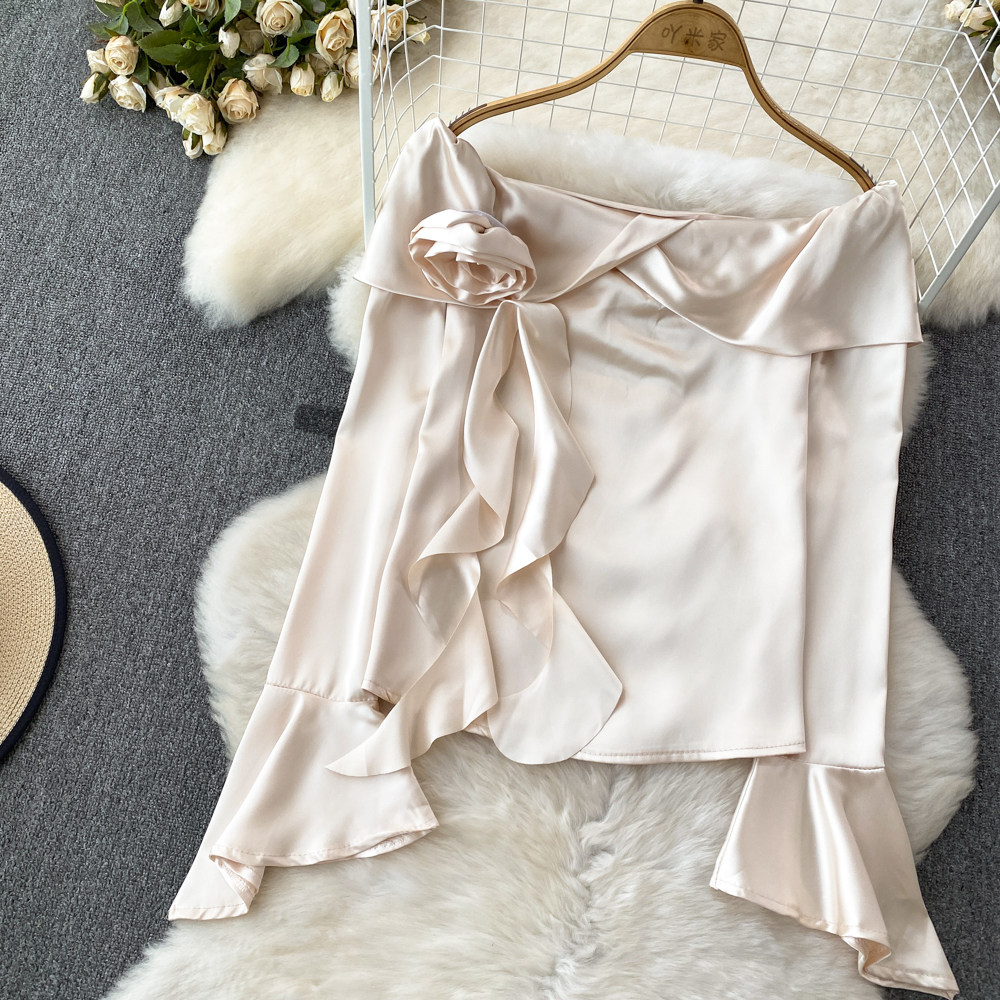 Мегафон, трехмерный лонгслив, рубашка, в корейском стиле, в цветочек, открытые плечи, облегающий крой, в западном стиле