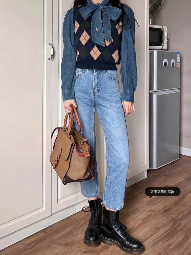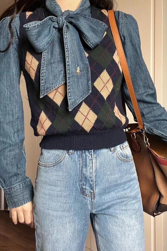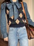 Весенняя ретро пони с бантиком, ремень, рубашка, в американском стиле
