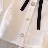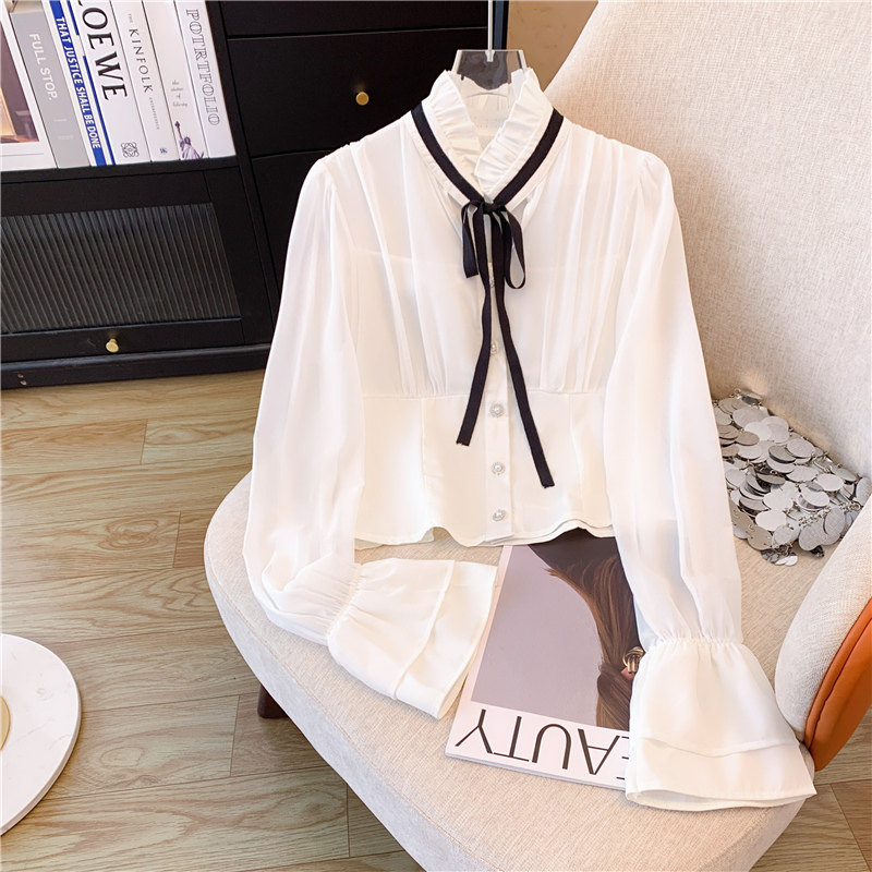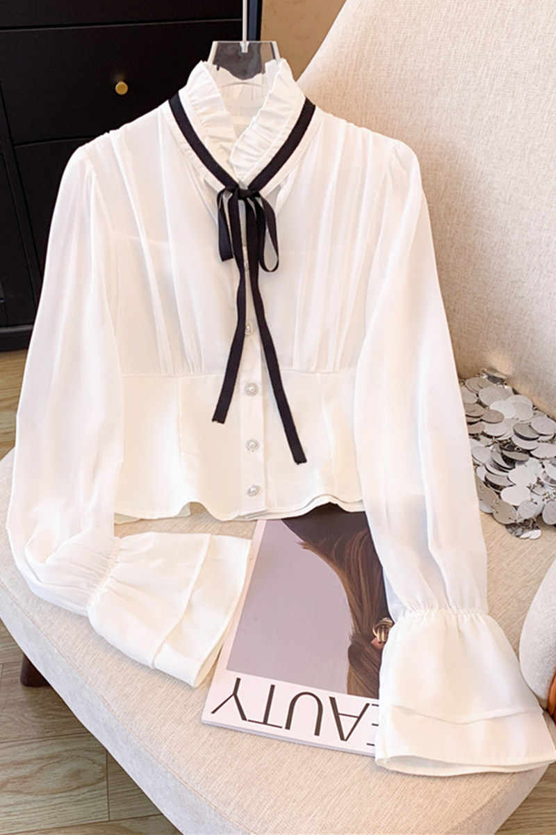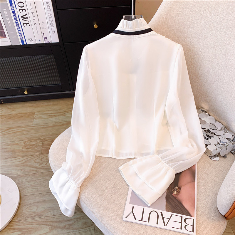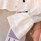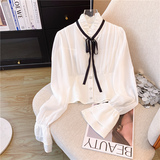 Шифоновая демисезонная рубашка с бантиком, лонгслив, французский стиль, в стиле Шанель