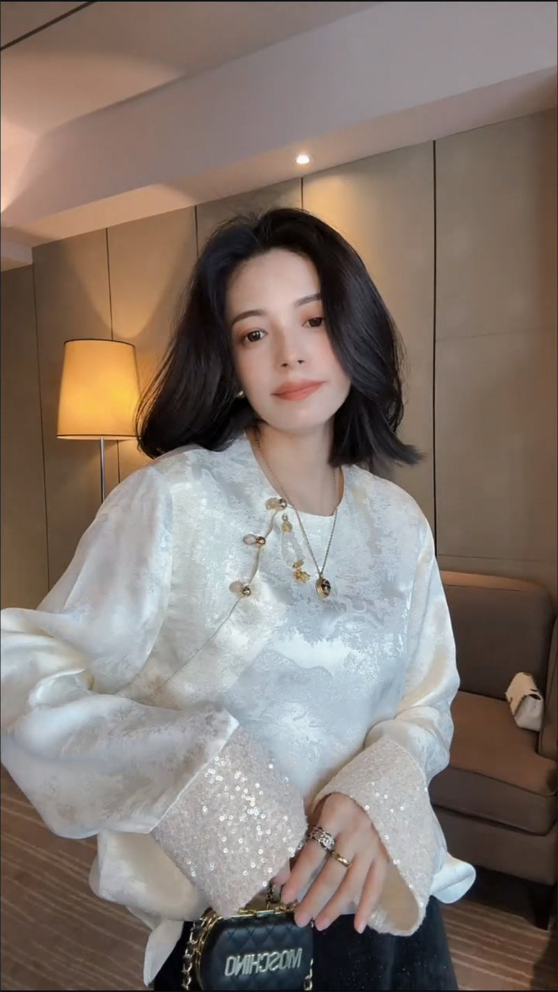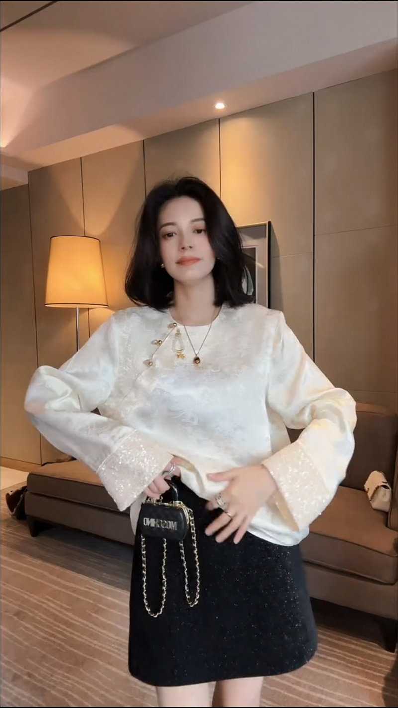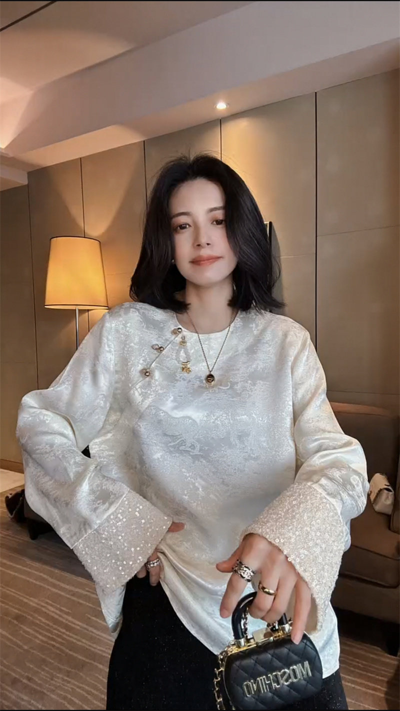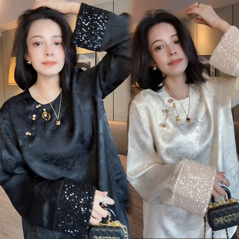 Осенняя рубашка с круглым воротником, китайский стиль, в западном стиле, свободный крой
