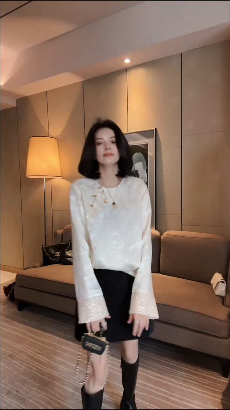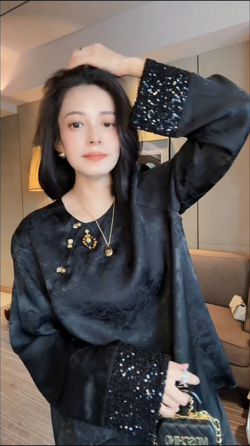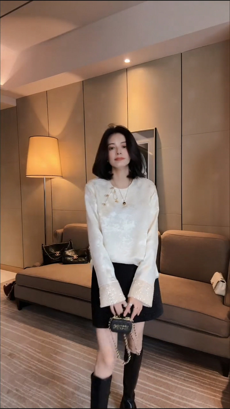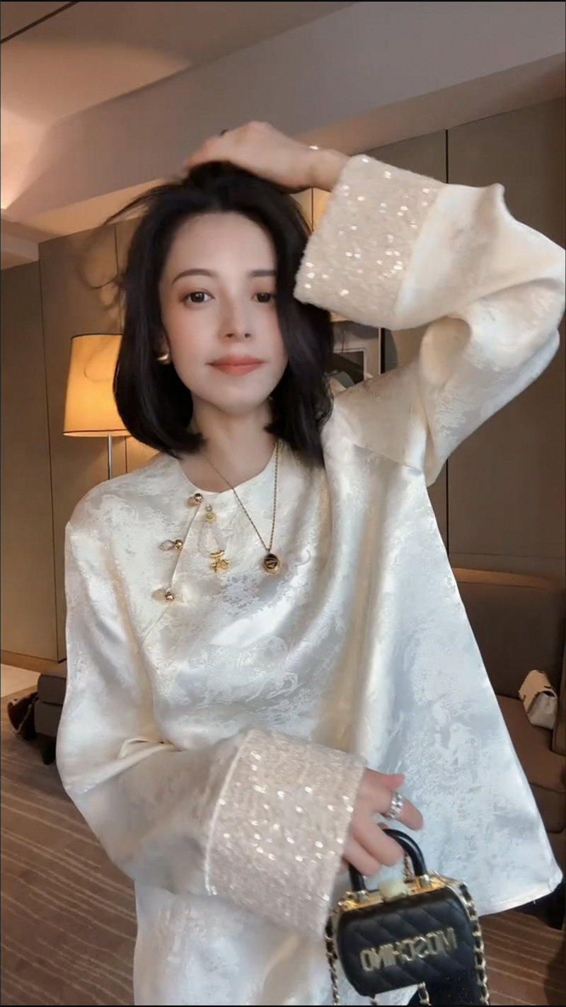 Осенняя рубашка с круглым воротником, китайский стиль, в западном стиле, свободный крой