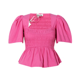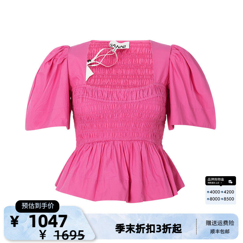 GANNI 24 весенне-летних новых женских розово-красных плиссированных топов с декоративной французской талией и половиной рукавов, универмаг Intime