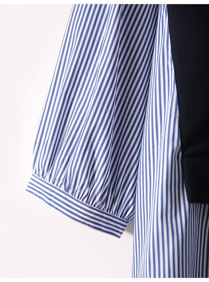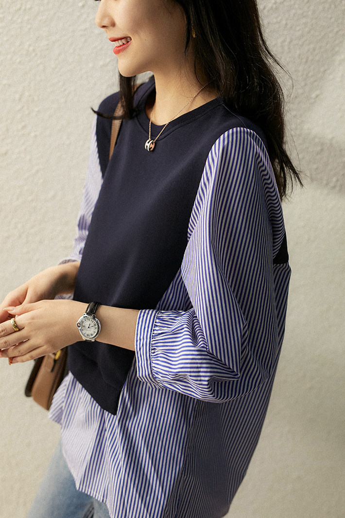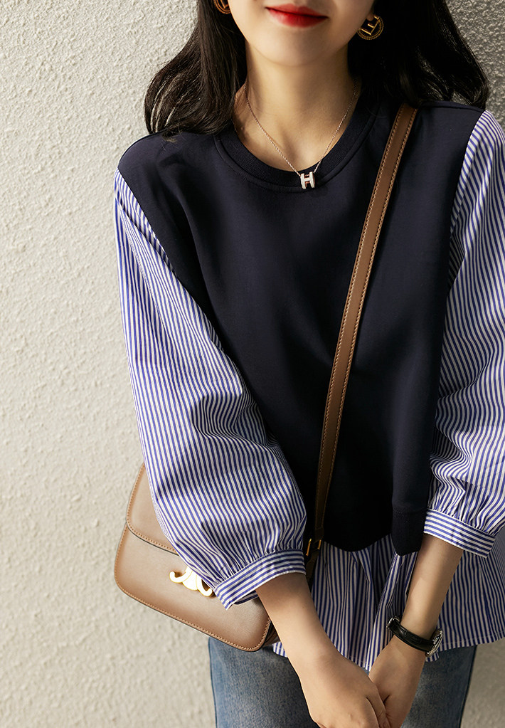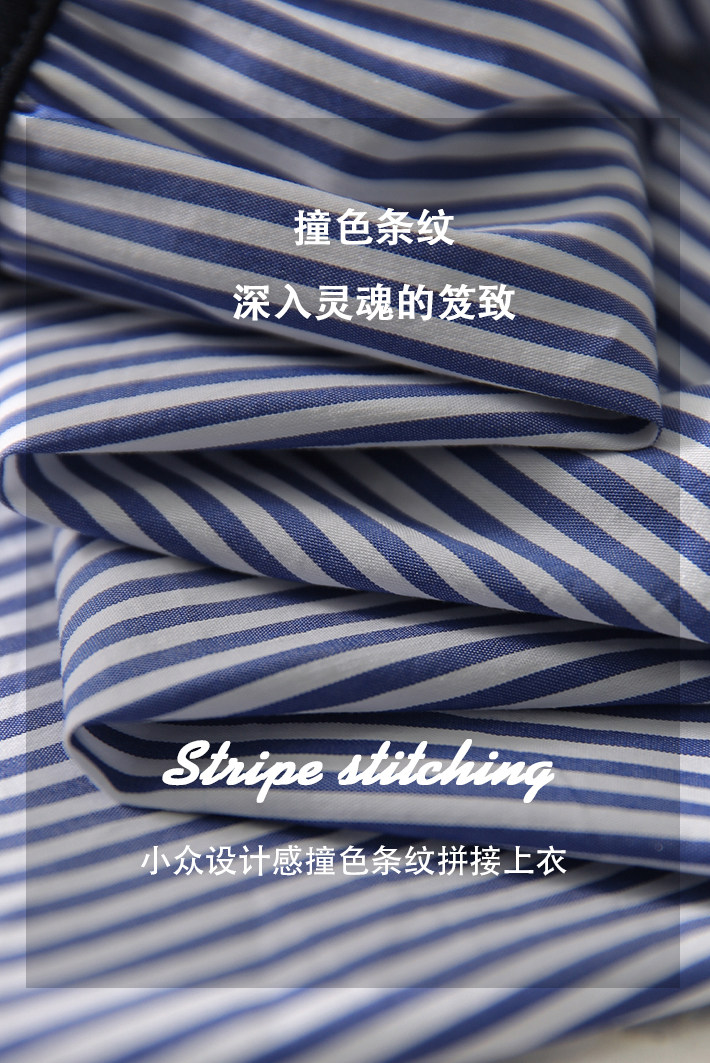 [XYC484350AG] Отказ от тусклого ~ нишевого дизайна ощущение цвета полосатой полосатой шва в рукаве