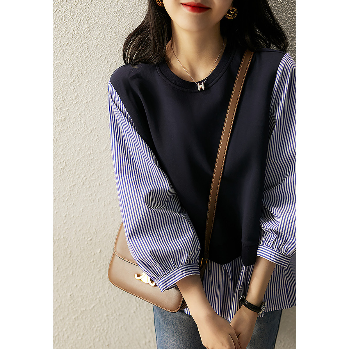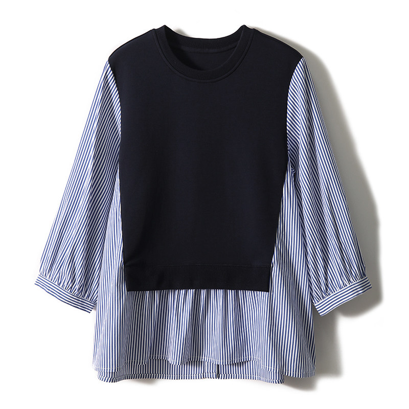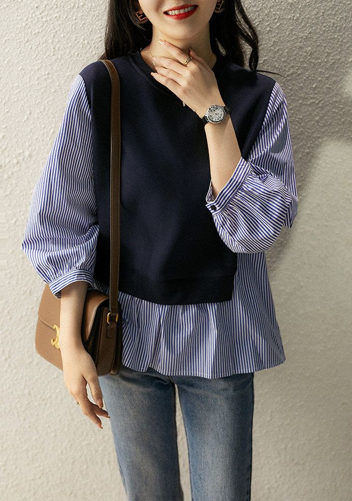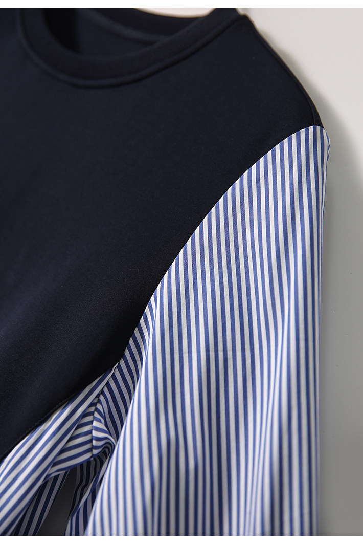 [XYC484350AG] Отказ от тусклого ~ нишевого дизайна ощущение цвета полосатой полосатой шва в рукаве