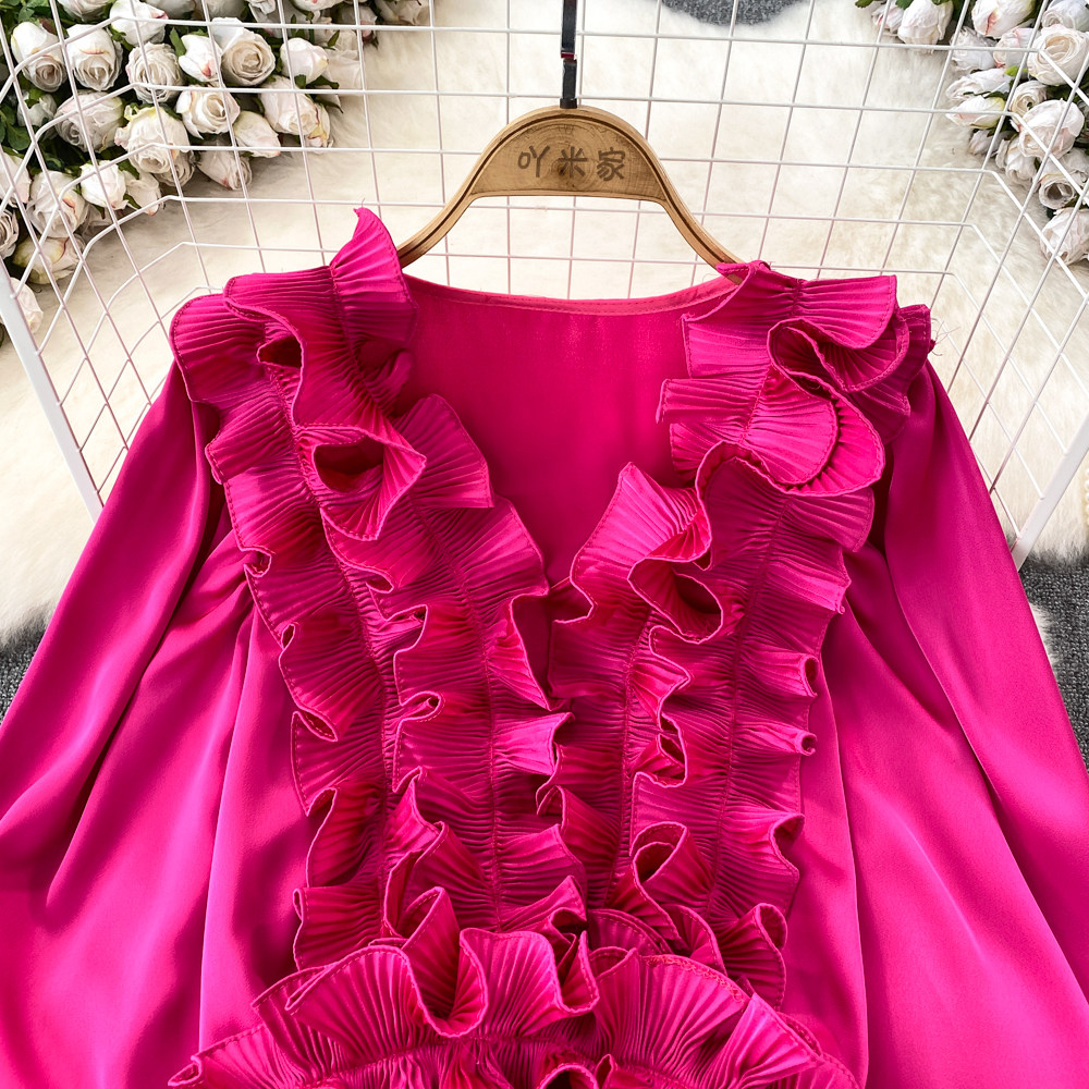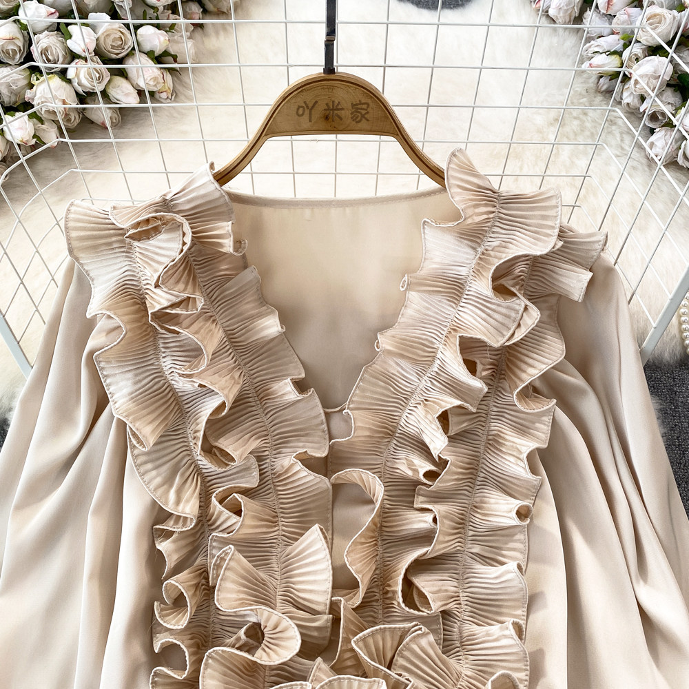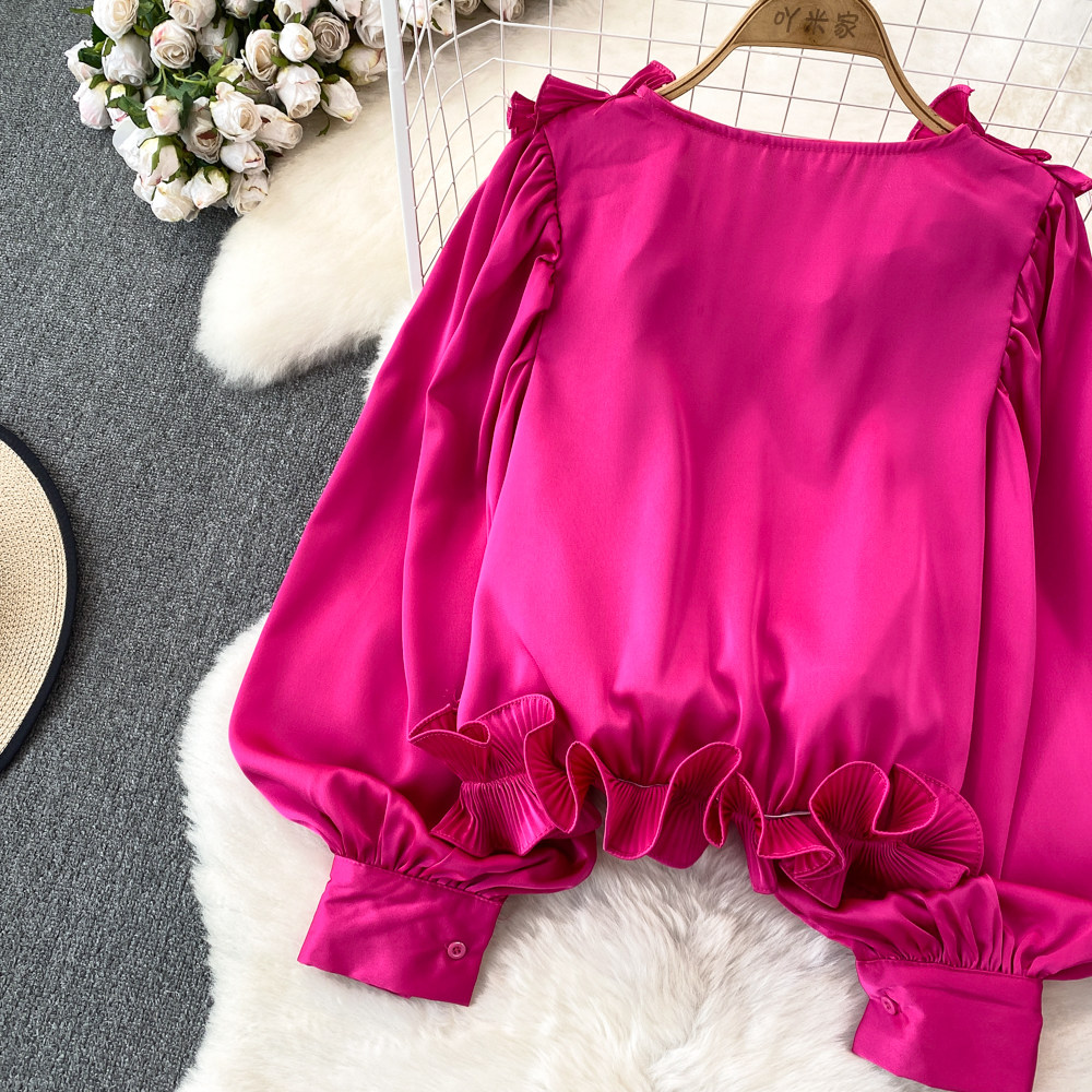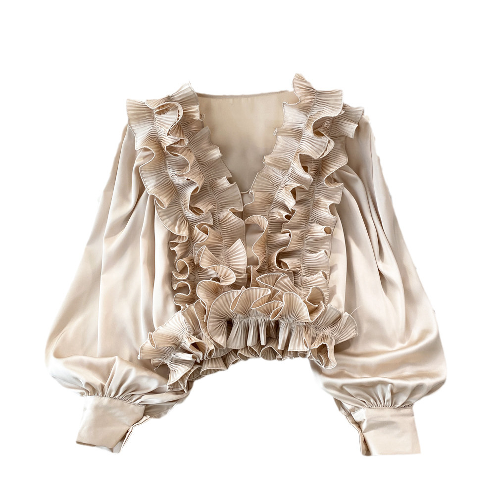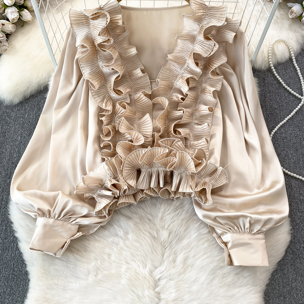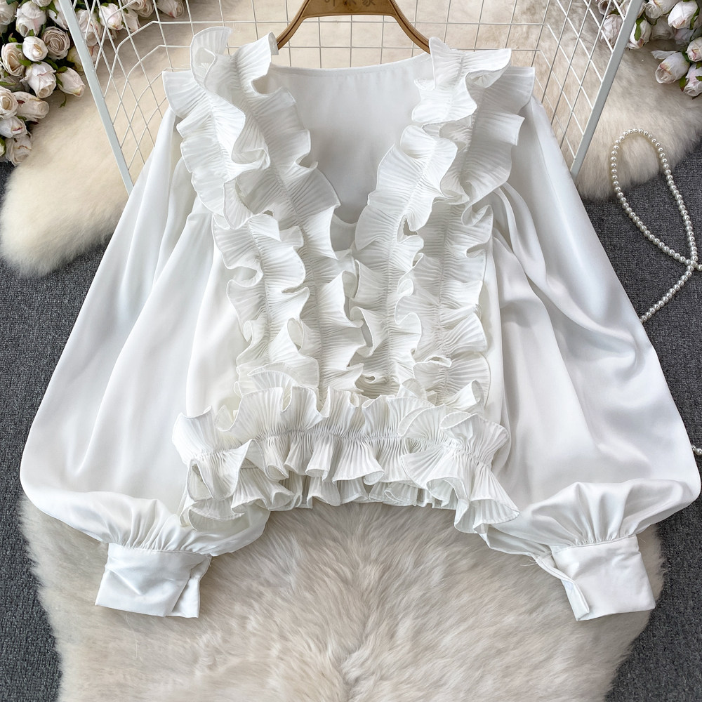 Фонарь, трехмерный лонгслив, рубашка для отдыха, в цветочек, V-образный вырез, свободный крой