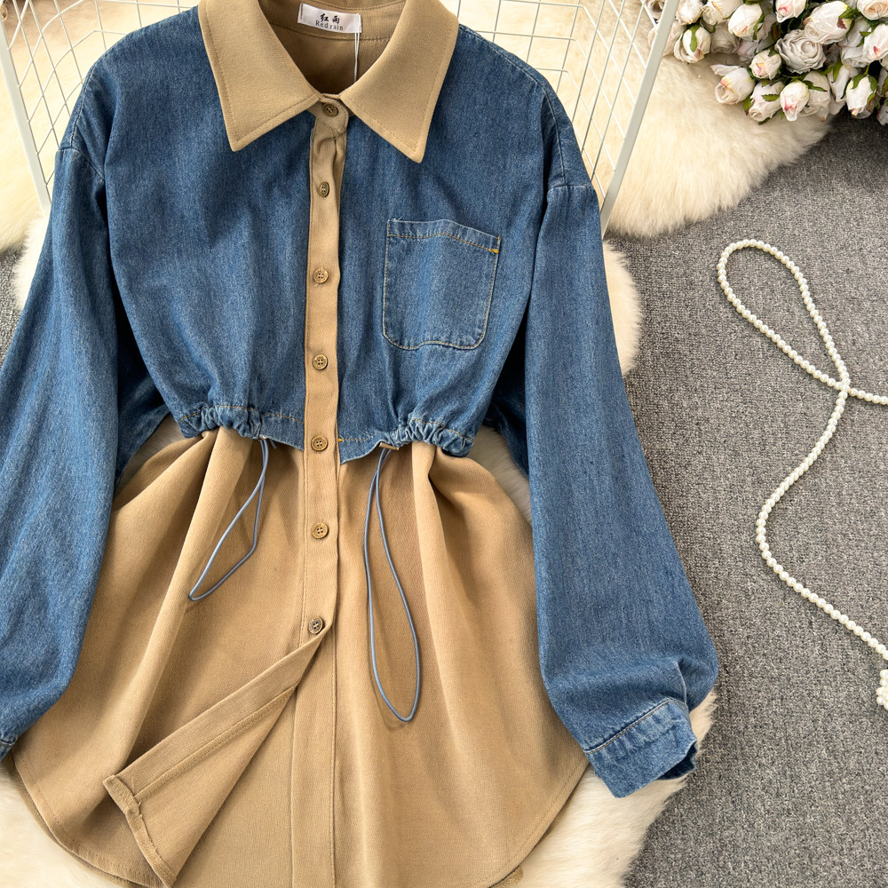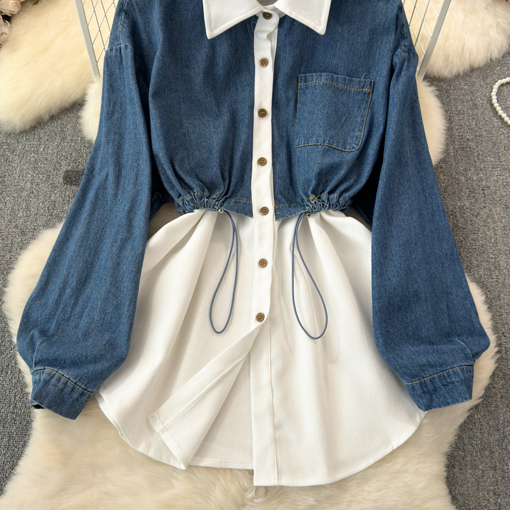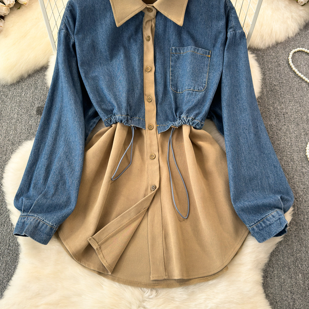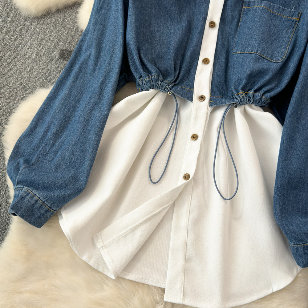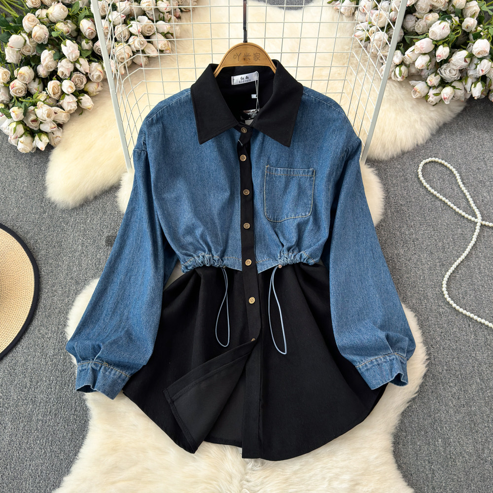 Комплект, джинсовый лонгслив, приталенный корсет, рубашка для отдыха, в корейском стиле, в западном стиле