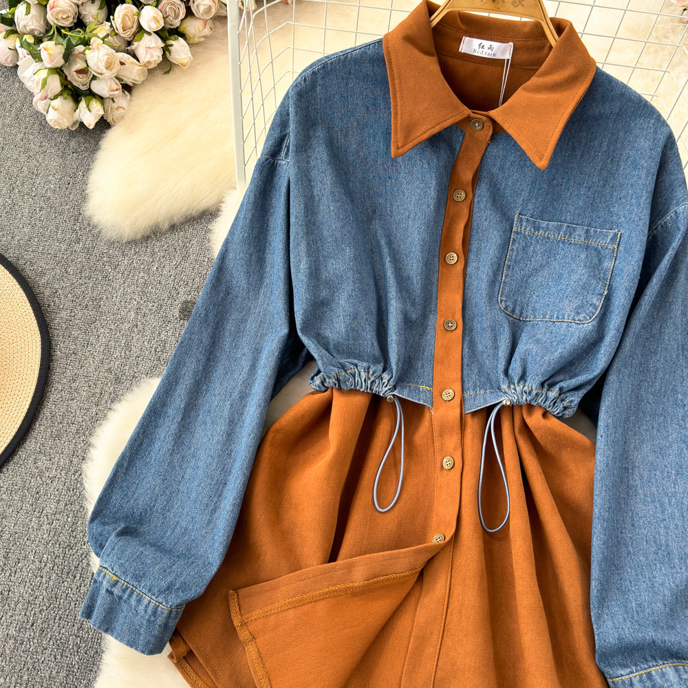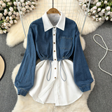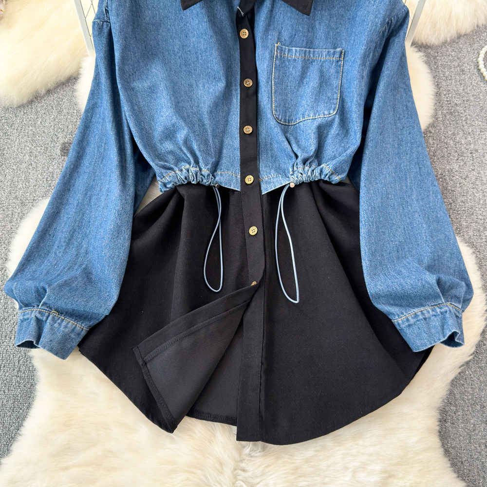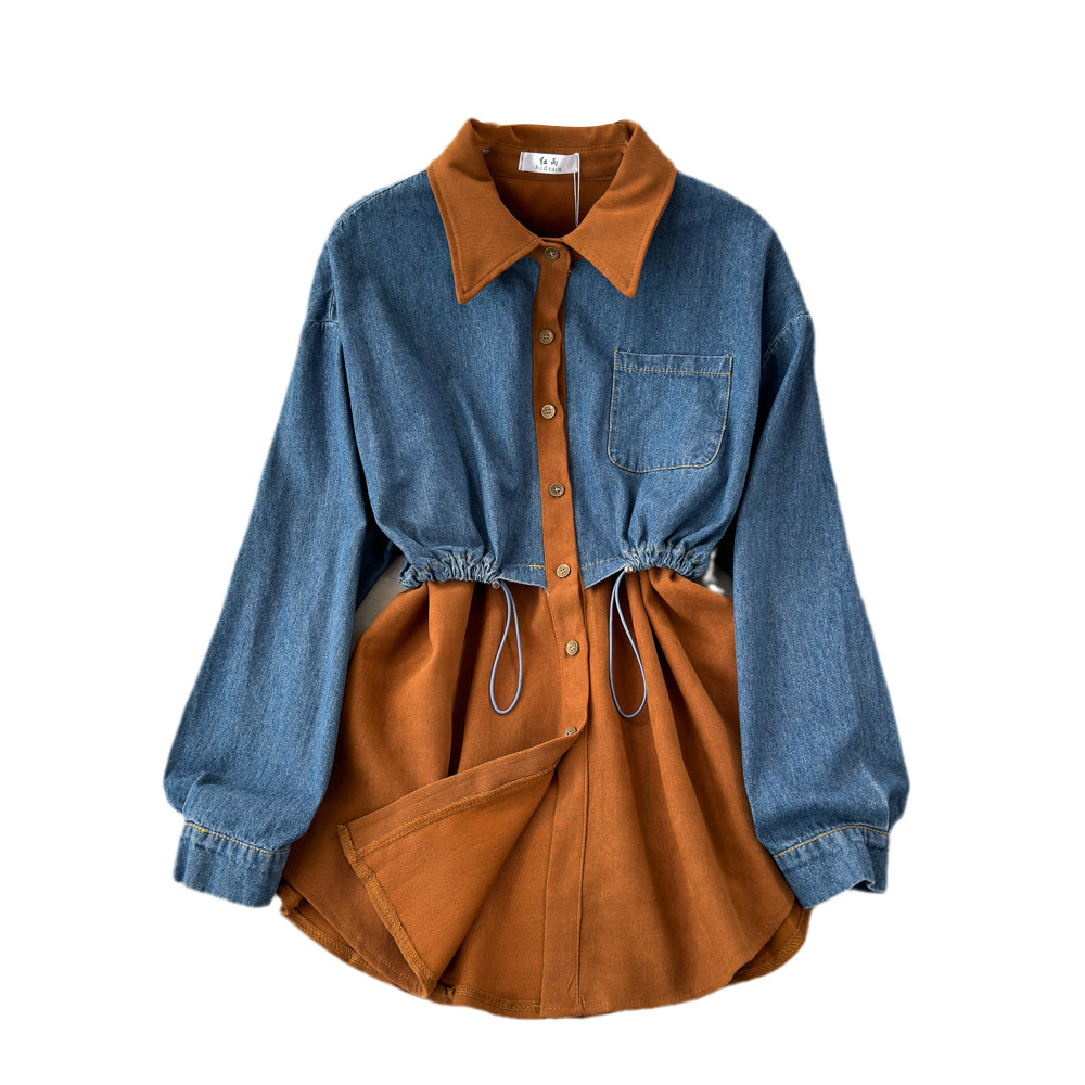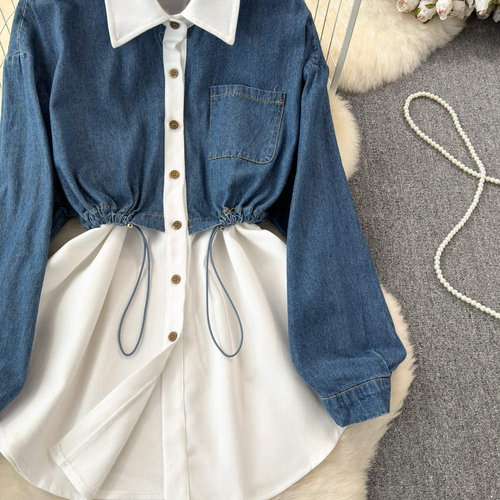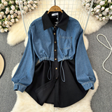 Комплект, джинсовый лонгслив, приталенный корсет, рубашка для отдыха, в корейском стиле, в западном стиле