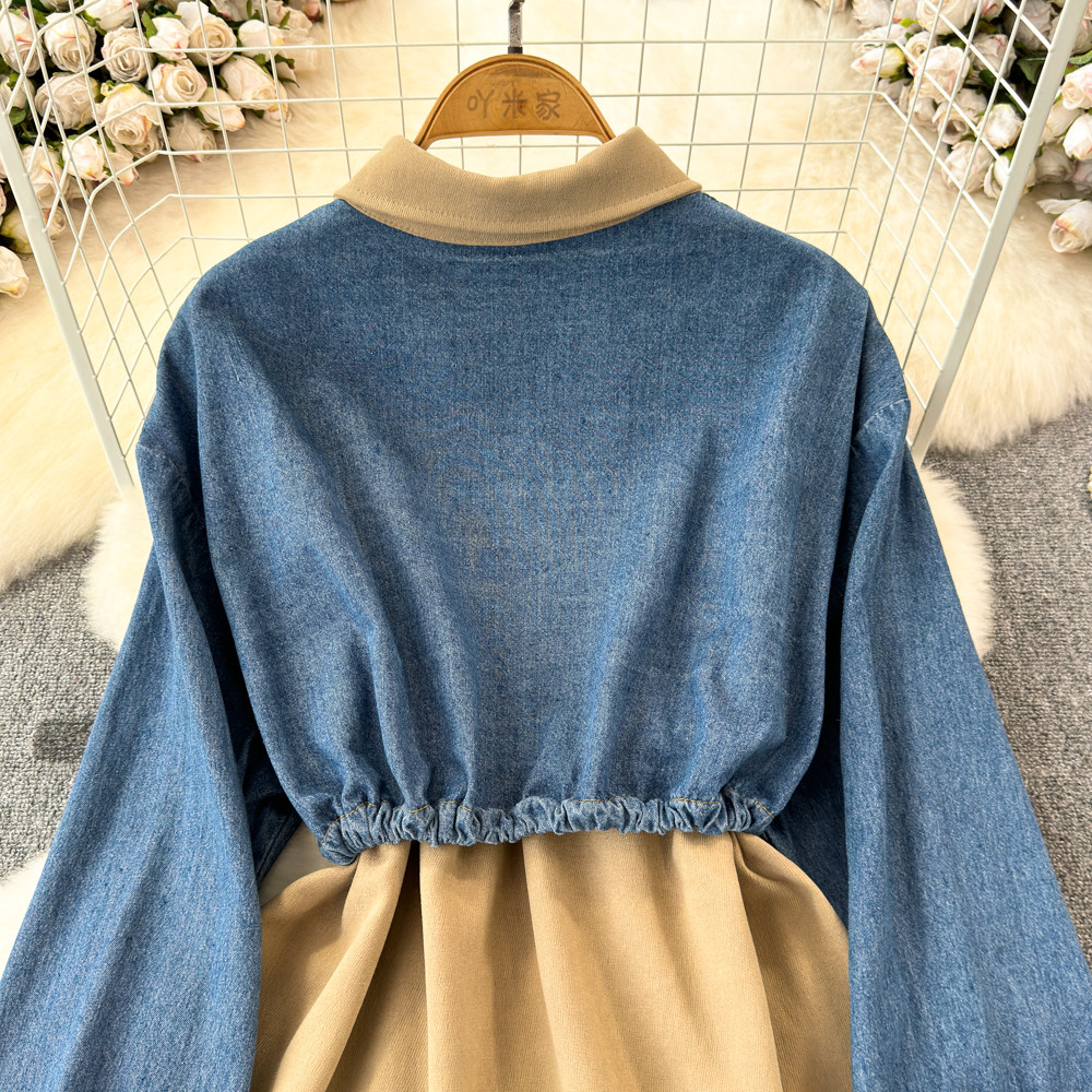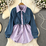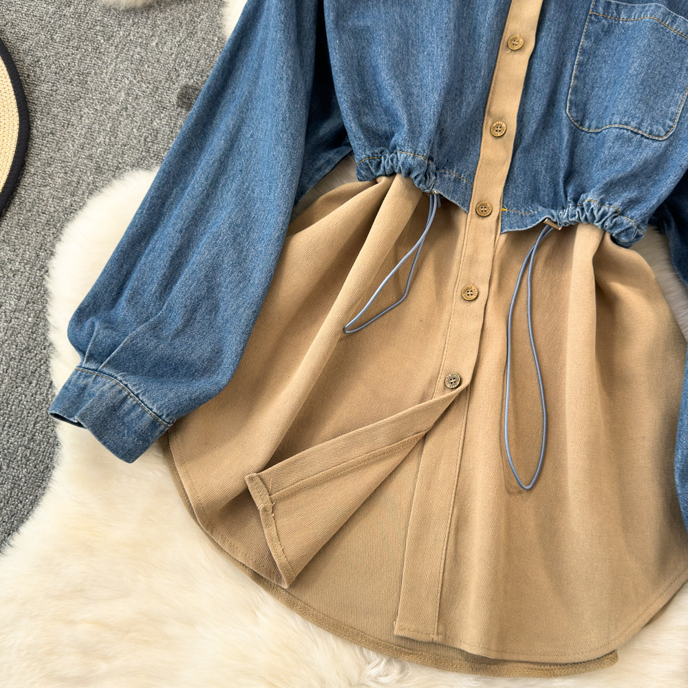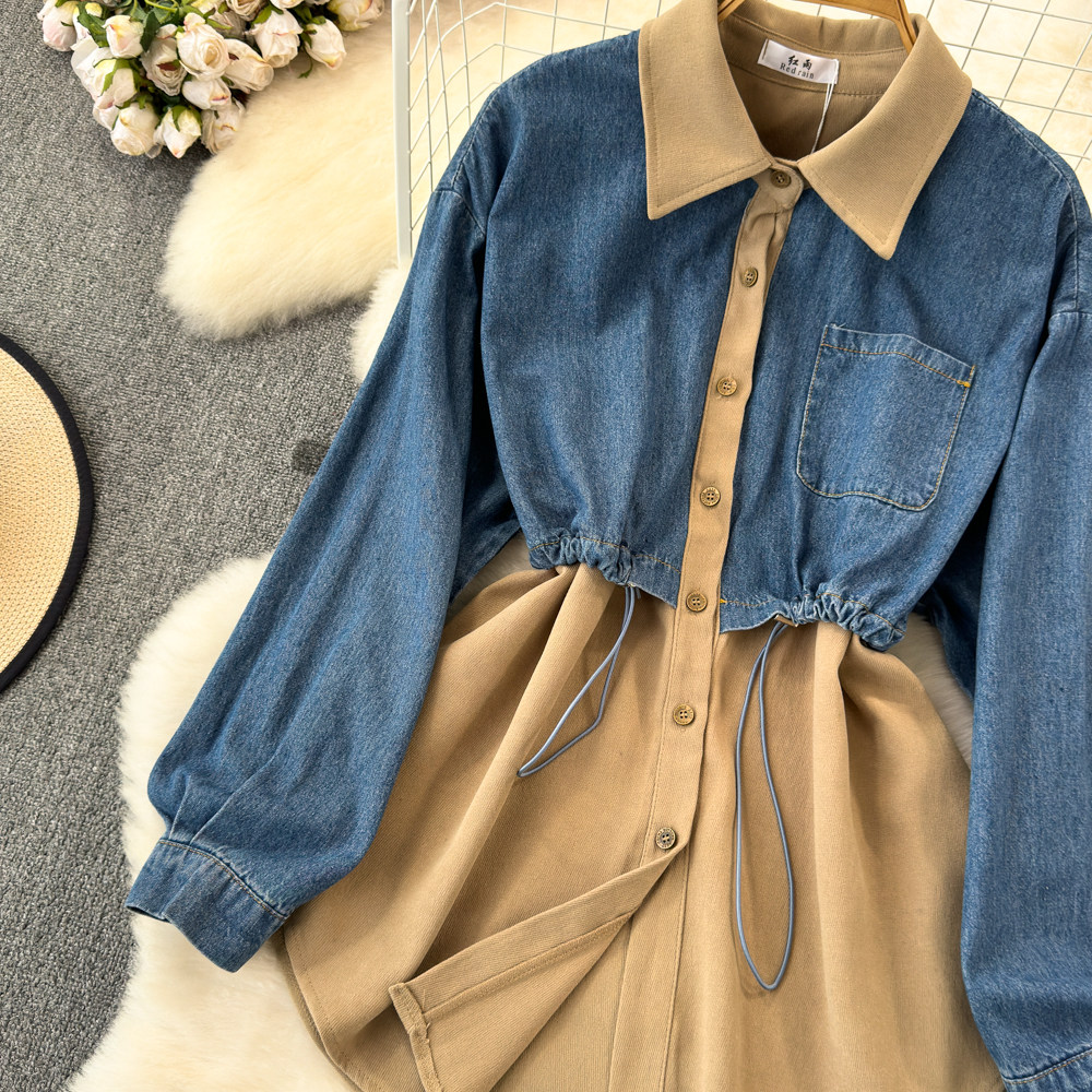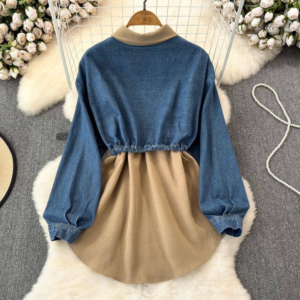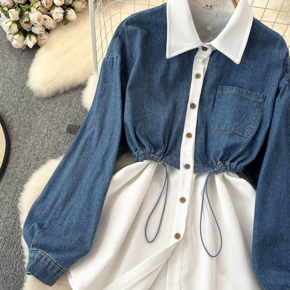 Комплект, джинсовый лонгслив, приталенный корсет, рубашка для отдыха, в корейском стиле, в западном стиле