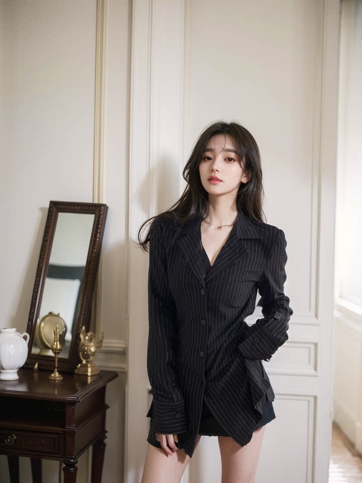 Черная осенняя рубашка, приталенный длинный корсет, городской стиль, облегающий крой, средней длины