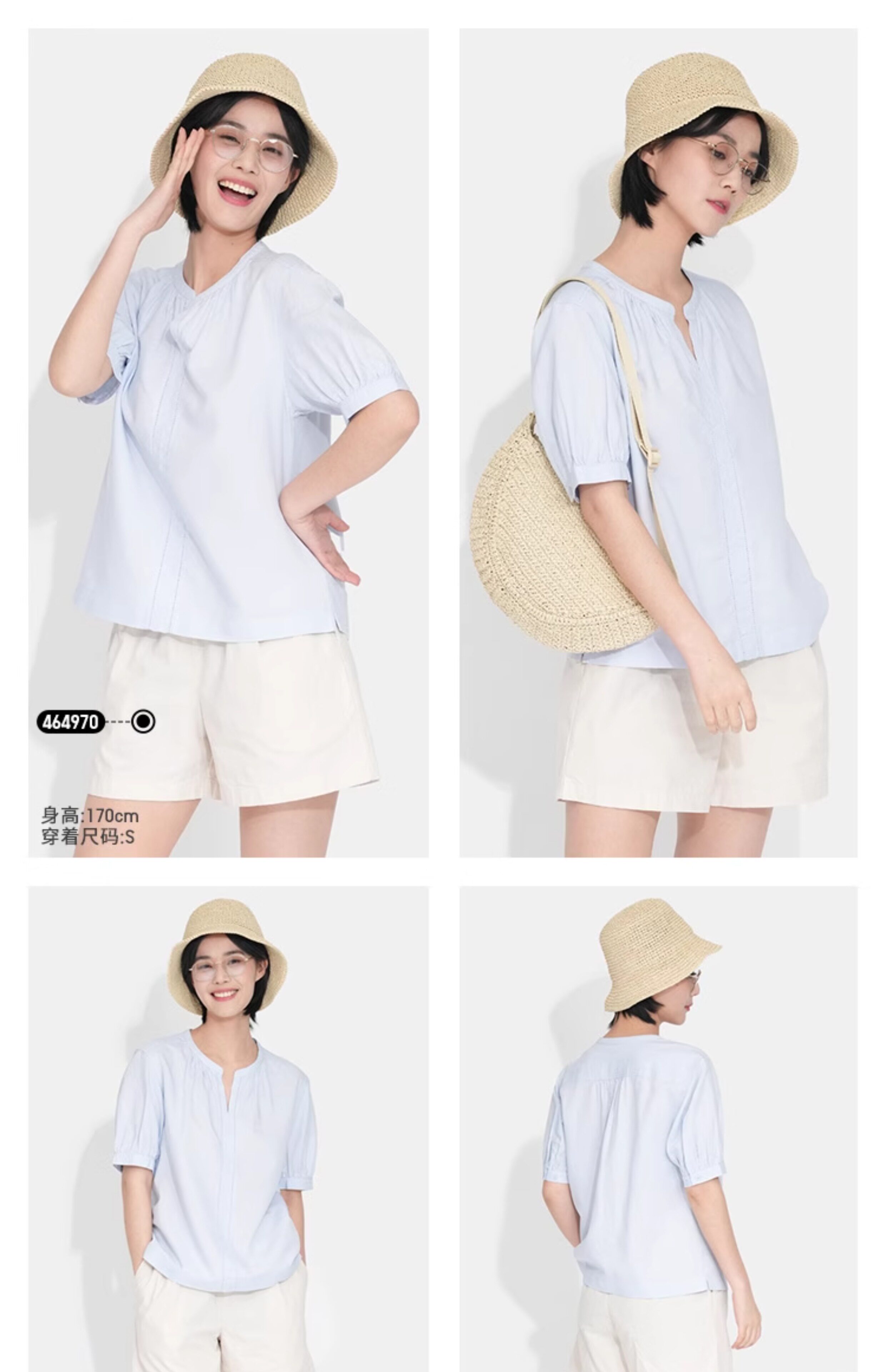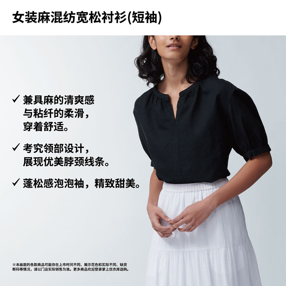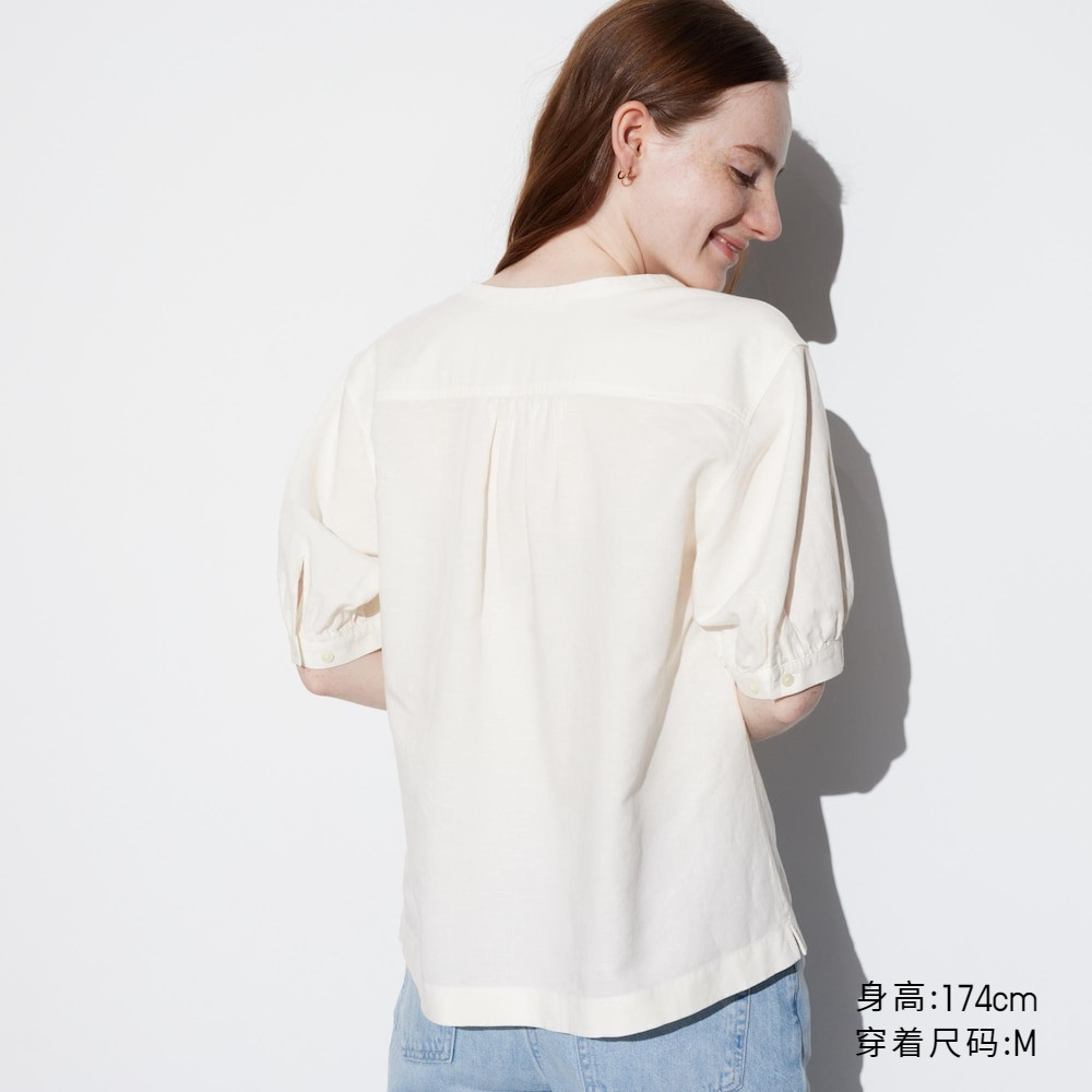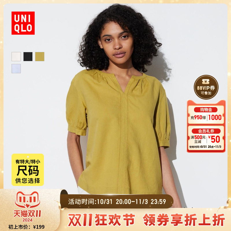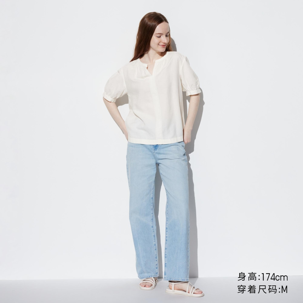 Uniqlo, милая рубашка, свободный крой, короткий рукав, рукава фонарики