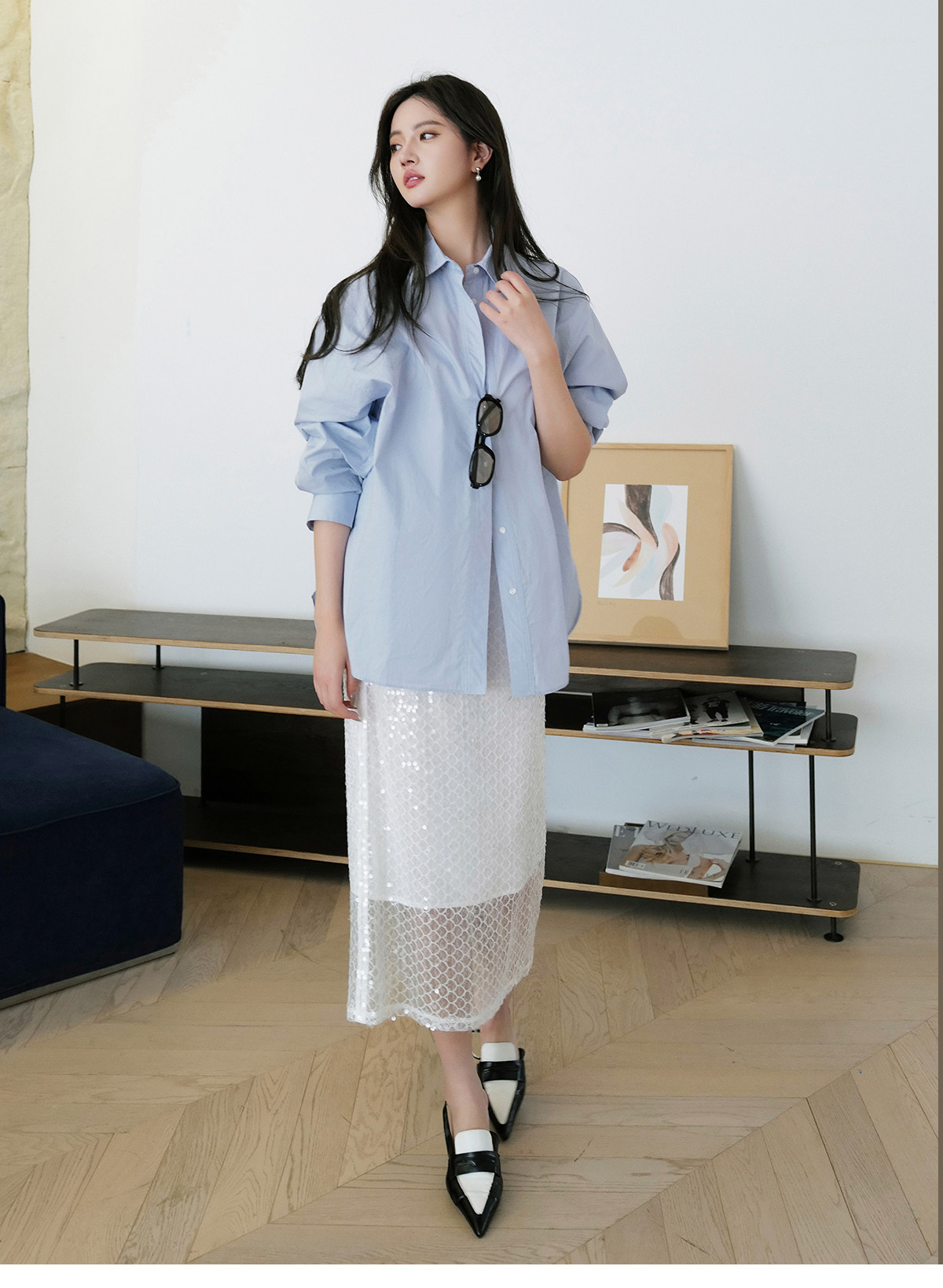 Wana Try [Sun Qian Tong Tong] Минимализированная рубашка для капли 2024 Ранняя весна женская рубашка с свободной топ