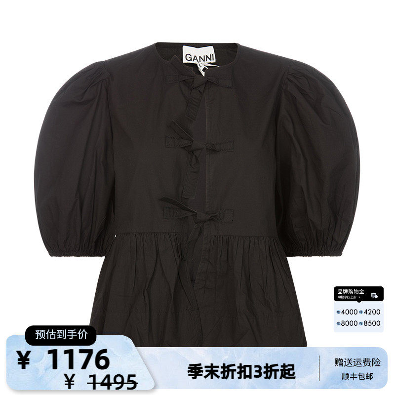 GANNI Летняя черная милая кукла, рукава фонарики