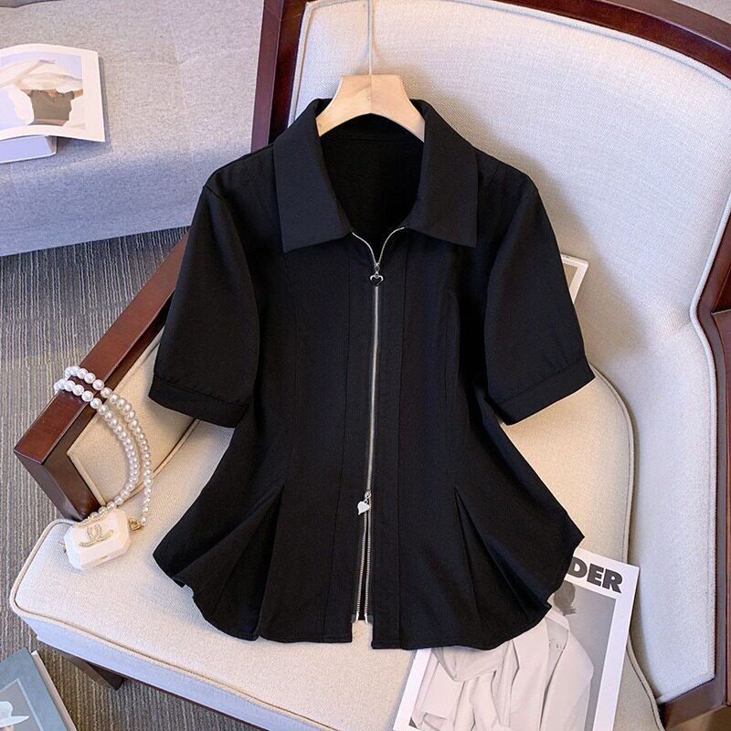 Летняя футболка с молнией, корсет, большой размер, квадратный вырез, короткий рукав, изысканный стиль, яркий броский стиль