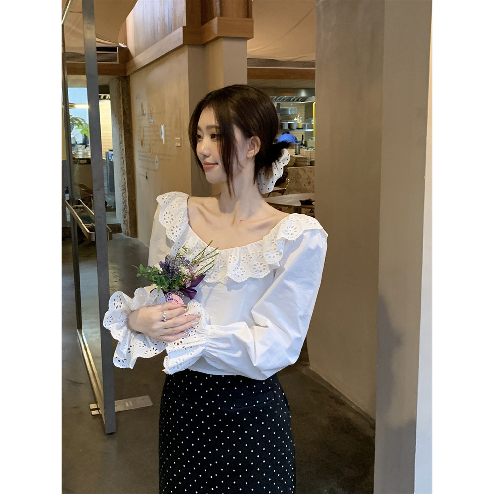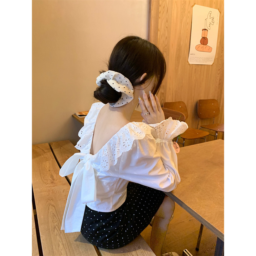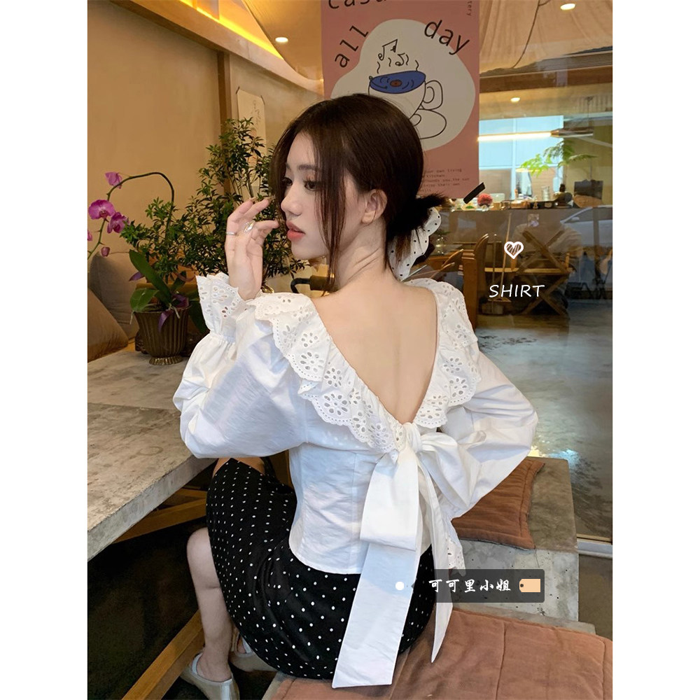 Осенняя дизайнерская короткая рубашка с бантиком, французский стиль, с открытой спиной, тренд сезона