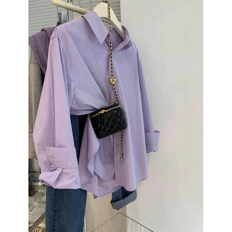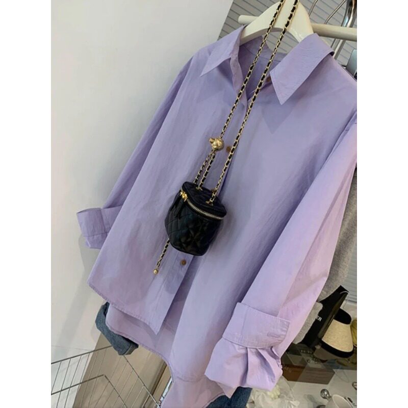 Сиреневая летняя рубашка, дизайнерская куртка, французский стиль, из хлопка и льна, защита от солнца, тренд сезона