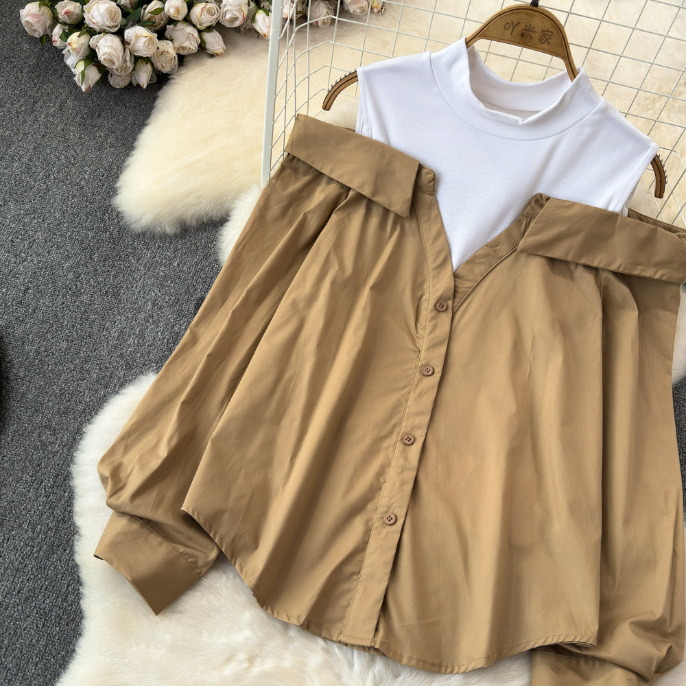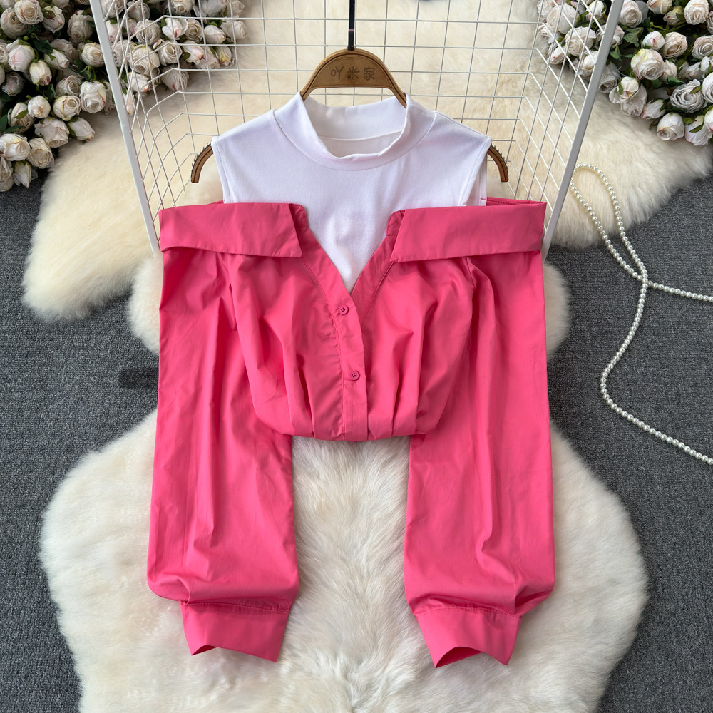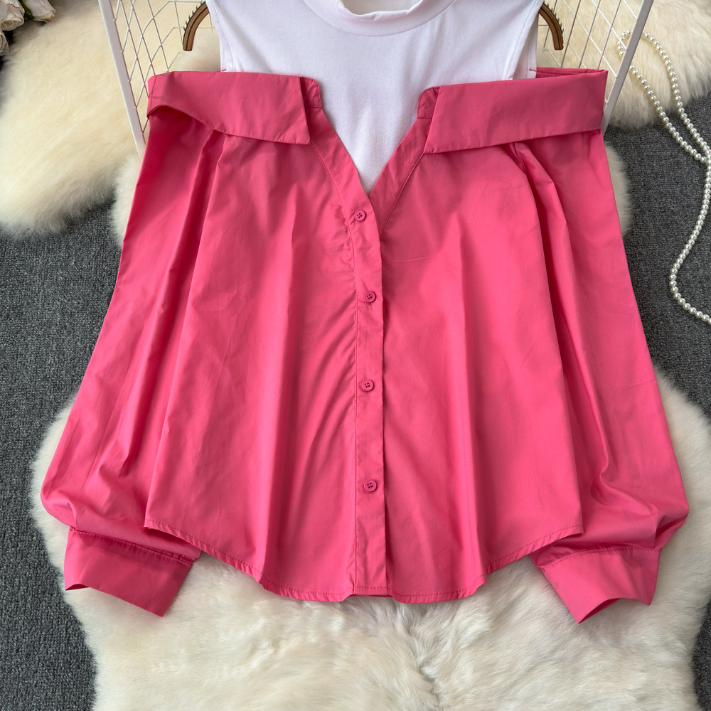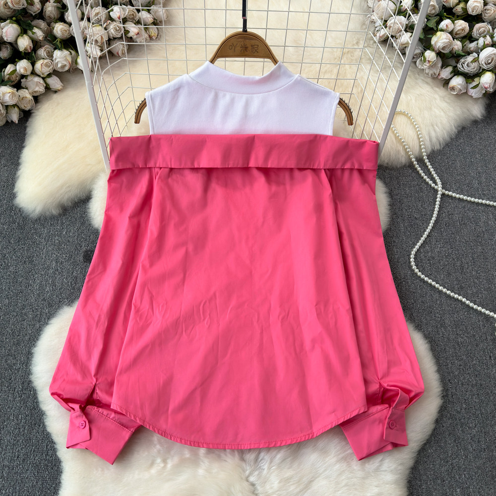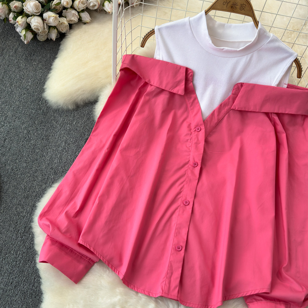 Комплект, весенняя рубашка, весенний дизайнерский длинный лонгслив, тренд сезона, с рукавом, свободный крой