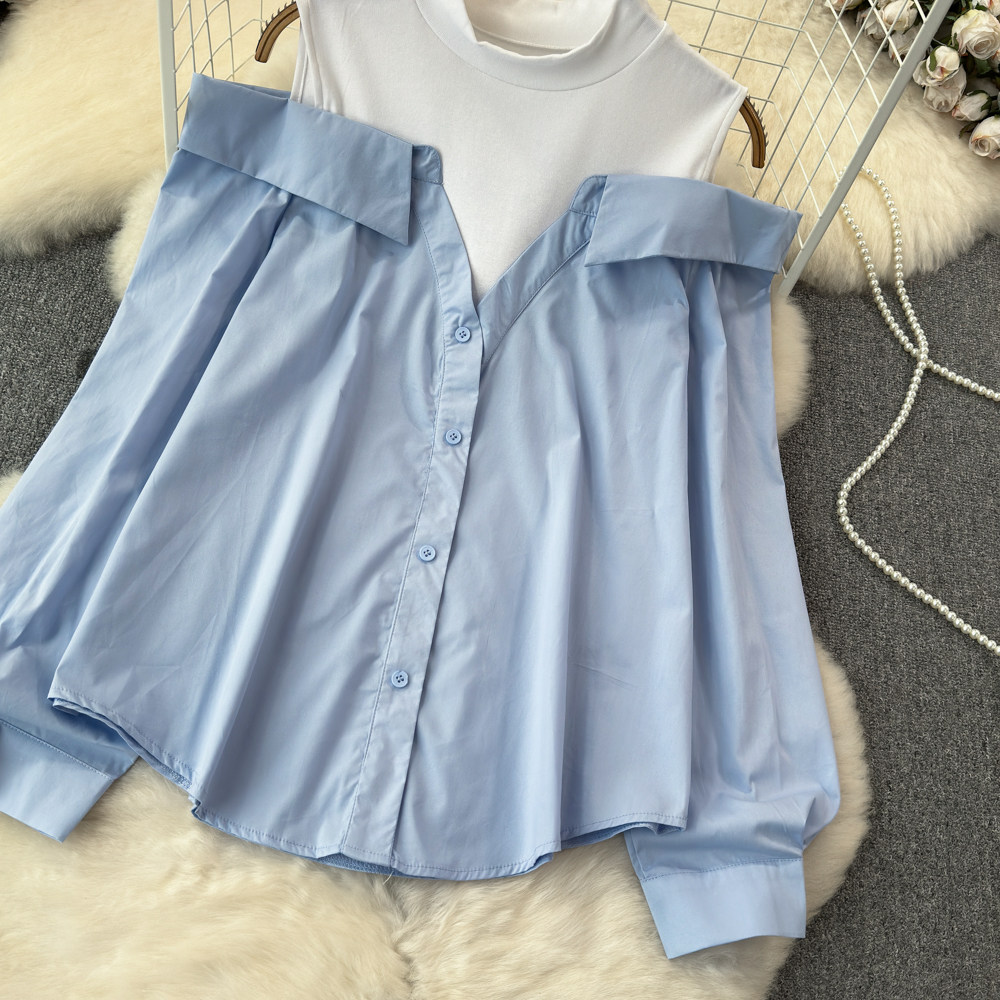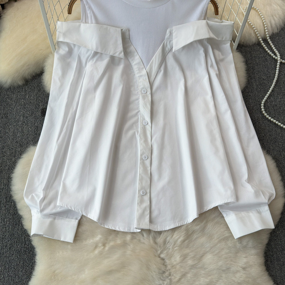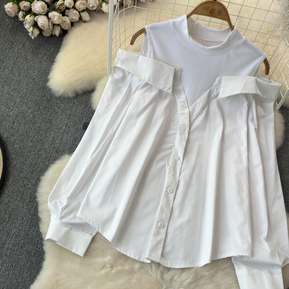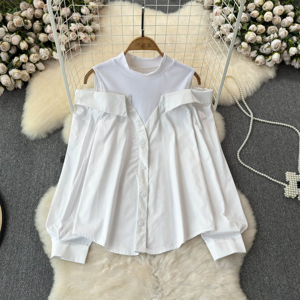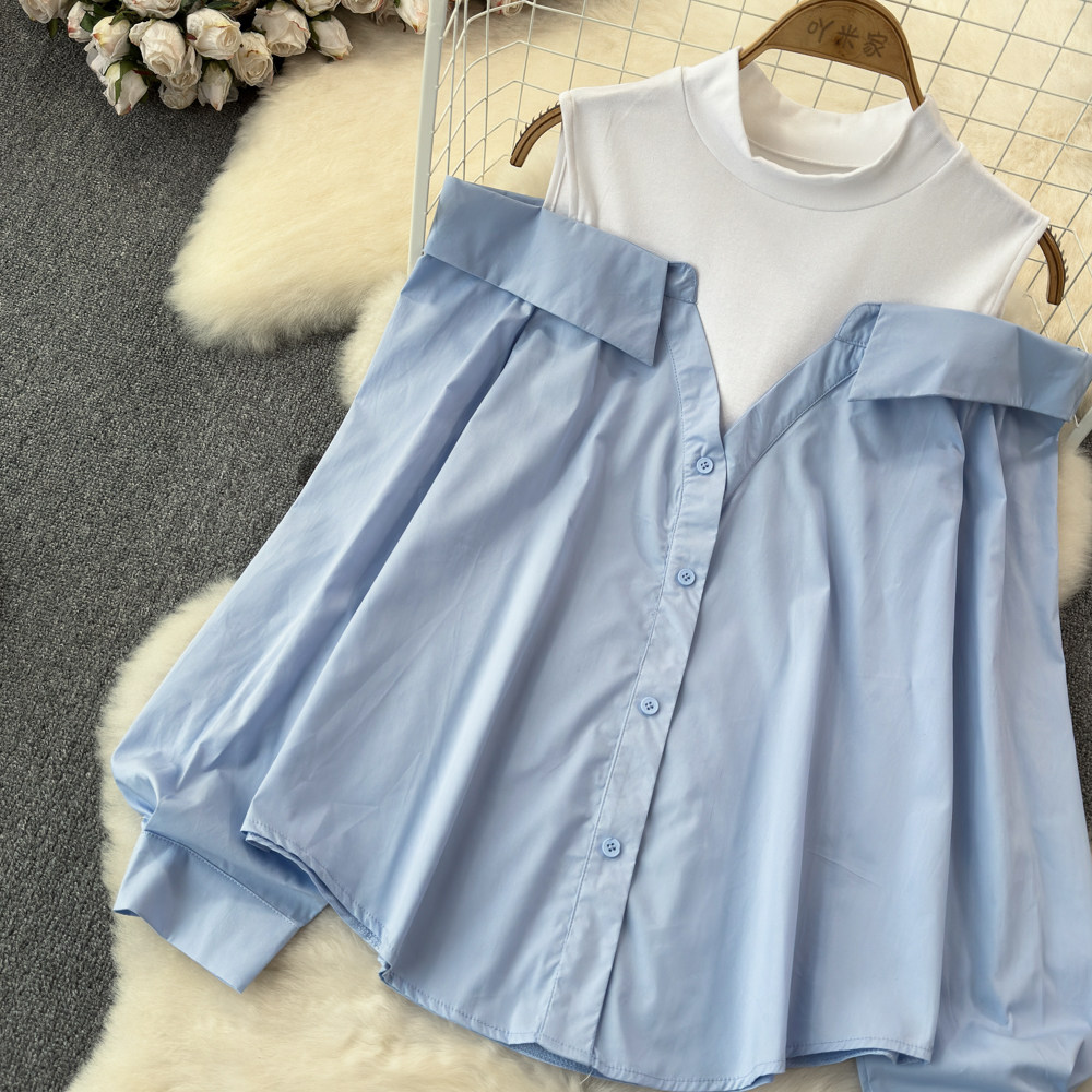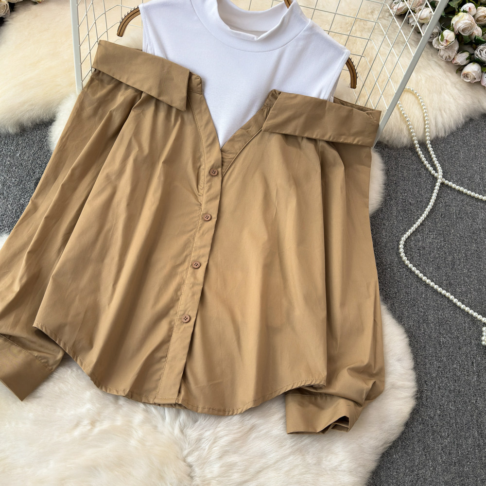 Комплект, весенняя рубашка, весенний дизайнерский длинный лонгслив, тренд сезона, с рукавом, свободный крой