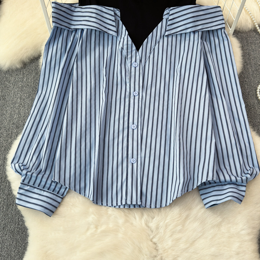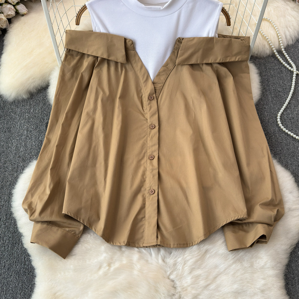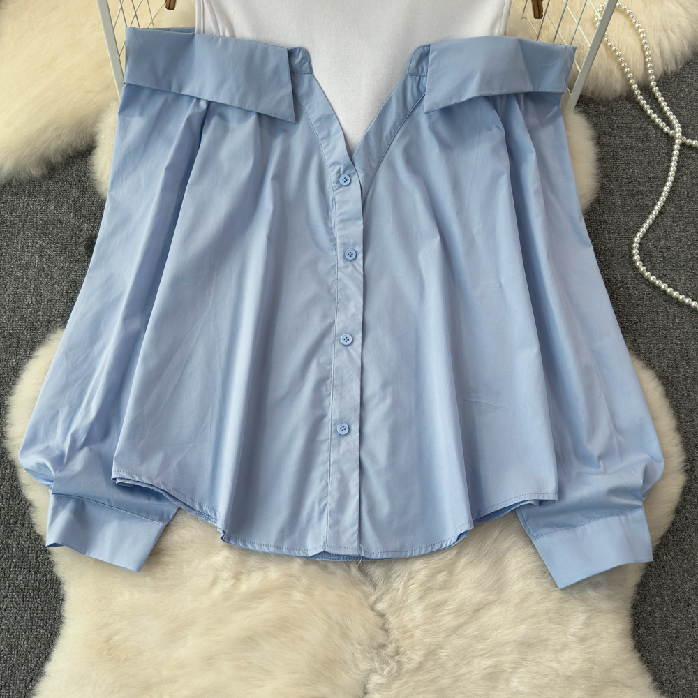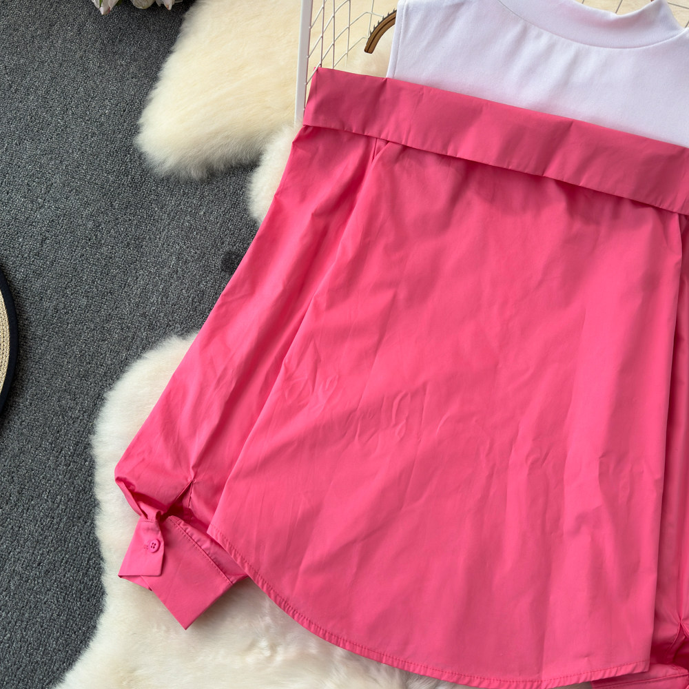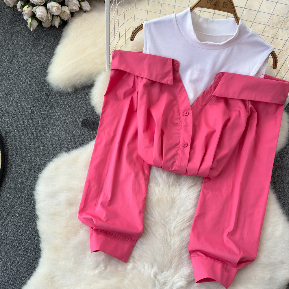 Комплект, весенняя рубашка, весенний дизайнерский длинный лонгслив, тренд сезона, с рукавом, свободный крой