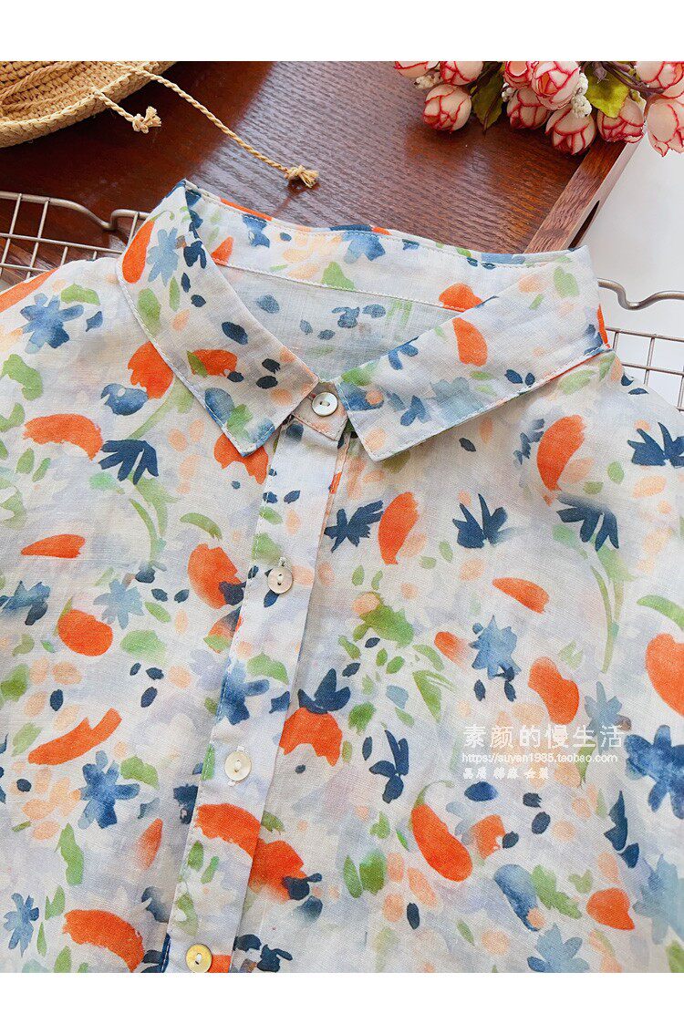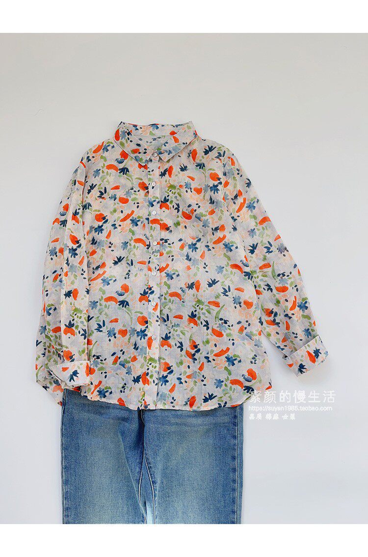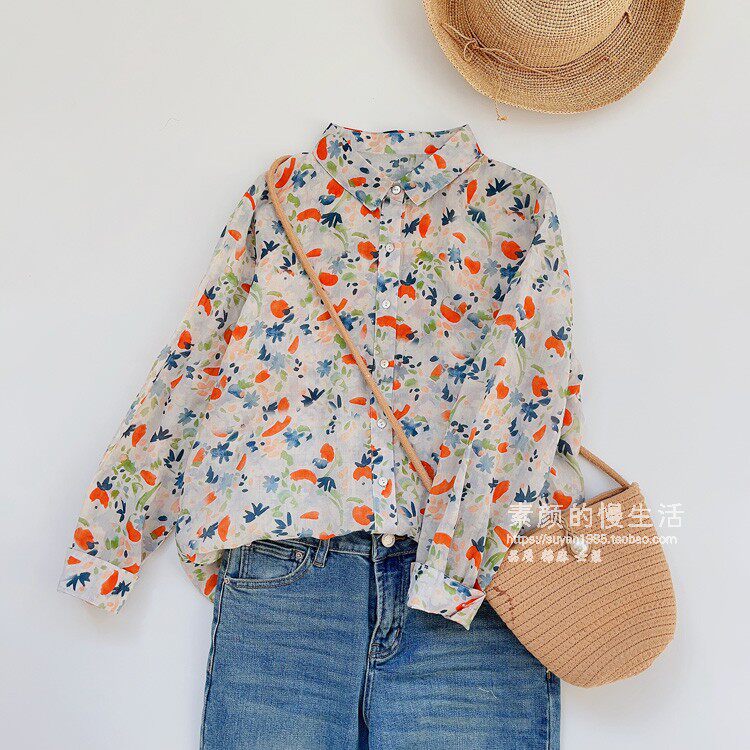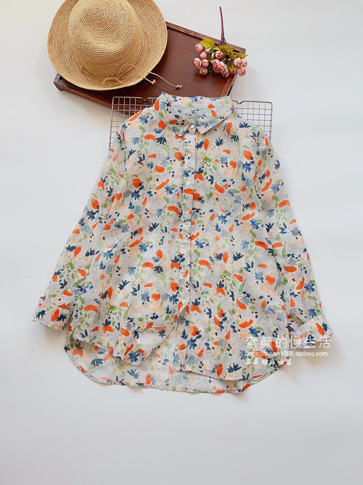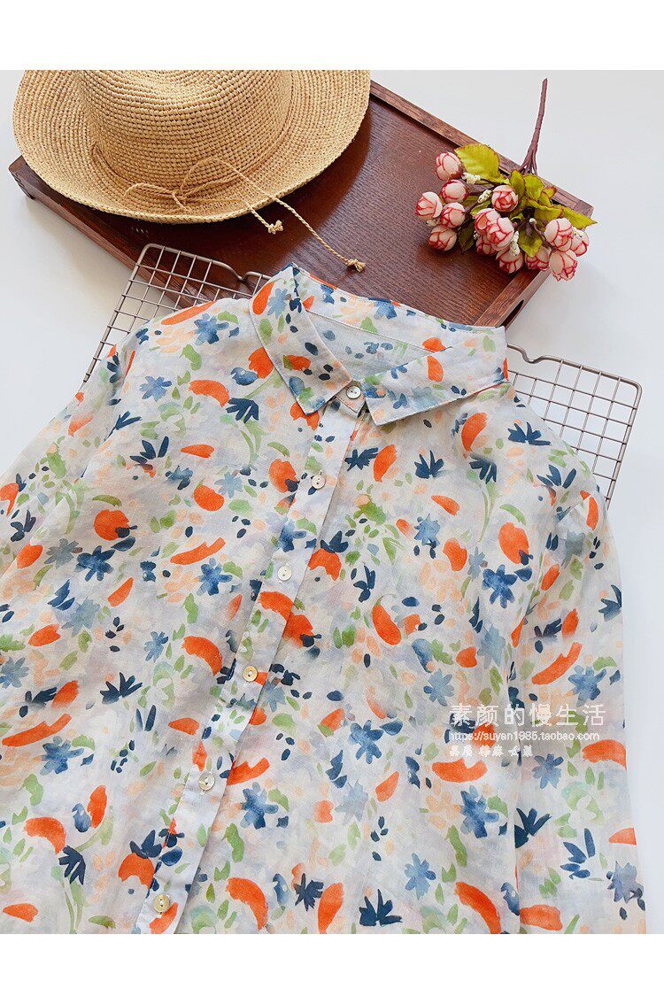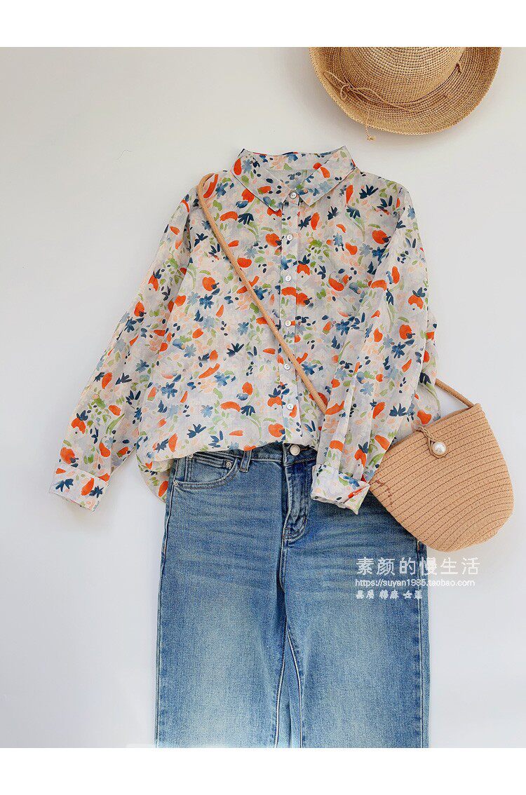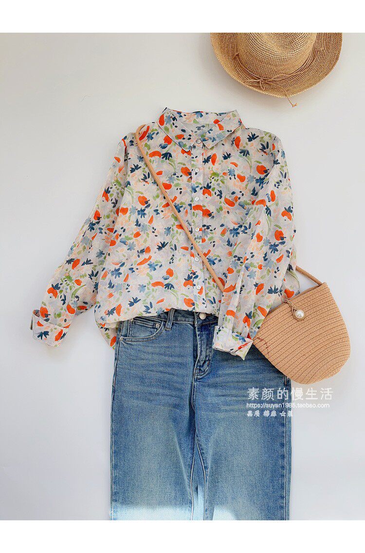(Трансграничная торговля), японская тонкая рубашка, цветочный принт, свободный крой, защита от солнца