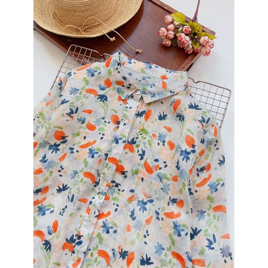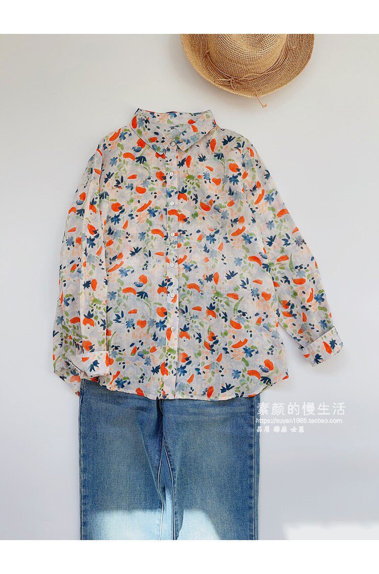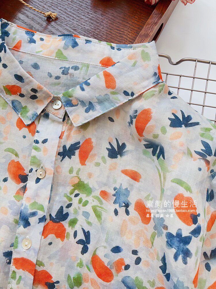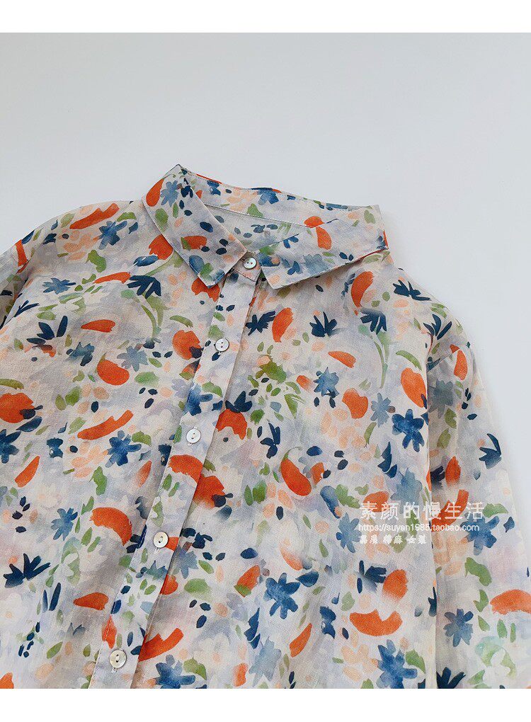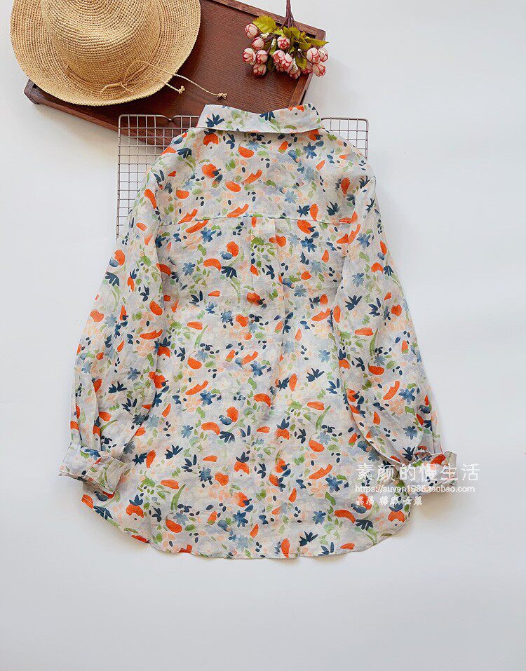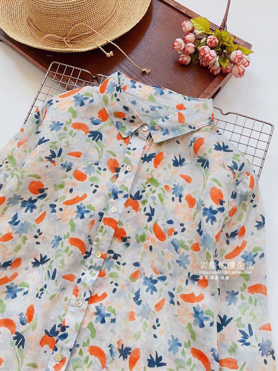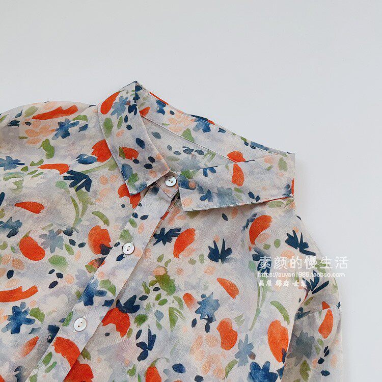 (Трансграничная торговля), японская тонкая рубашка, цветочный принт, свободный крой, защита от солнца