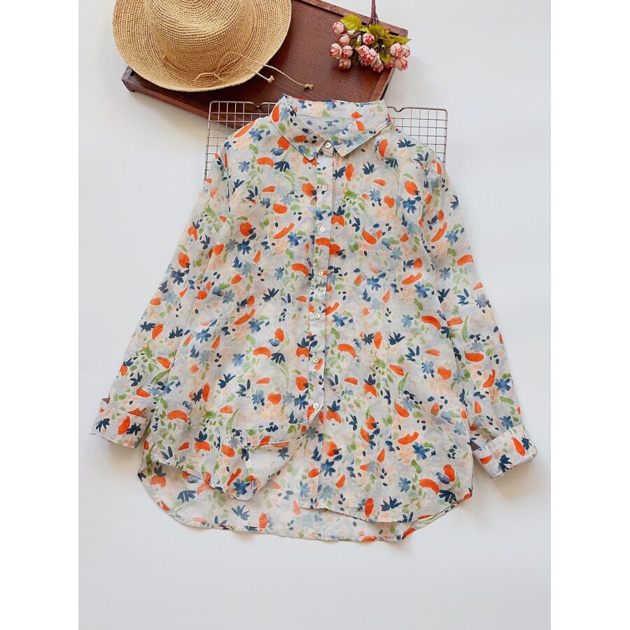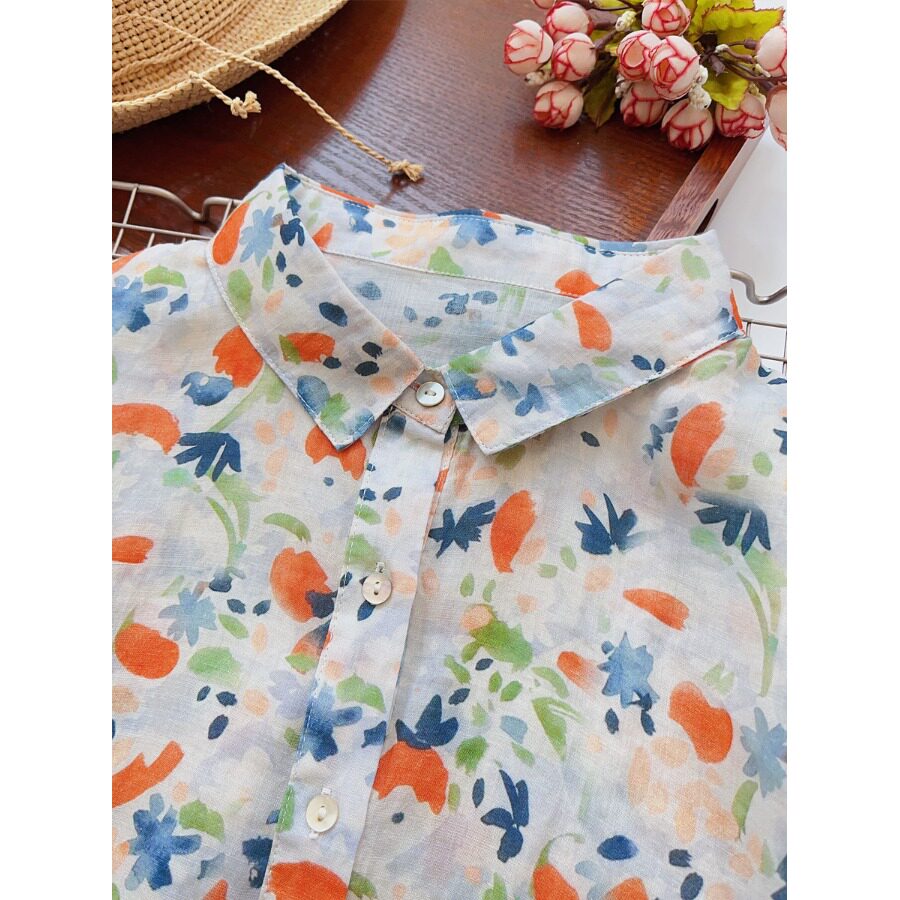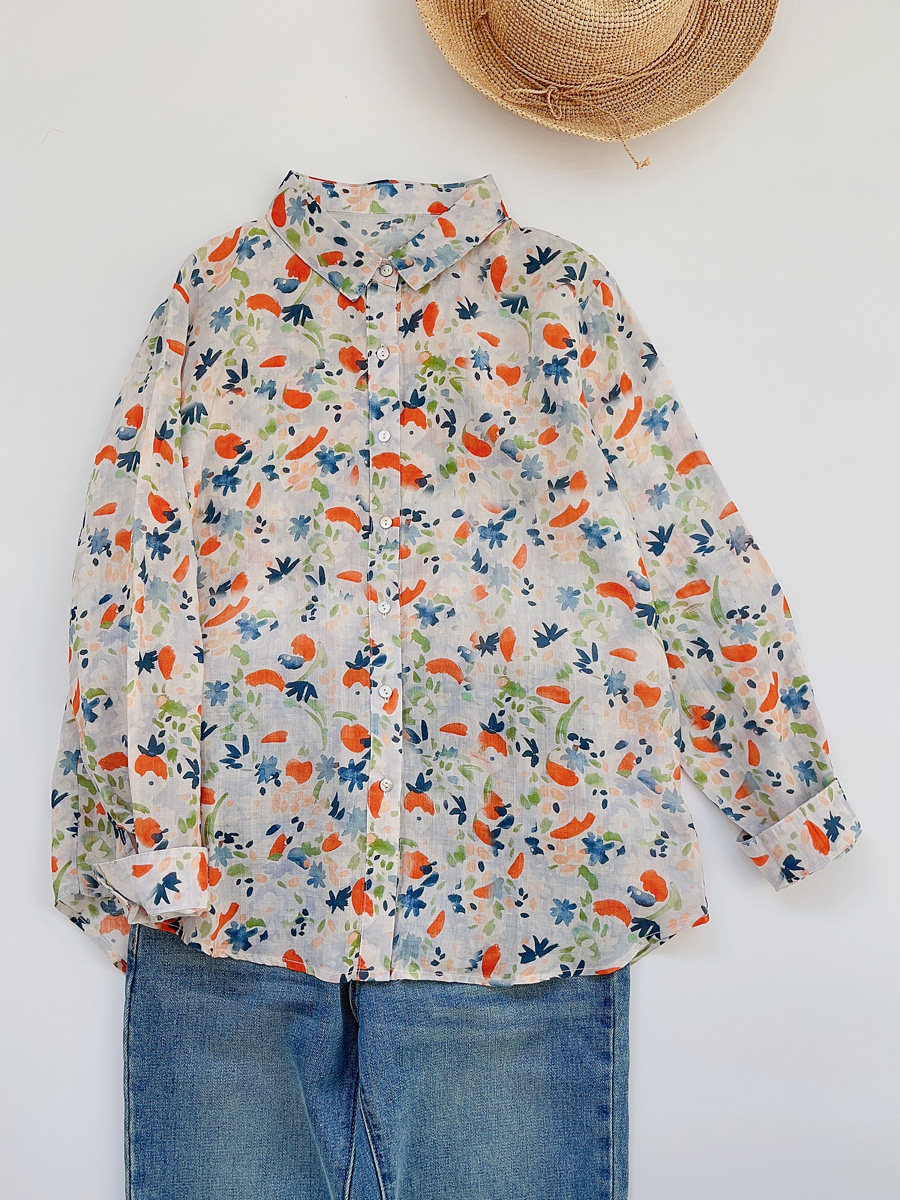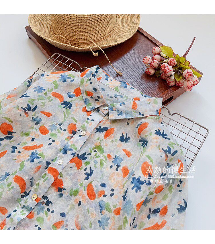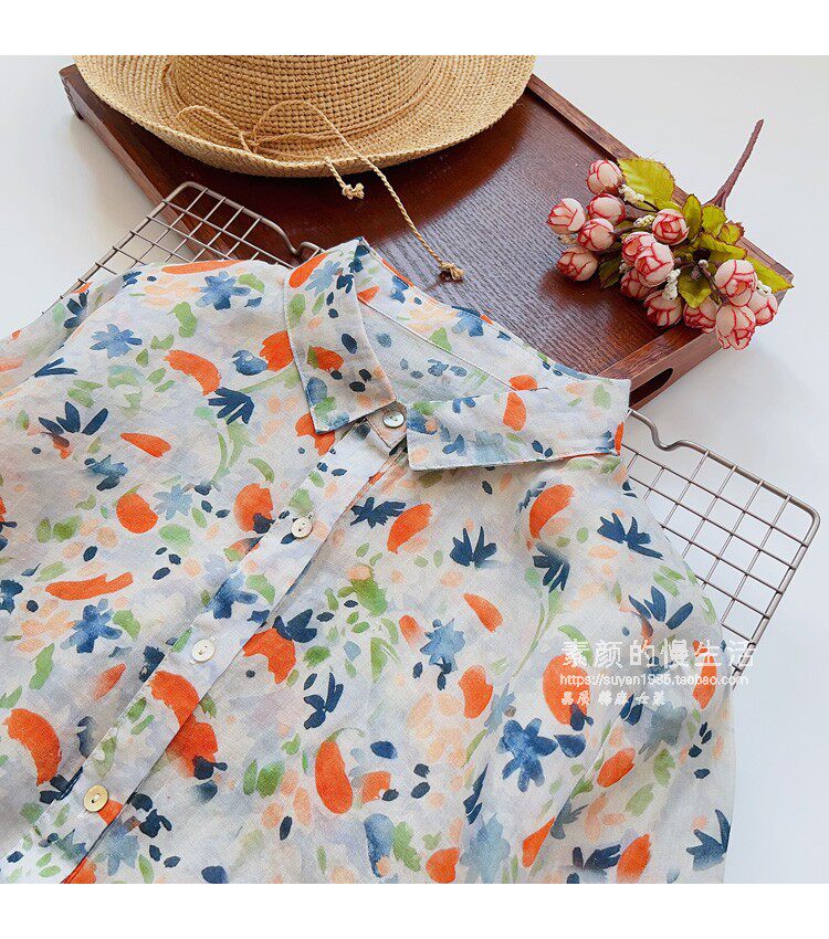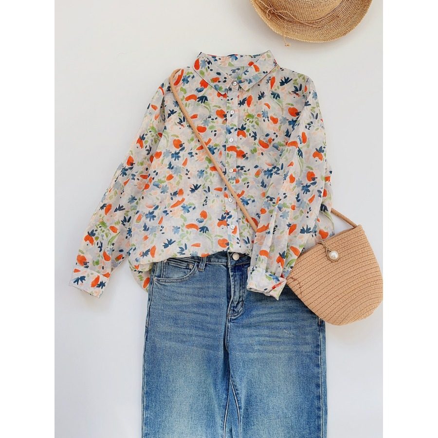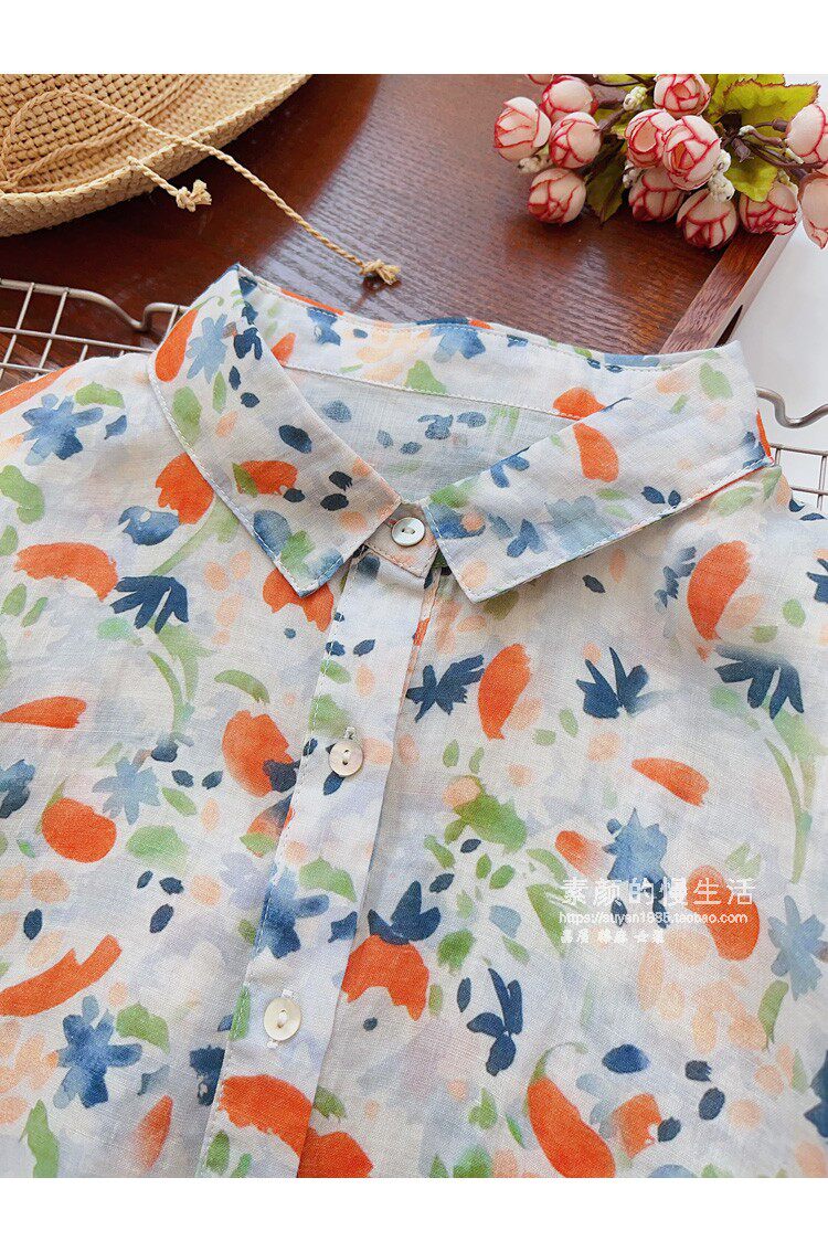 (Трансграничная торговля), японская тонкая рубашка, цветочный принт, свободный крой, защита от солнца