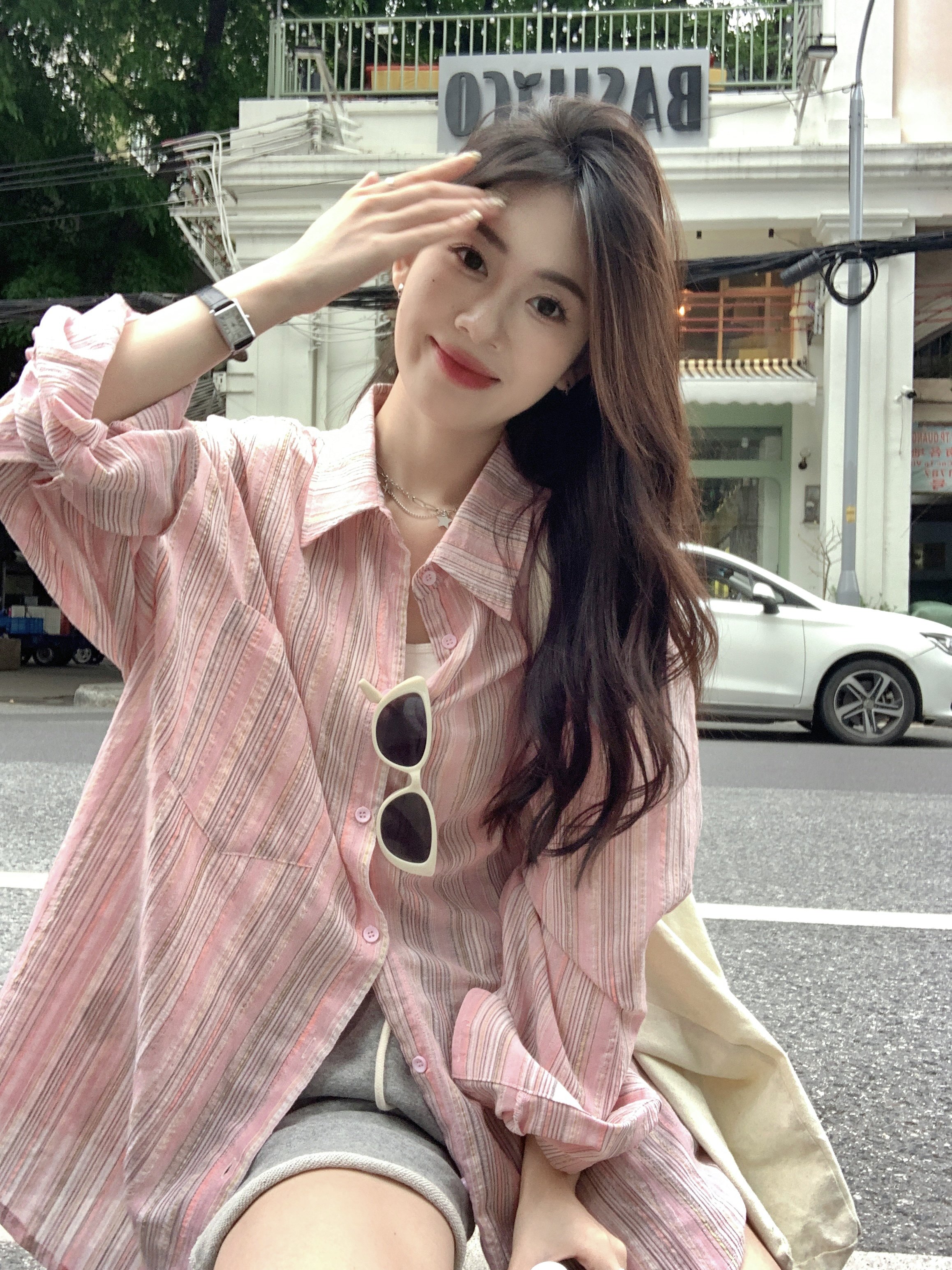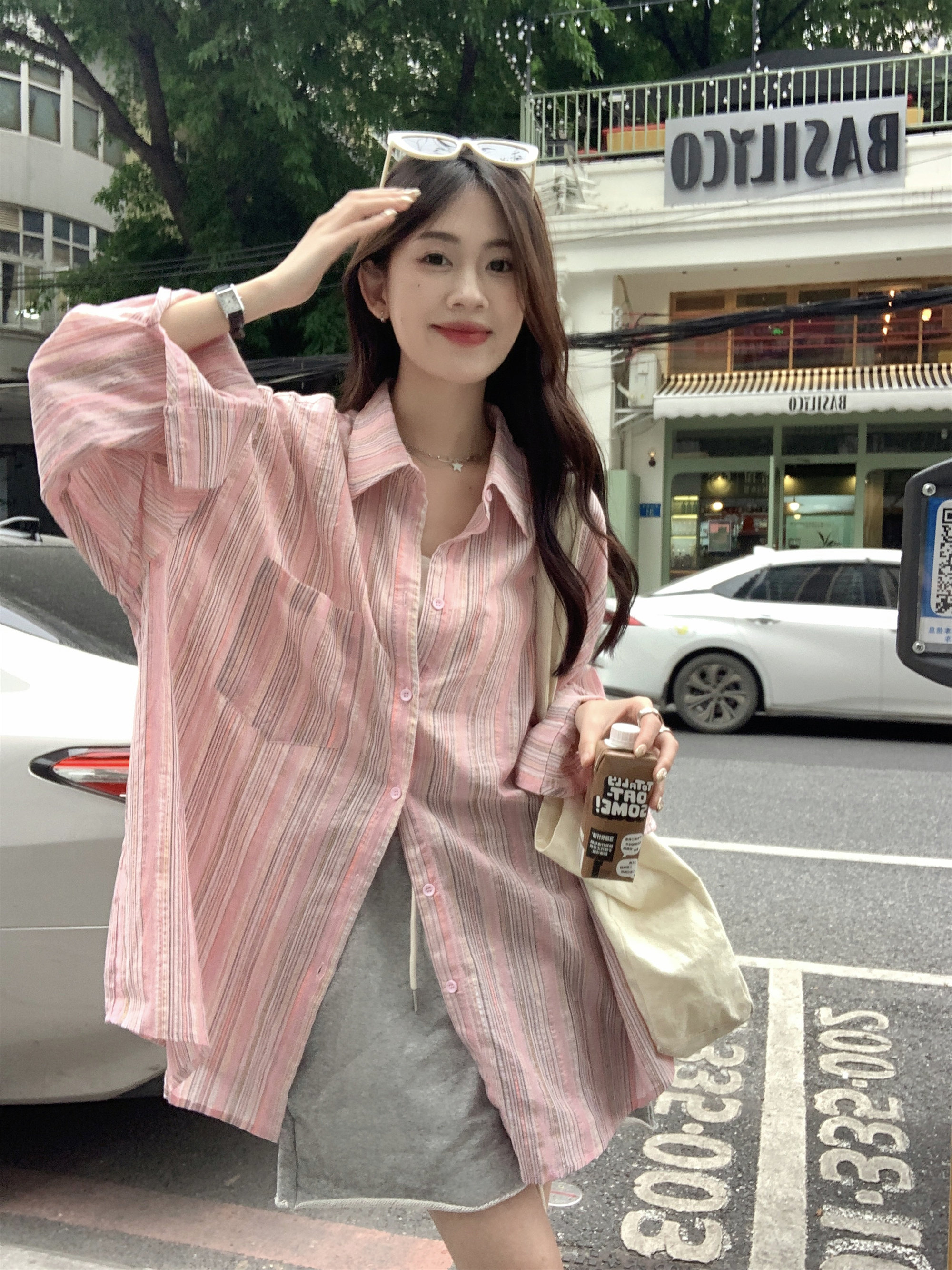 Розовая летняя рубашка, тонкая куртка, защита от солнца, оверсайз, длина миди