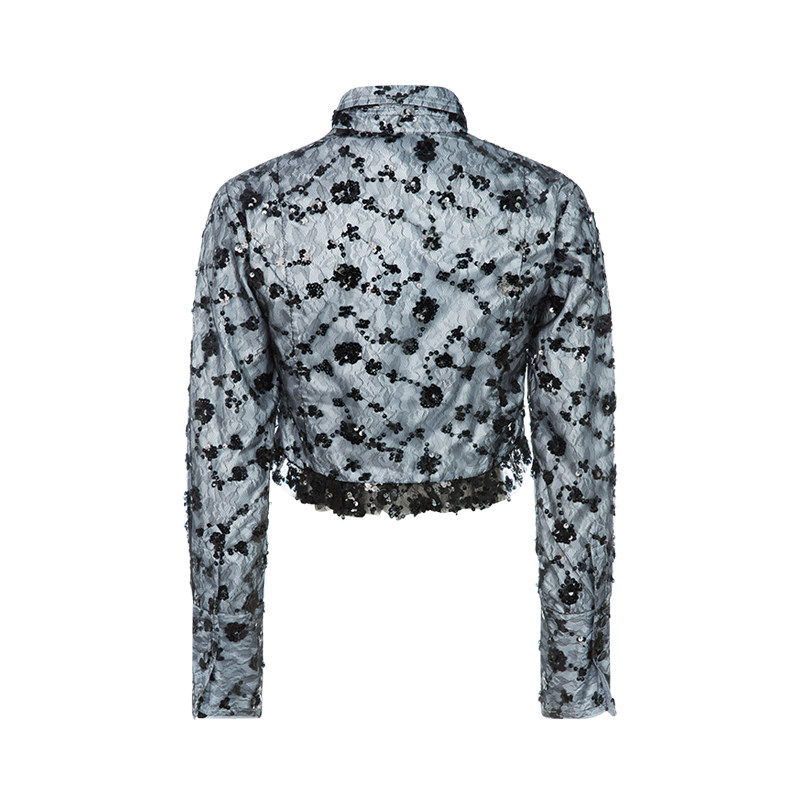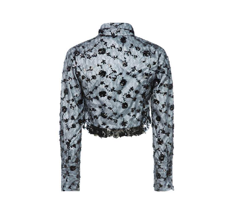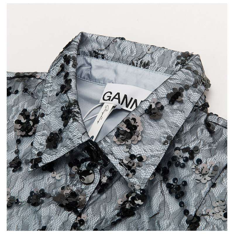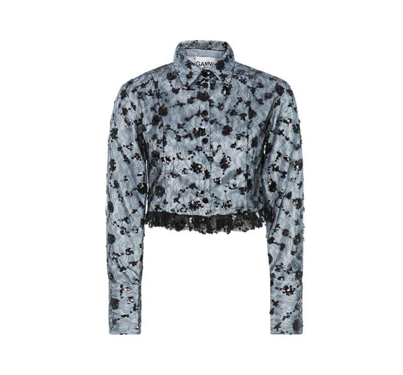 GANNI Летняя синяя кружевная рубашка