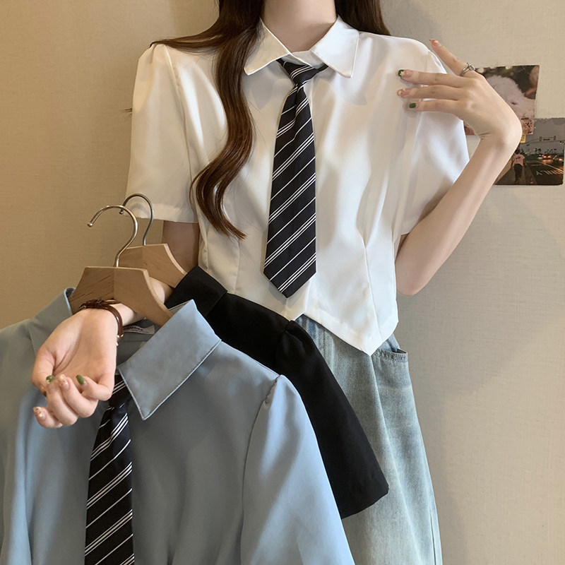 Цветной галстук, рубашка, небольшая дизайнерская летняя одежда, футболка, большой размер, изысканный стиль, по фигуре, короткий рукав