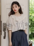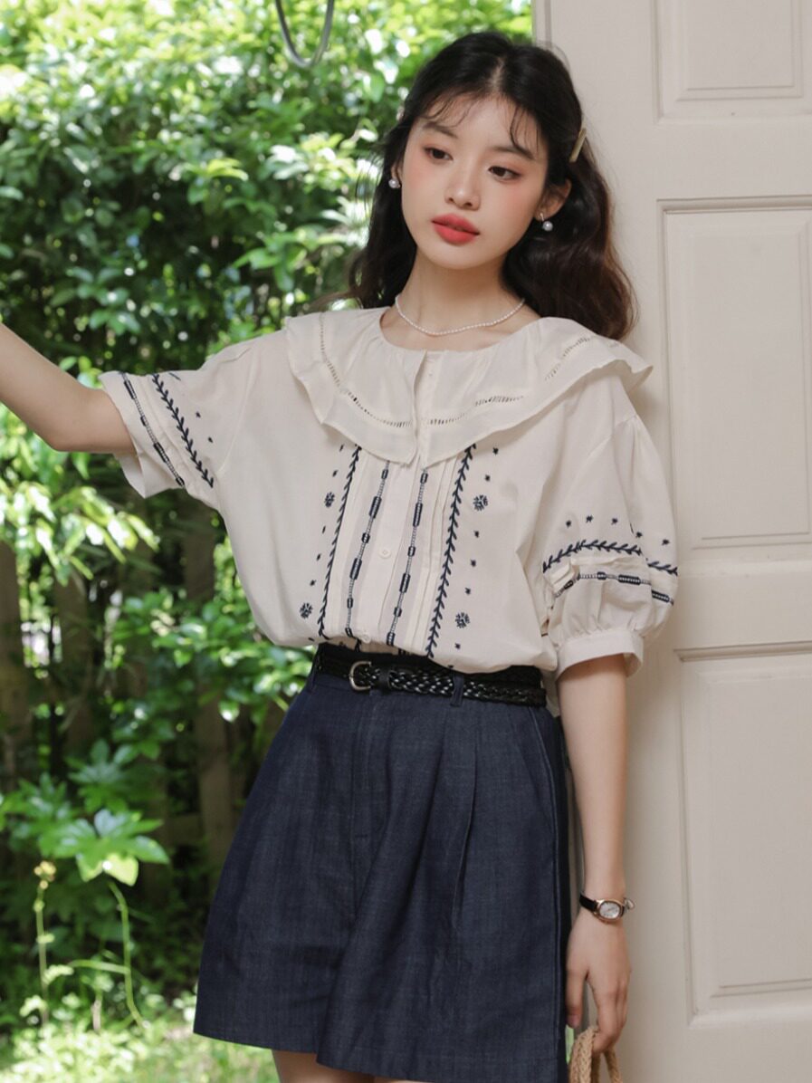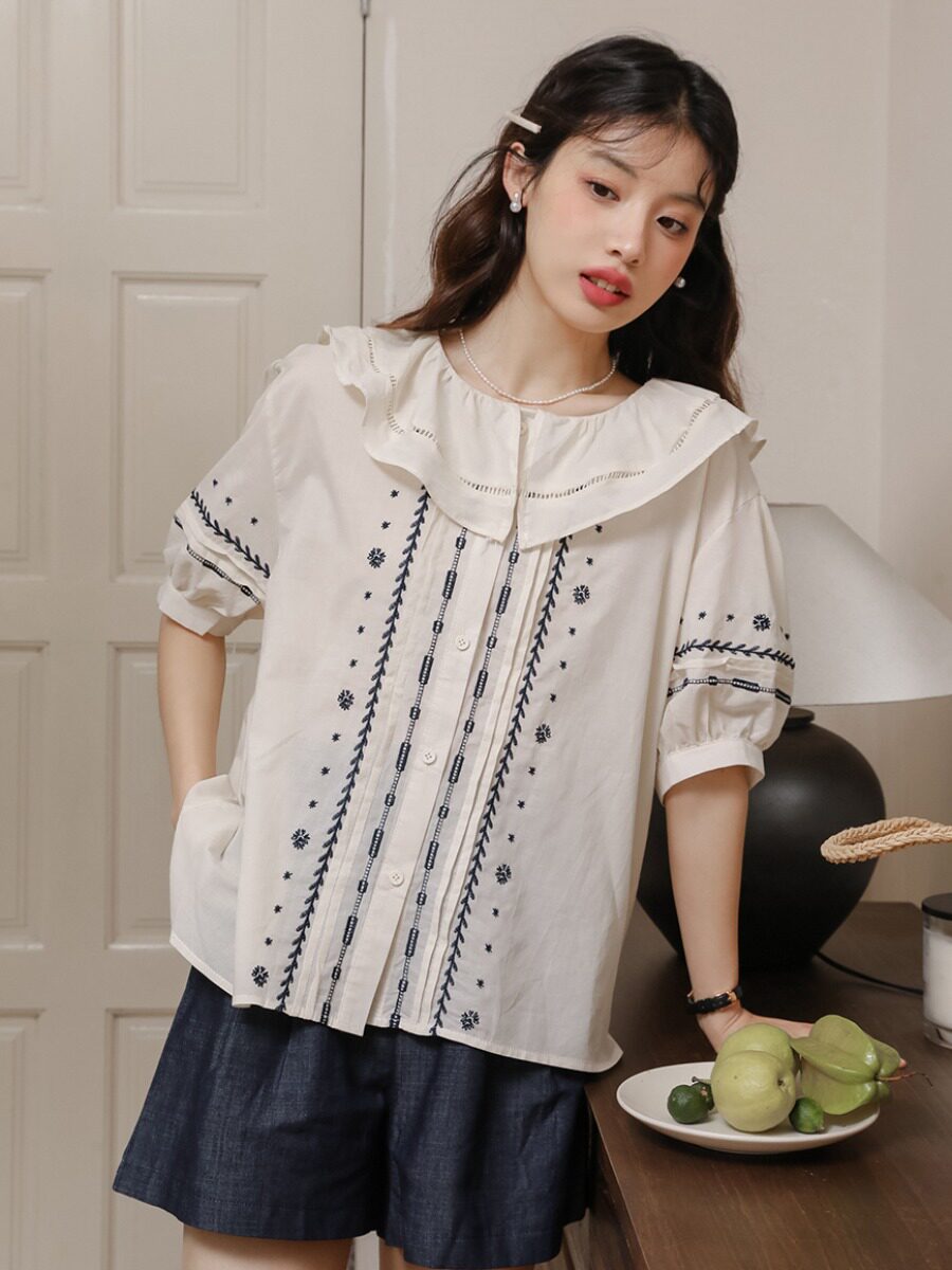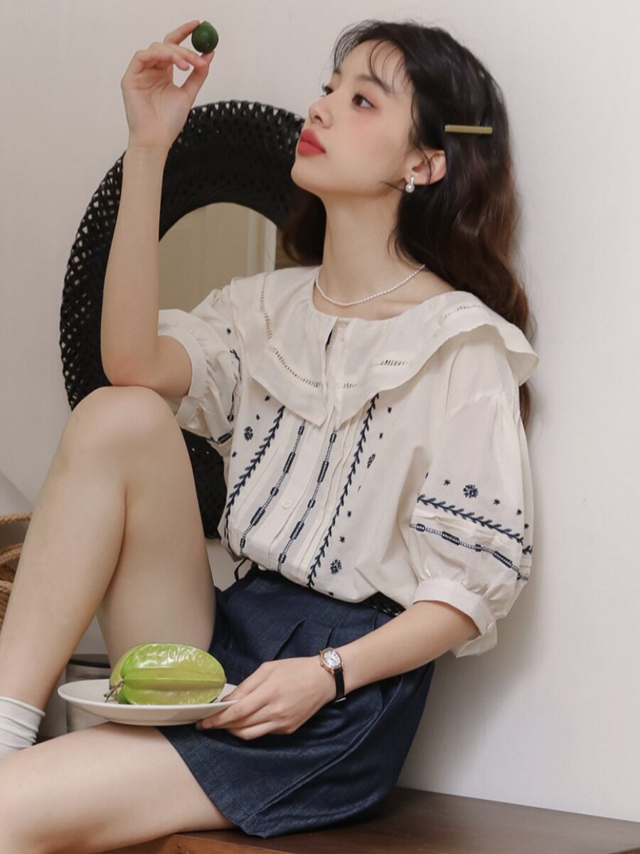 Милая ретро кукла, летняя рубашка, французский стиль, кукольный воротник, с вышивкой