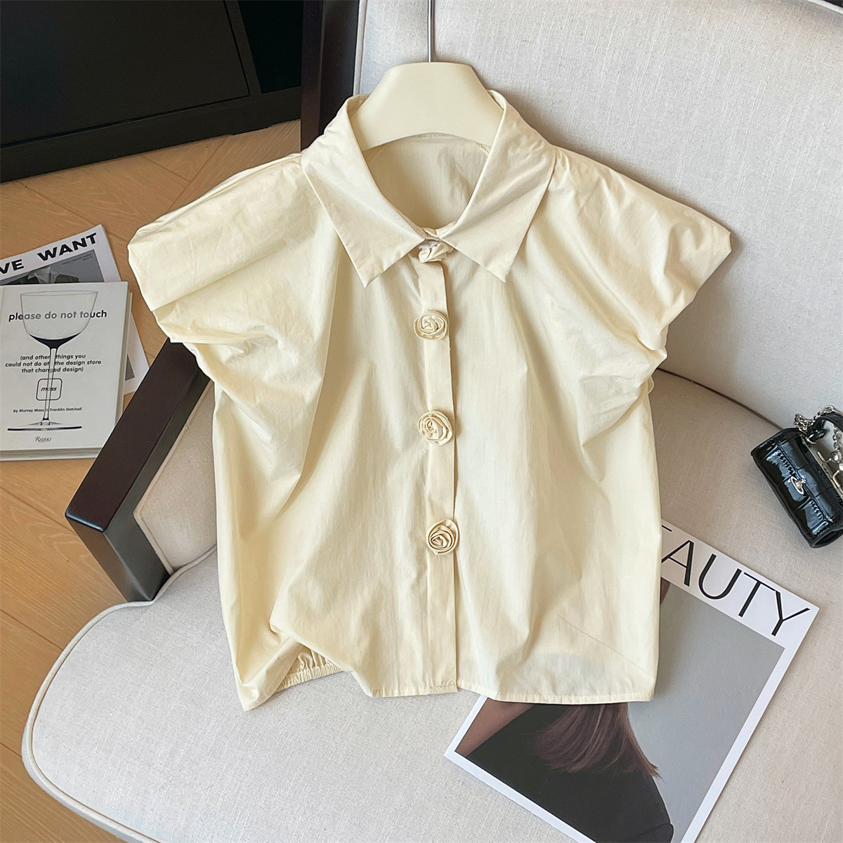 Дизайнерская трехмерная летняя рубашка, короткая футболка, тренд сезона, в цветочек, в западном стиле