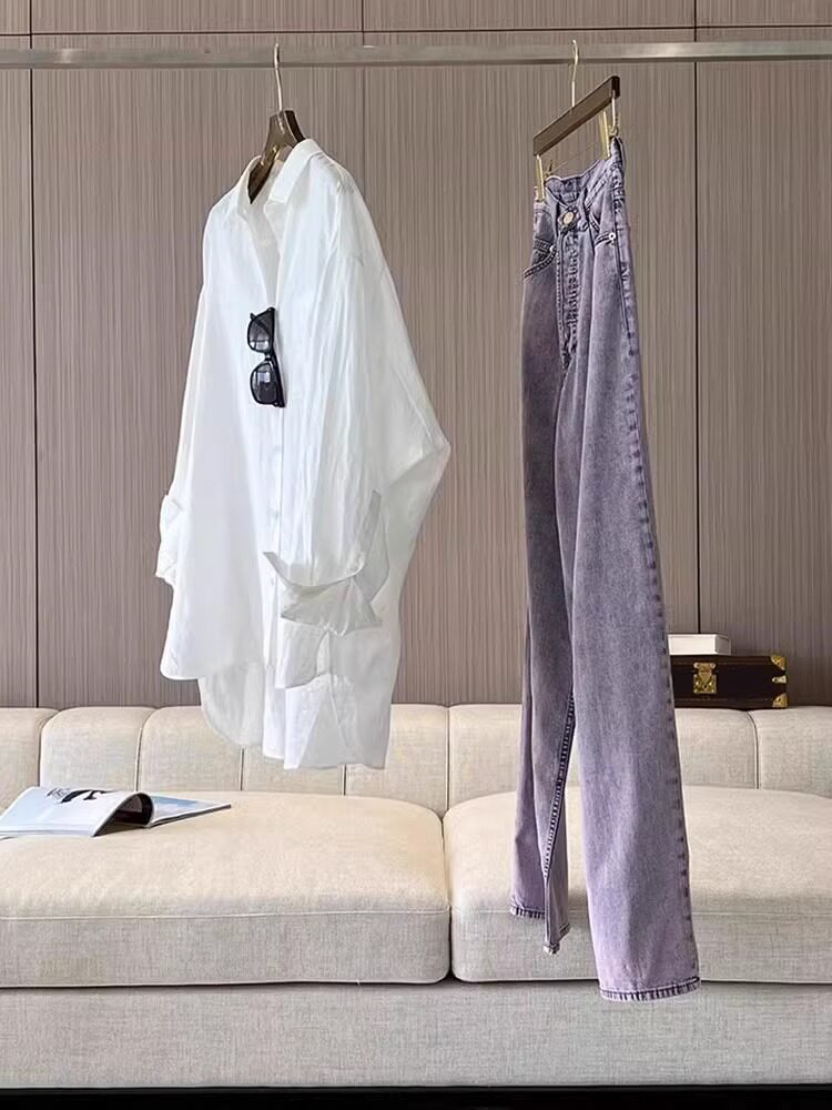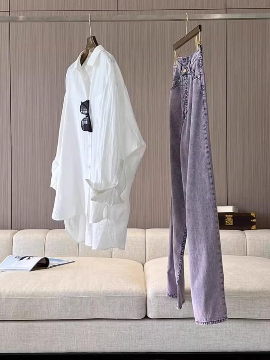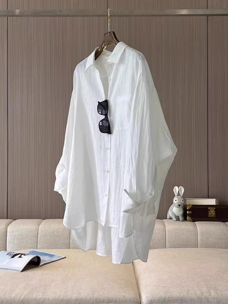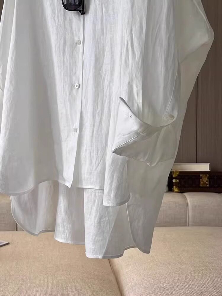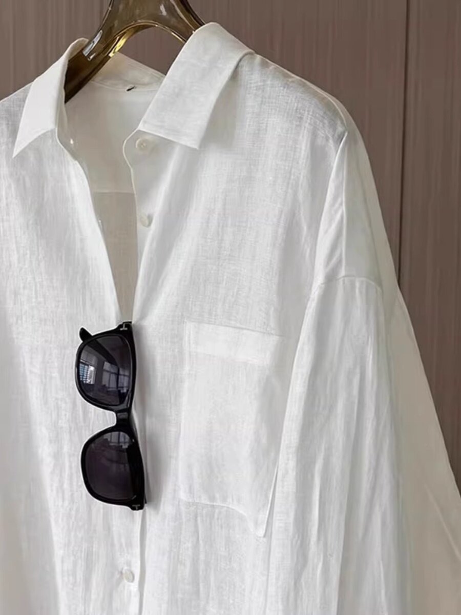 Белая летняя рубашка, куртка, лонгслив, из хлопка и льна, защита от солнца, оверсайз